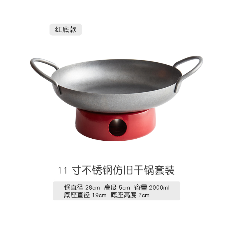 • 11inch 스테인리스 스틸 건조팬 세트-레드 베이스