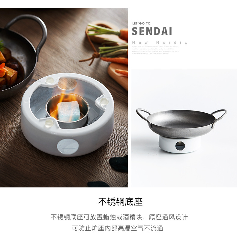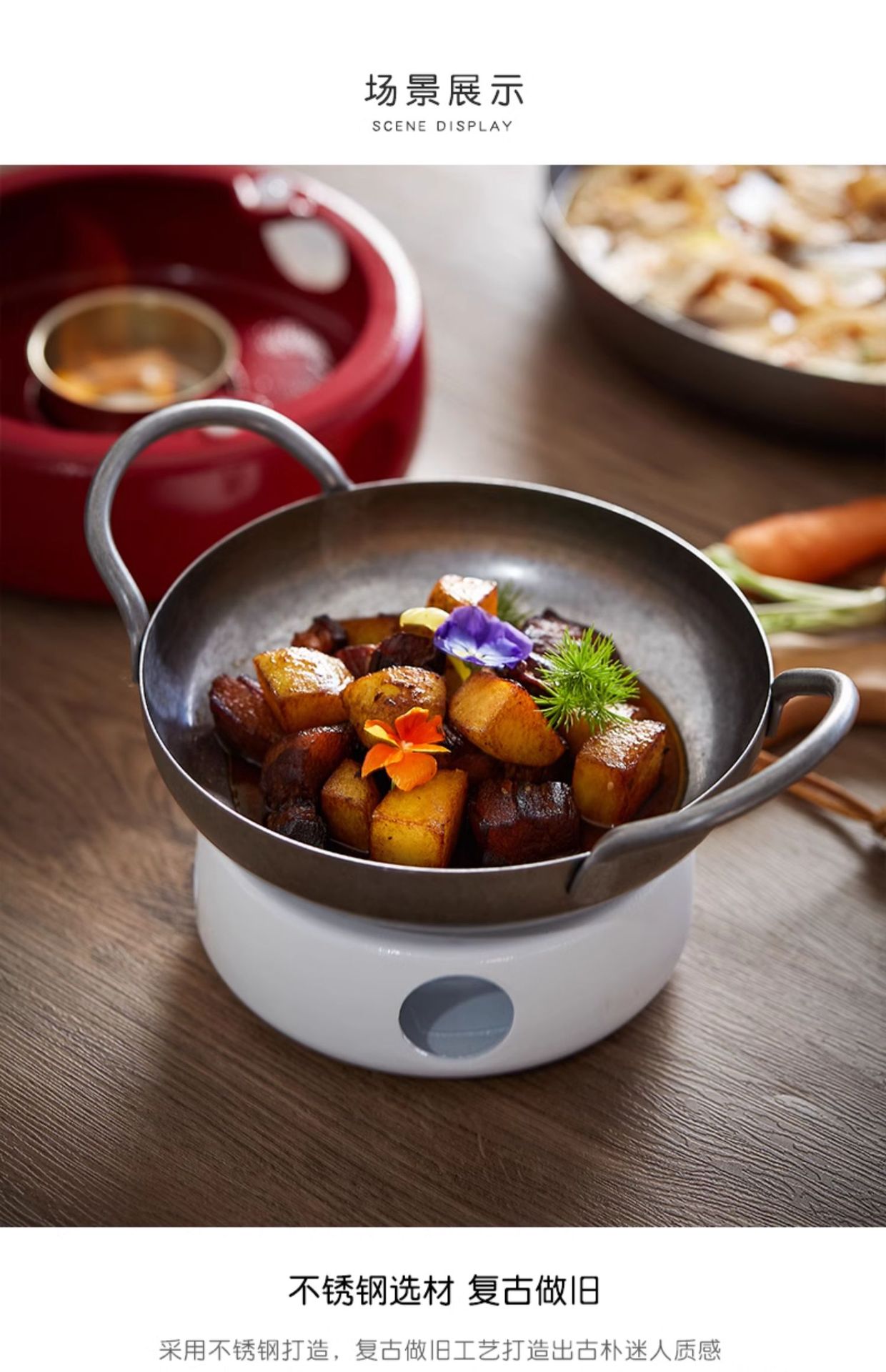 빈티지 스테인레스 스틸 알코올 블록 오픈 불꽃 난방 바이노럴 건조 냄비 요리 호텔 레스토랑 오픈 스토브 식기