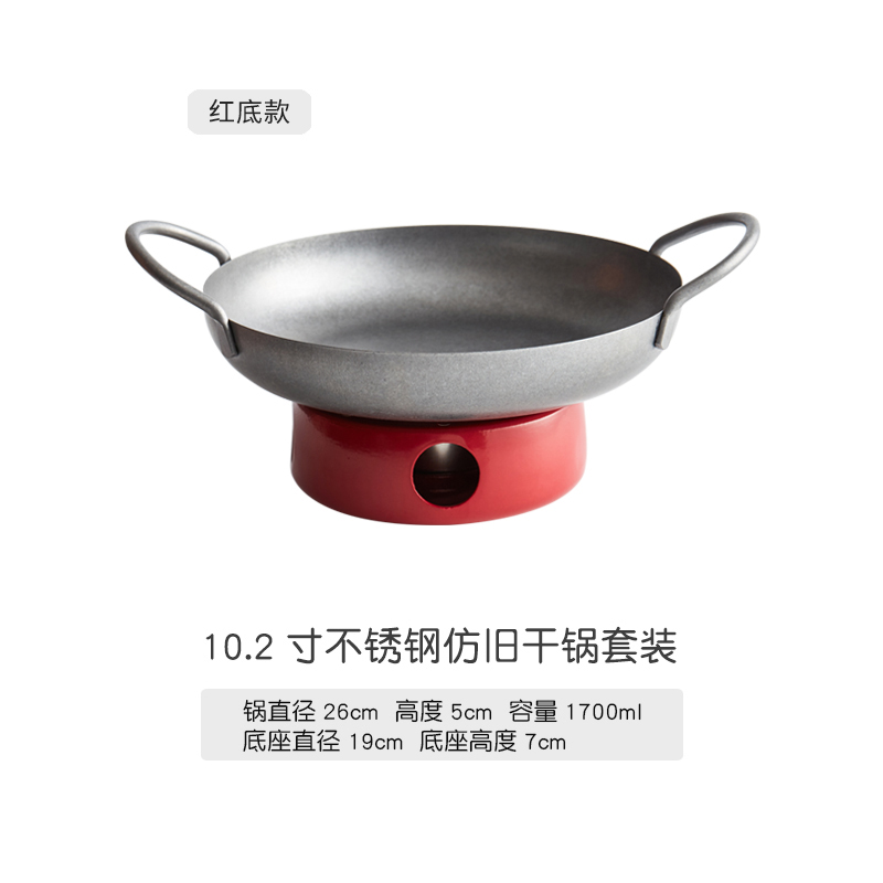 • 10.2inch 스테인리스 스틸 건조팬 세트-레드 베이스