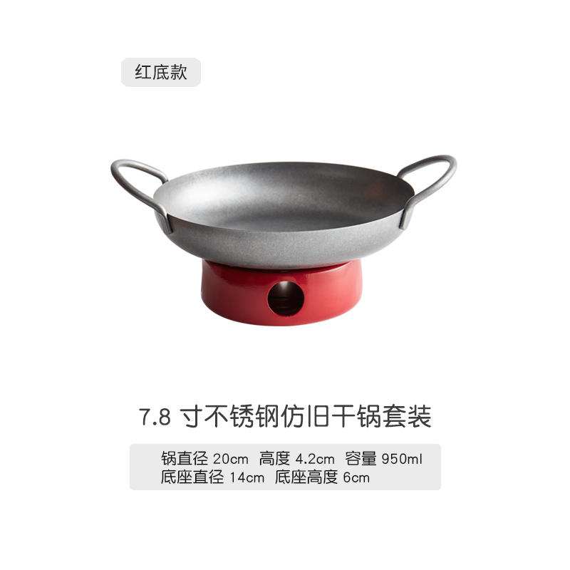 • 7.8inch 스테인리스 스틸 건조팬 세트-레드 베이스