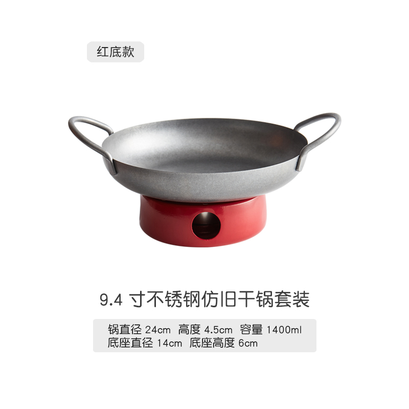 • 9.4inch 스테인리스 스틸 건조팬 세트-레드 베이스