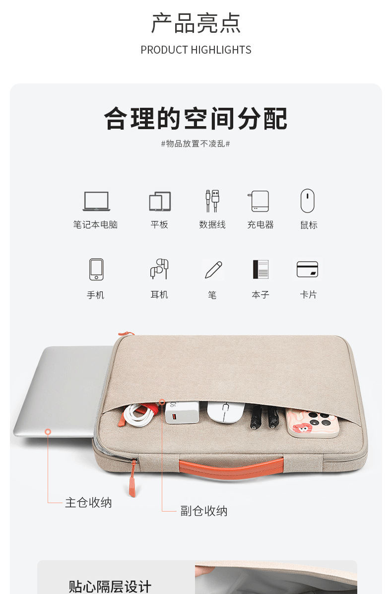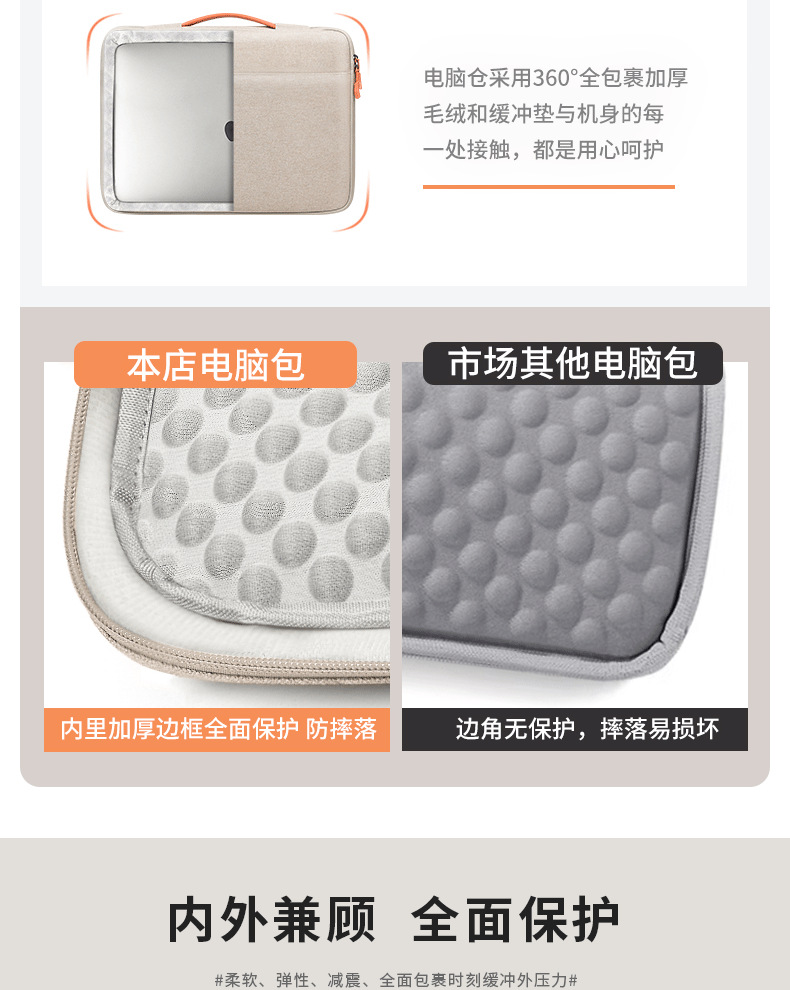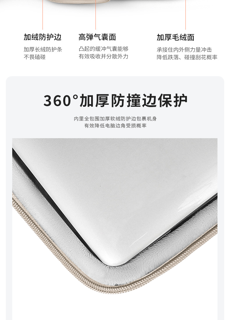 세련되고 심플한 초경량 컴퓨터 내장 가방 14inch 플러스 벨벳 에어백 충격 방지 및 방수 휴대용 노트북 가방스토어 가기