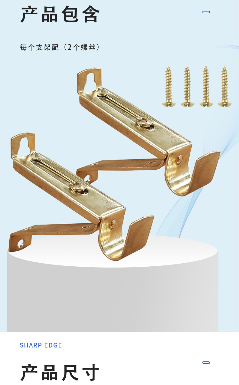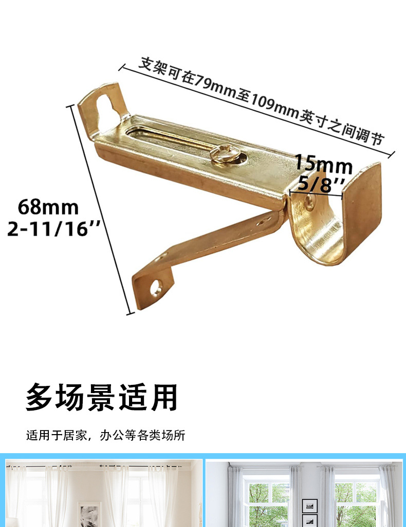 커튼로드 액세서리 15mm 로마로드 조정 가능한 텔레스코픽 브래킷 단일로드 기본 조정 브래킷 도금 금스토어 가기