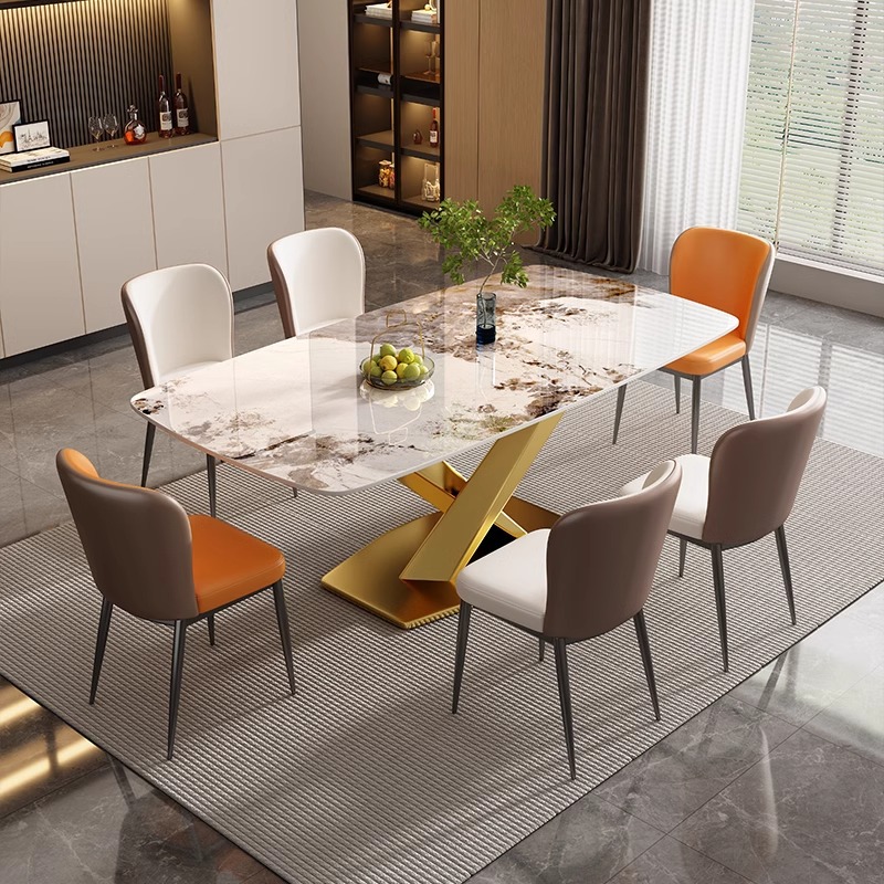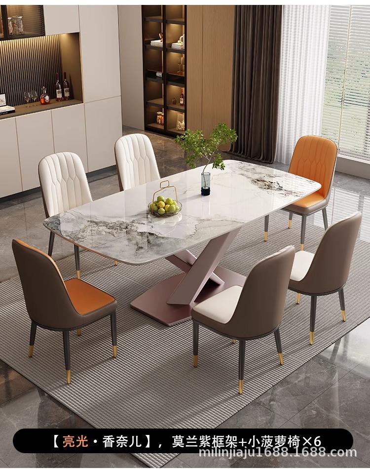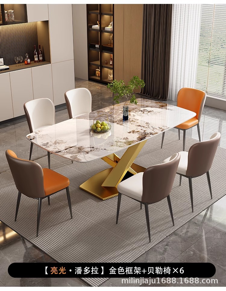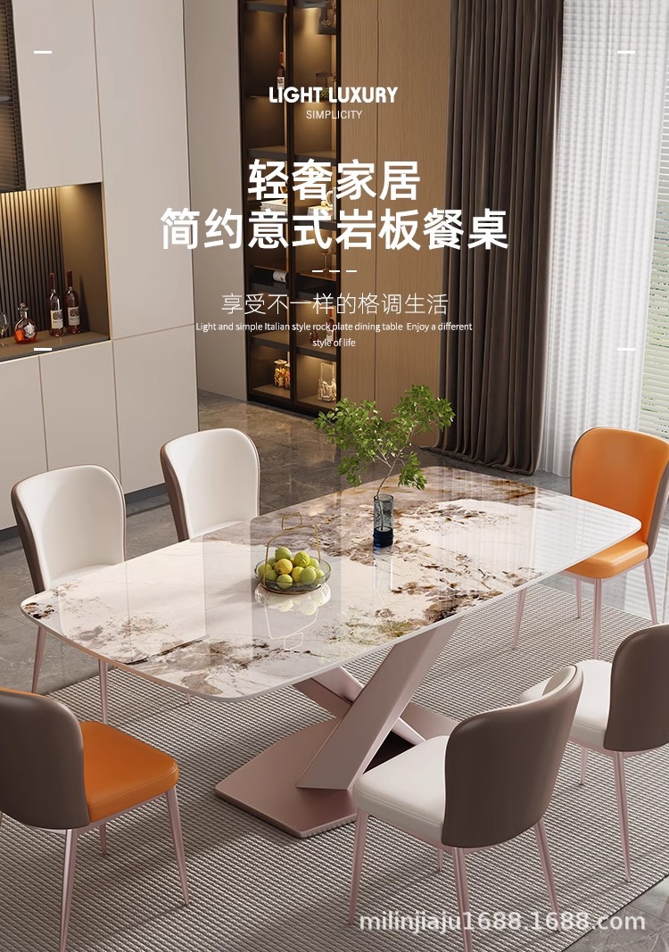 이탈리안 라이트 럭셔리 슬레이트 서양식 식탁과 의자 조합 고급 거실 홈 소형 아파트 현대적인 간단한 직사각형 식탁스토어 가기