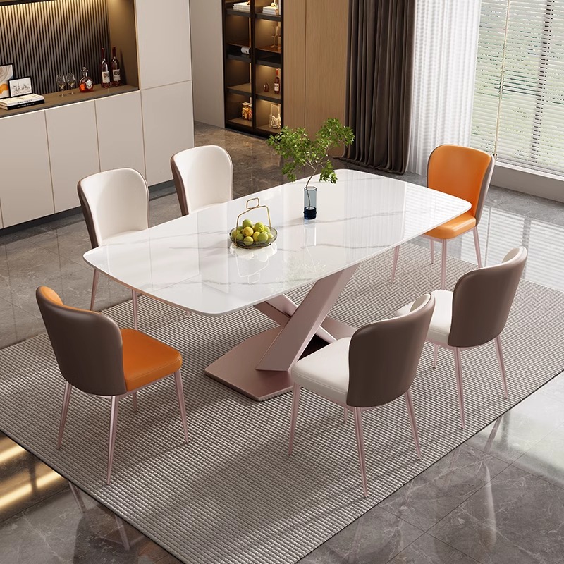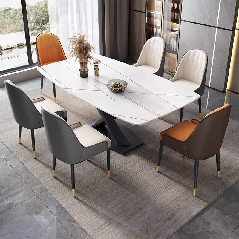 이탈리안 라이트 럭셔리 슬레이트 서양식 식탁과 의자 조합 고급 거실 홈 소형 아파트 현대적인 간단한 직사각형 식탁
