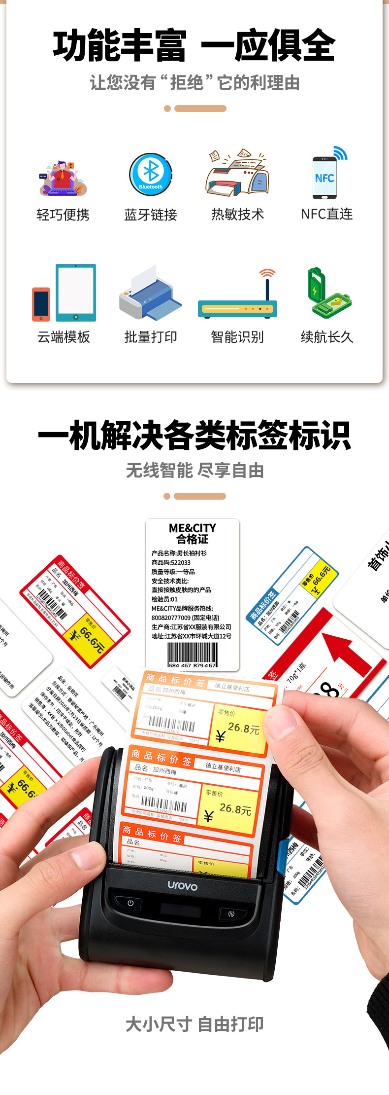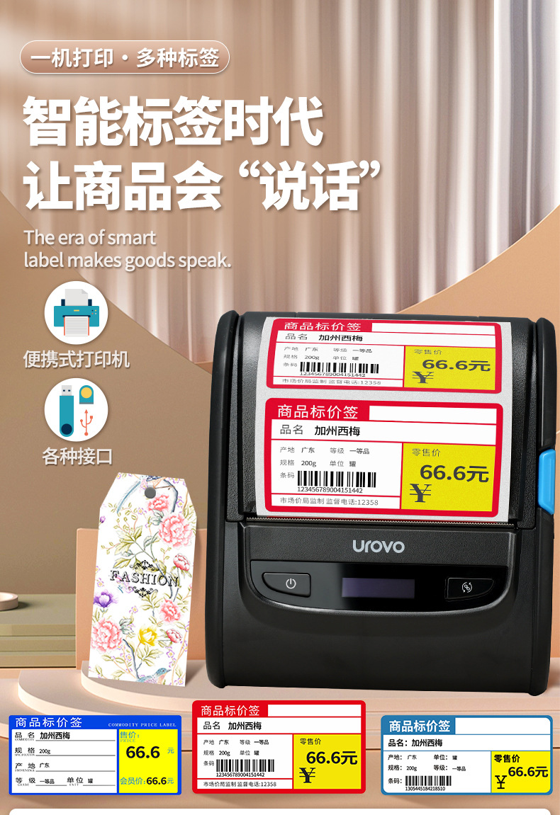 UROVO/Youboxun K300 휴대용 휴대용 익스프레스 접착 프린터 열 표면 단일 익스프레스 라벨 기계스토어 가기
