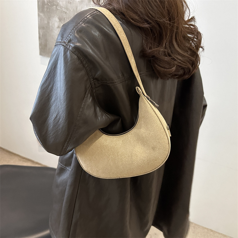 레트로 한국 스타일의 새로운 하이 엔드 텍스처 언더암 가방 여성용 초승달 가방 유행 독특한 Ins 스타일 간단한 어깨 가방스토어 가기