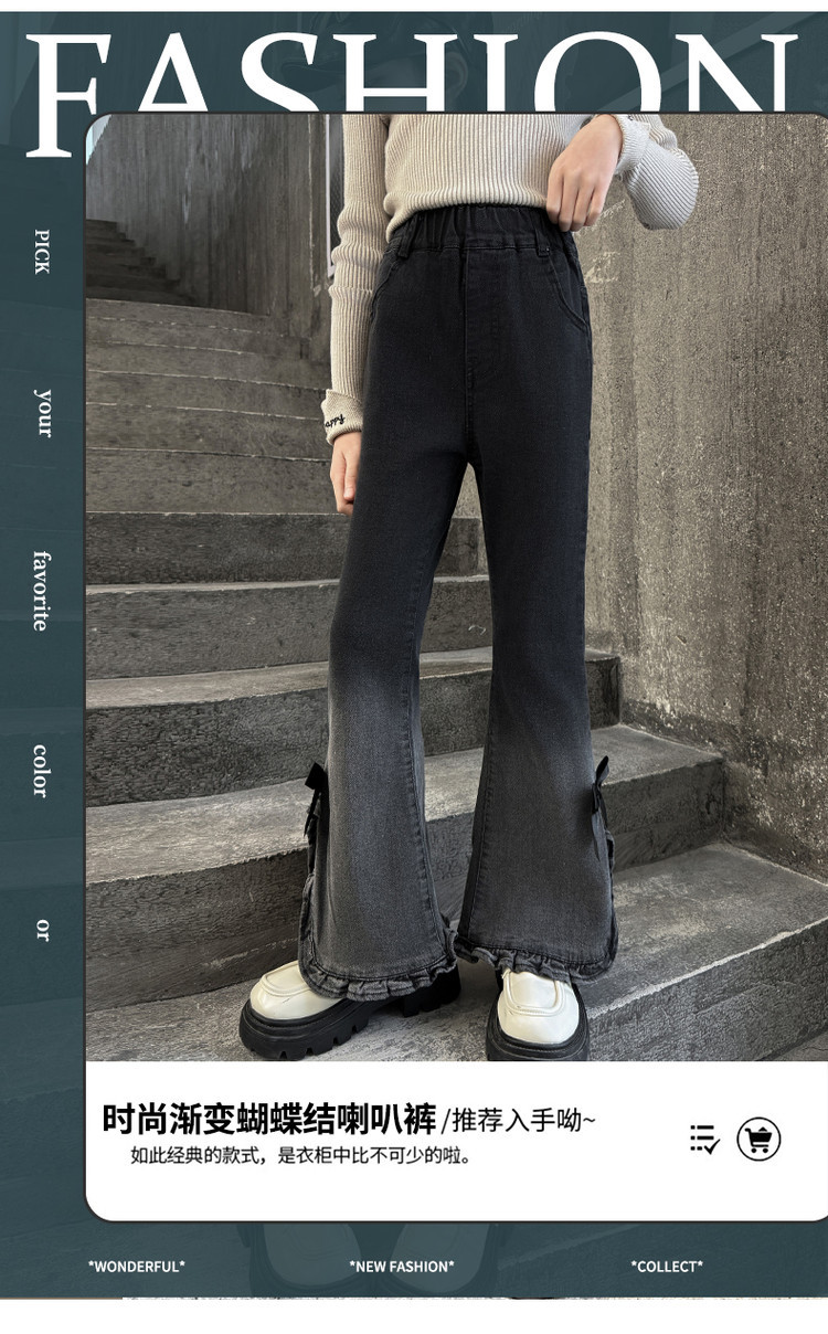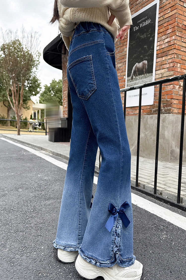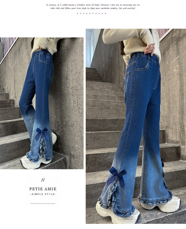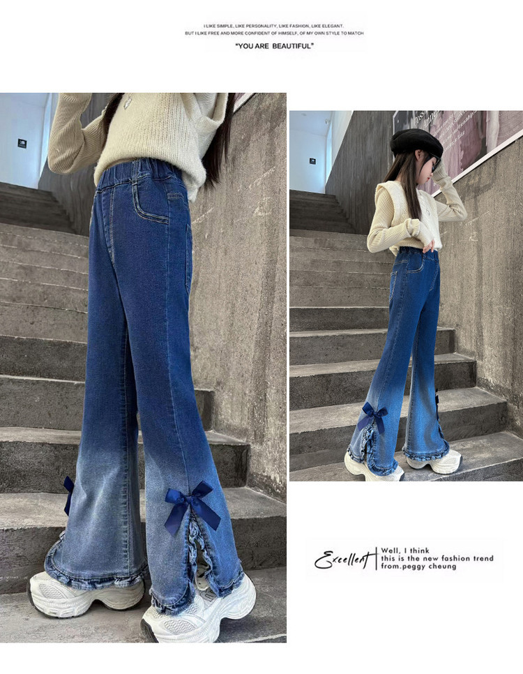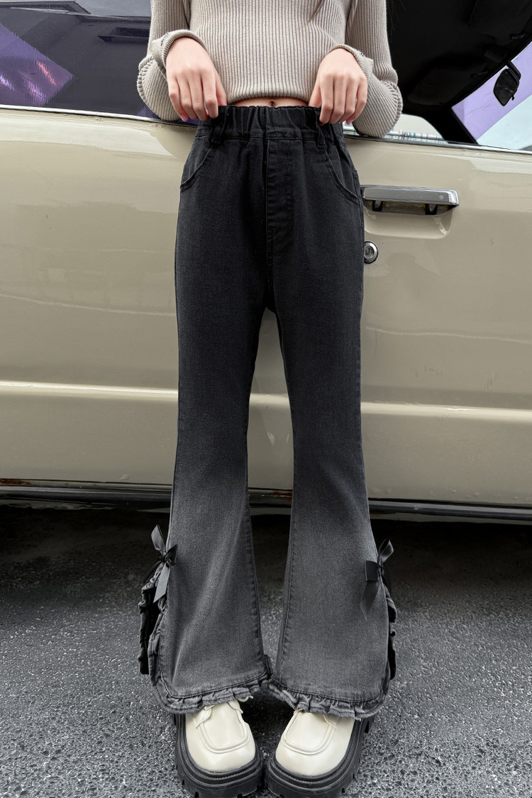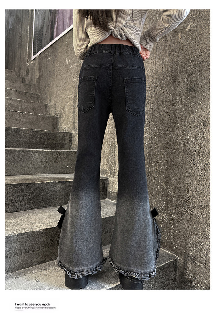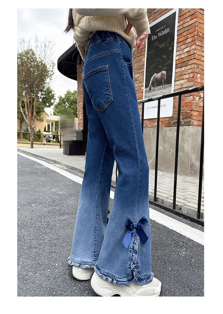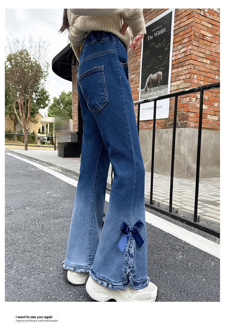 소녀의 그라디언트 컬러 청바지 세련된 봄과 가을 소녀의 달콤한 쿨 활 꽃 바지 슬림 핏 스트레치 바지 트렌디스토어 가기
