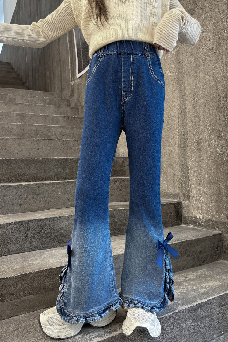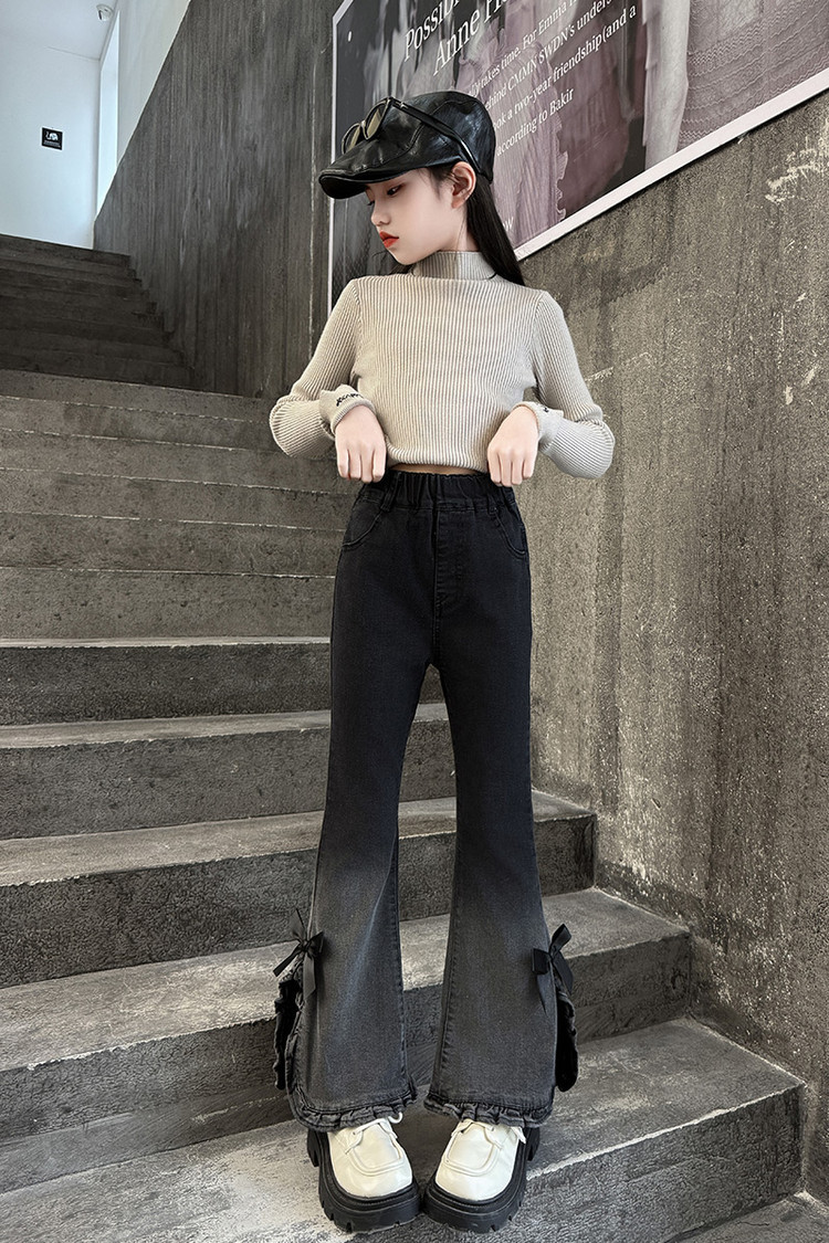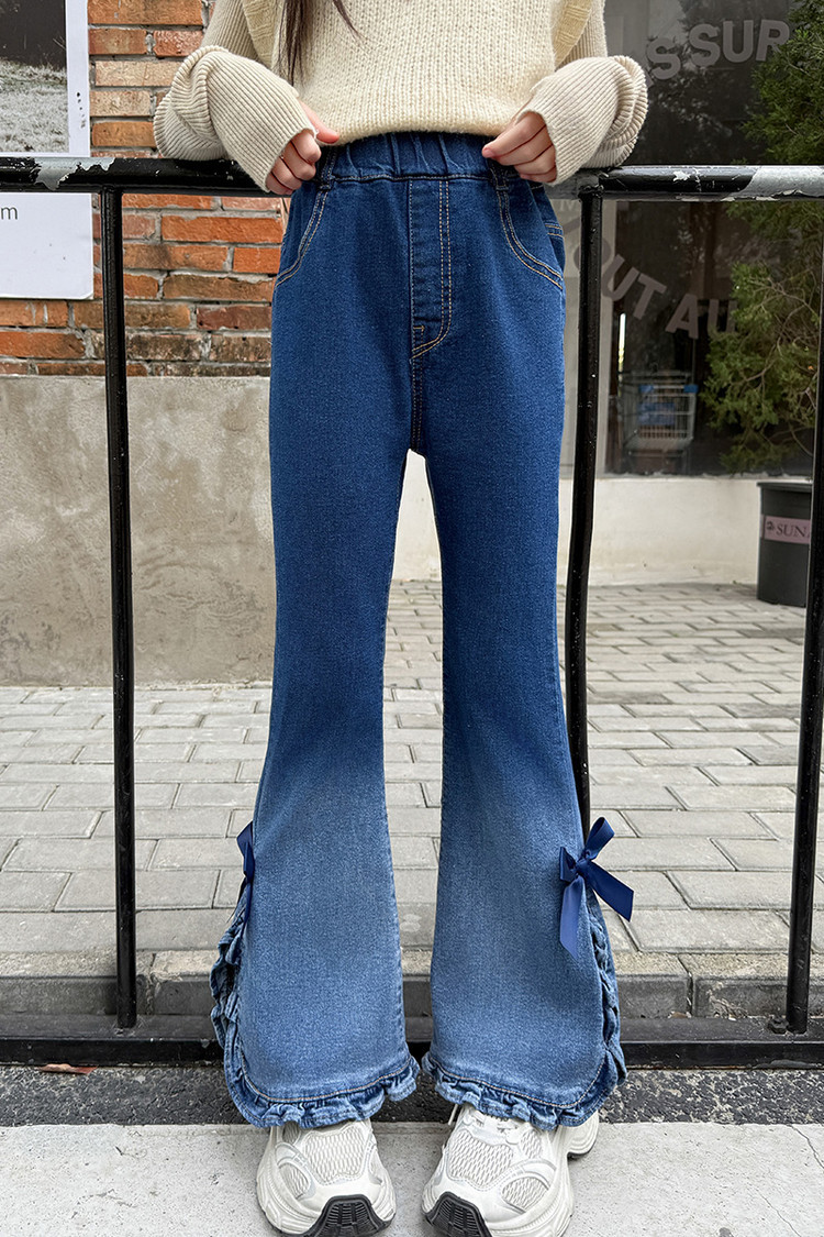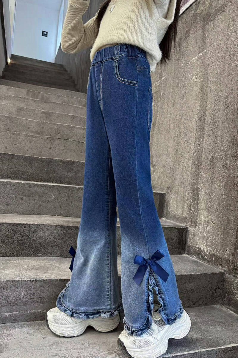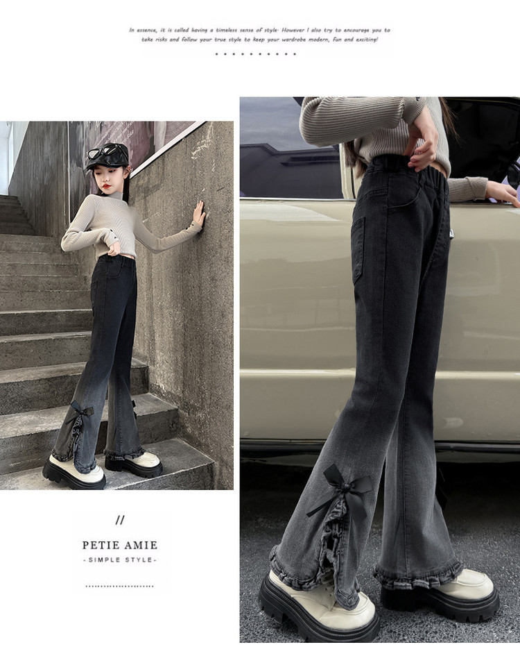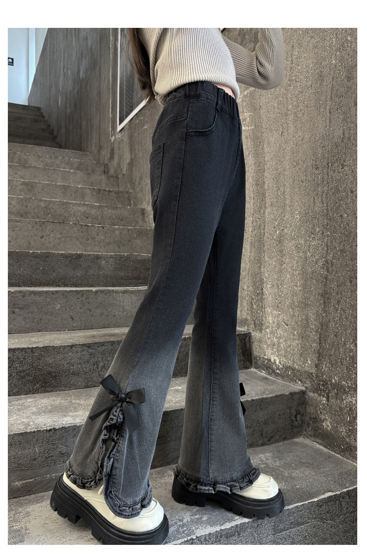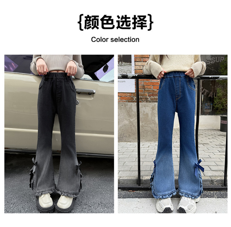 소녀의 그라디언트 컬러 청바지 세련된 봄과 가을 소녀의 달콤한 쿨 활 꽃 바지 슬림 핏 스트레치 바지 트렌디스토어 가기