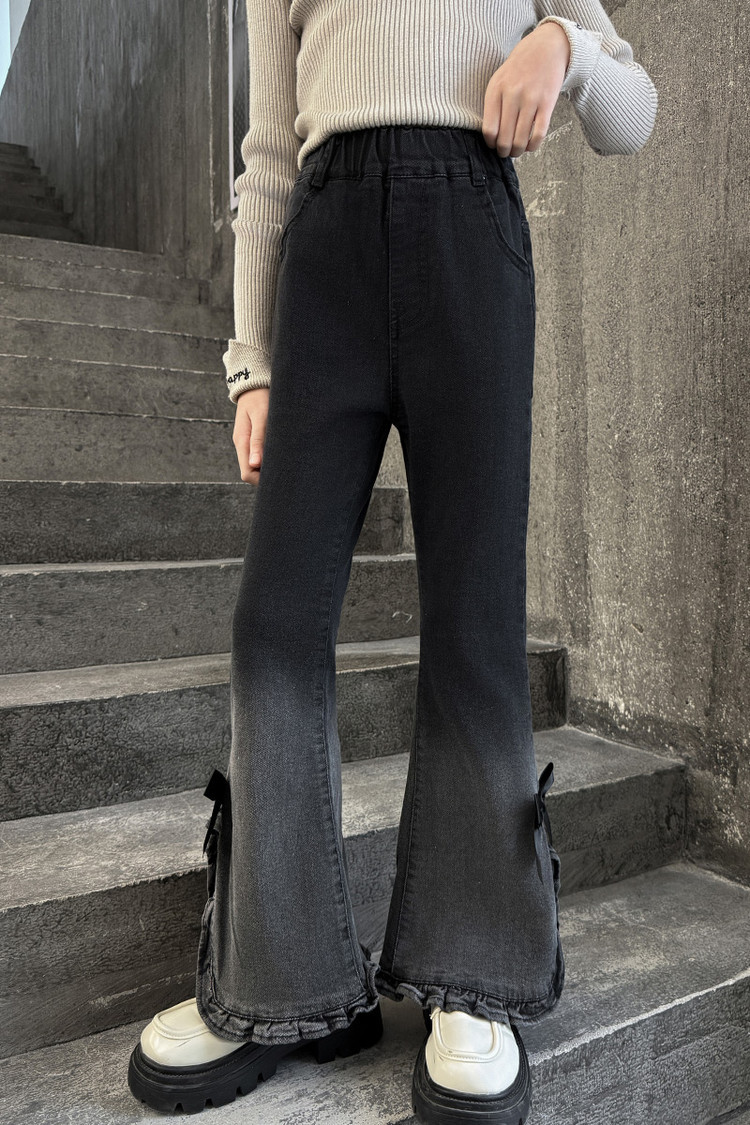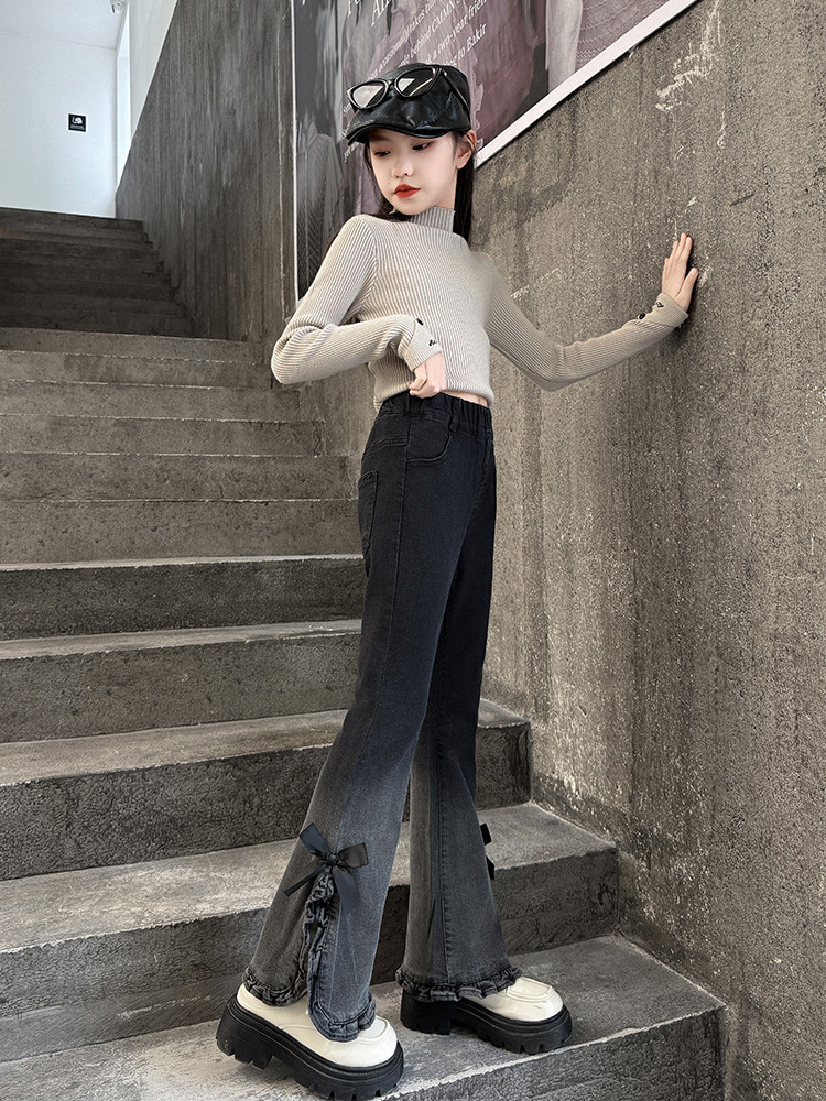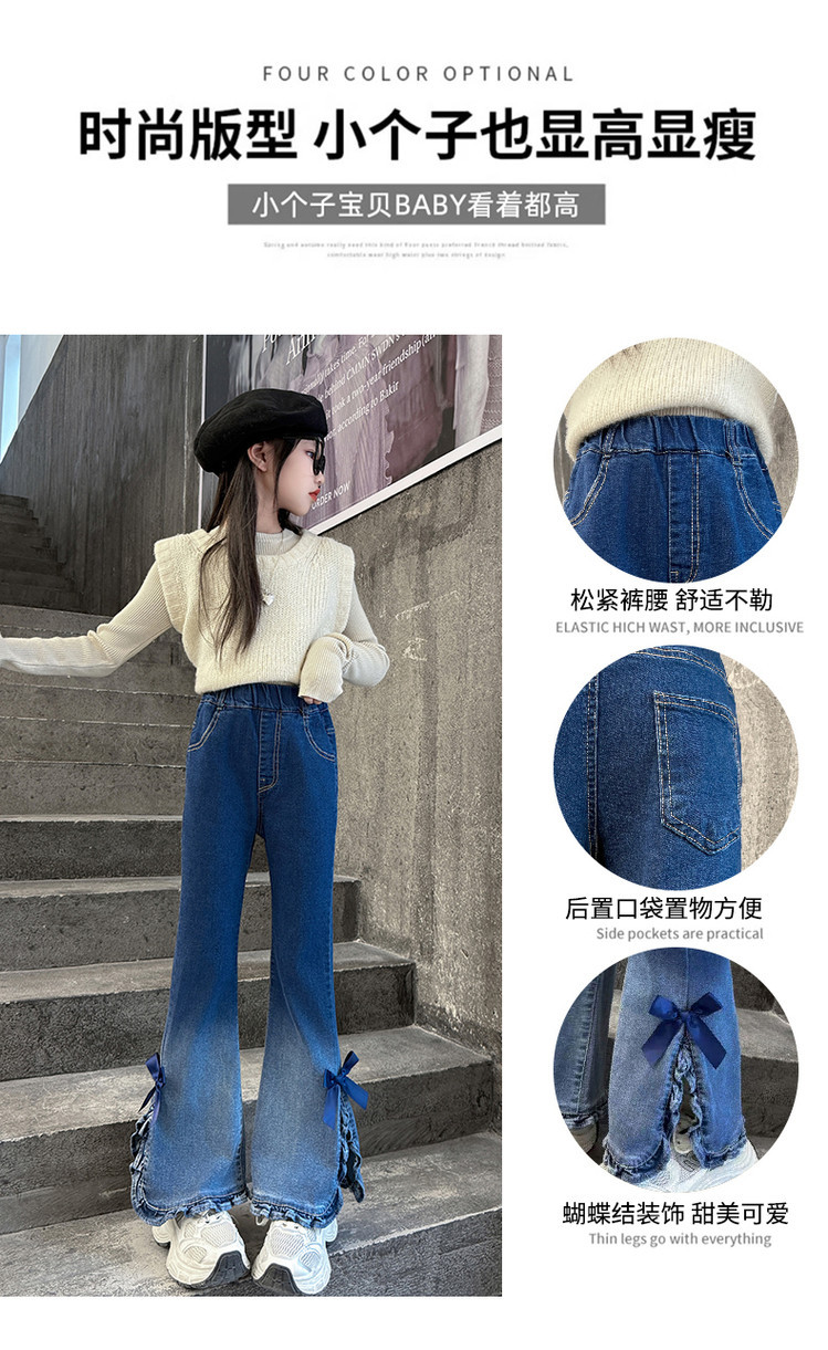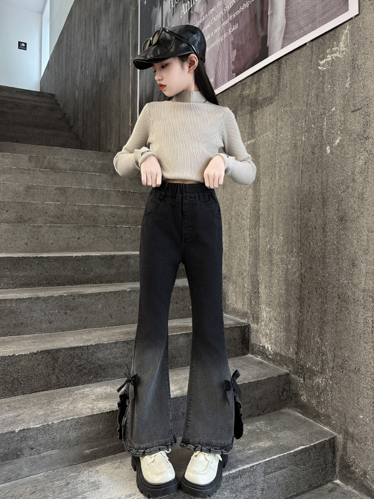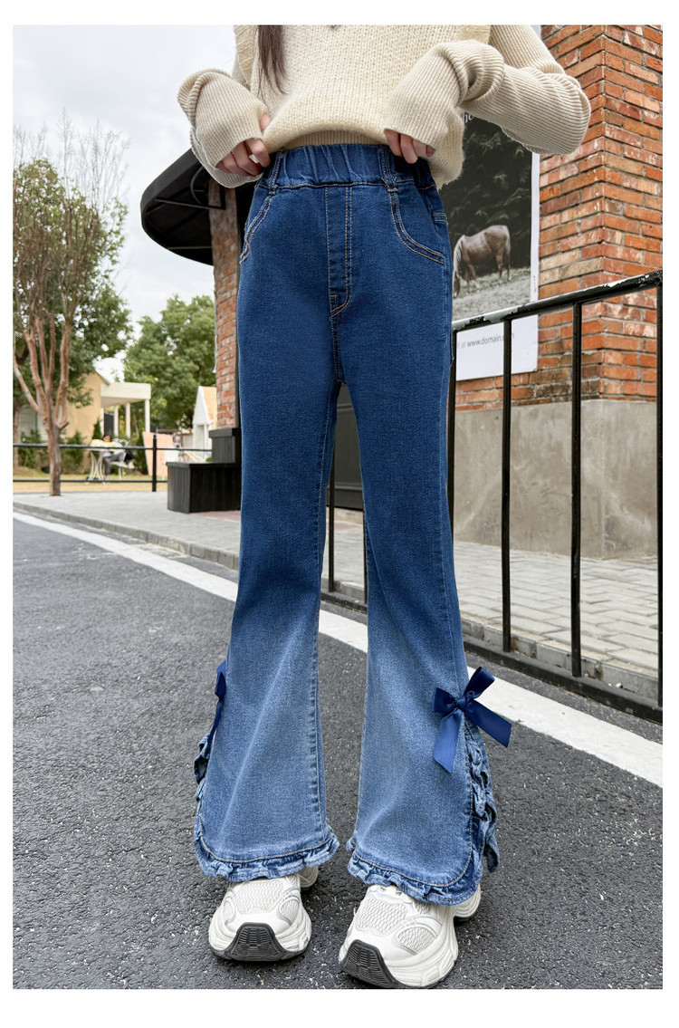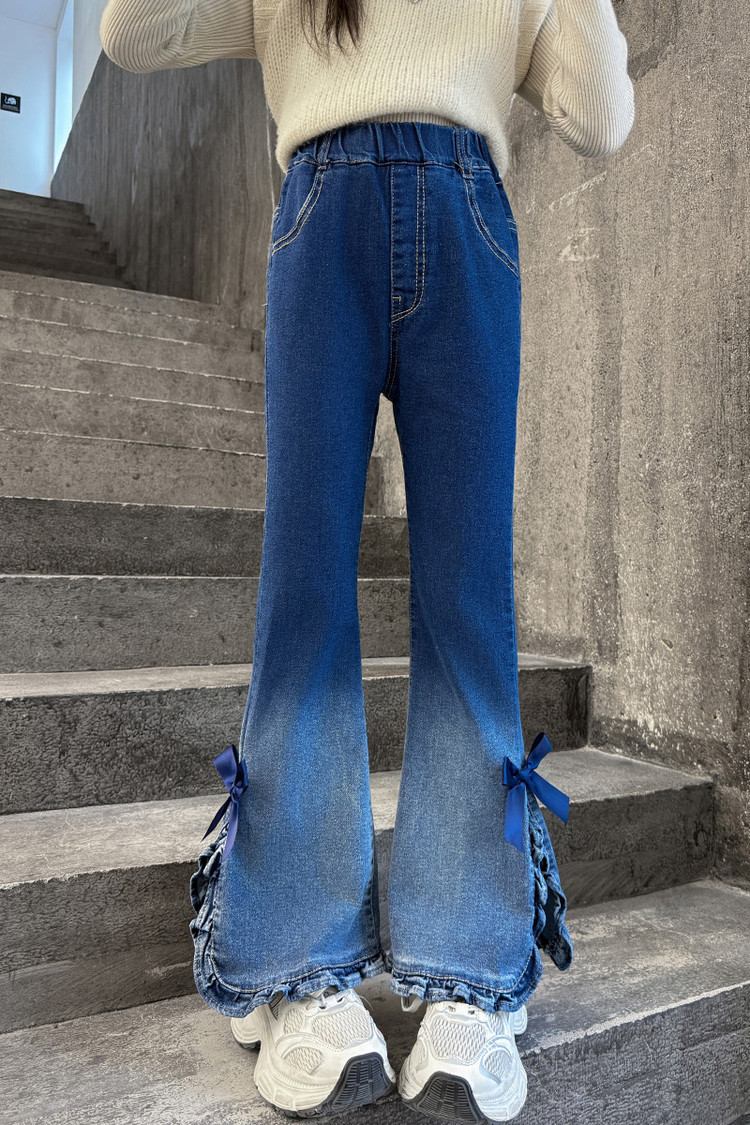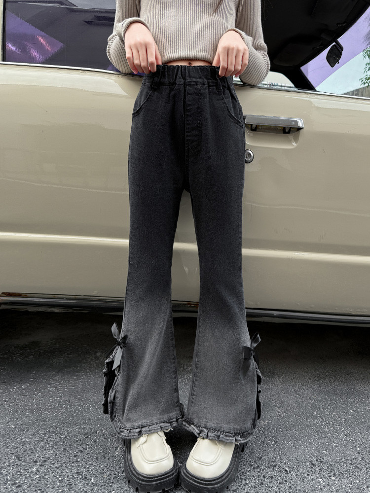소녀의 그라디언트 컬러 청바지 세련된 봄과 가을 소녀의 달콤한 쿨 활 꽃 바지 슬림 핏 스트레치 바지 트렌디스토어 가기