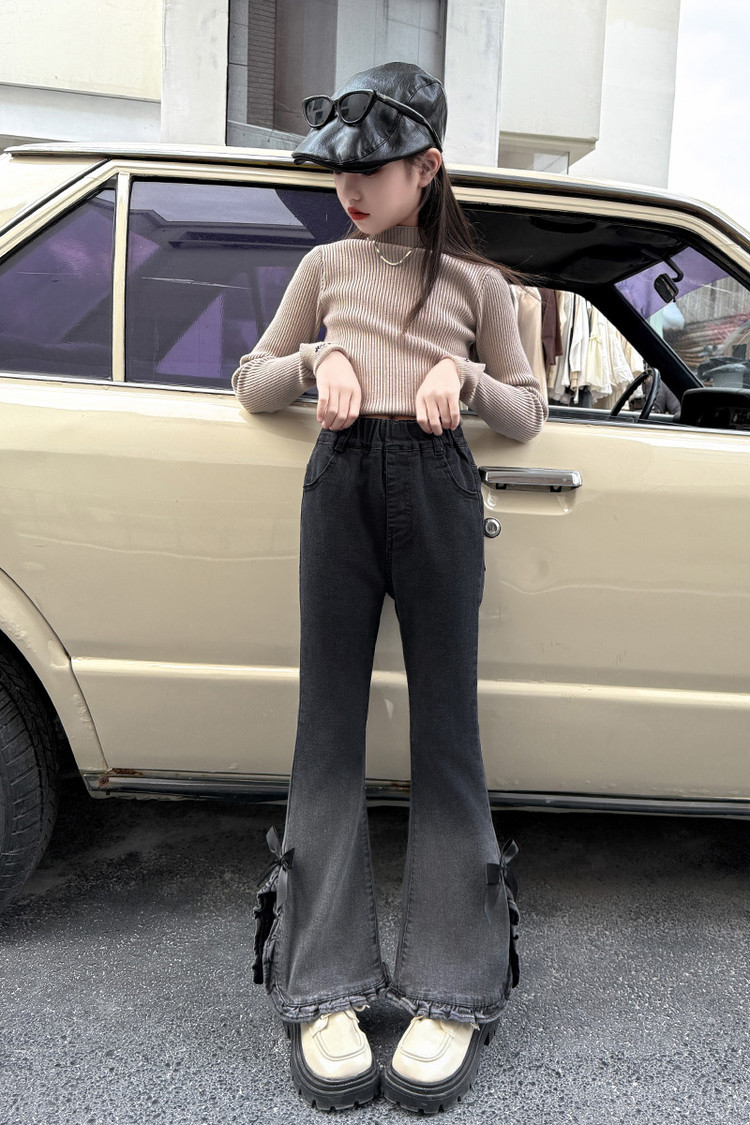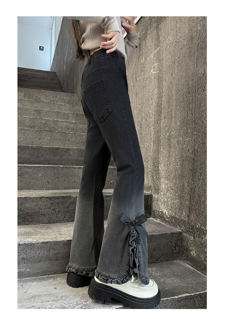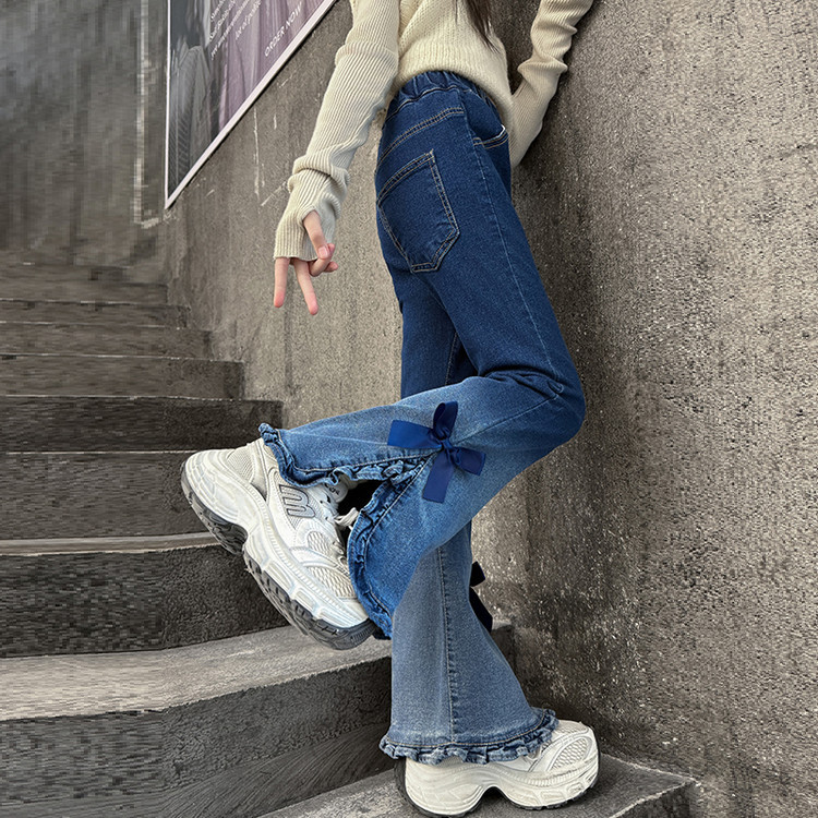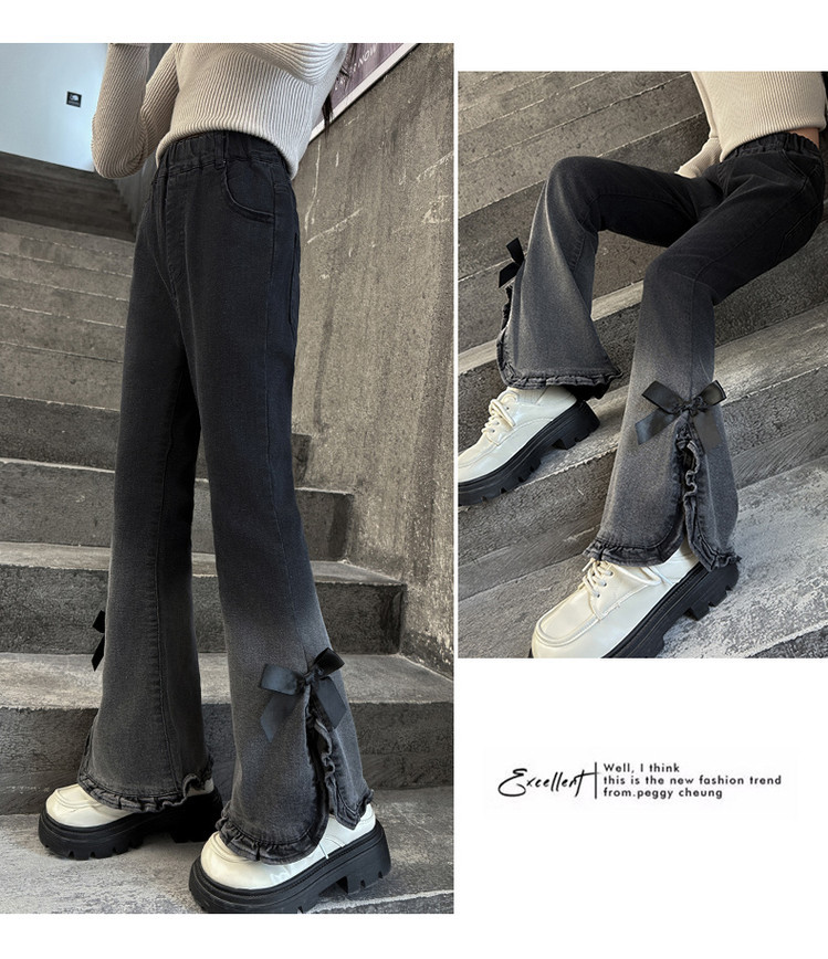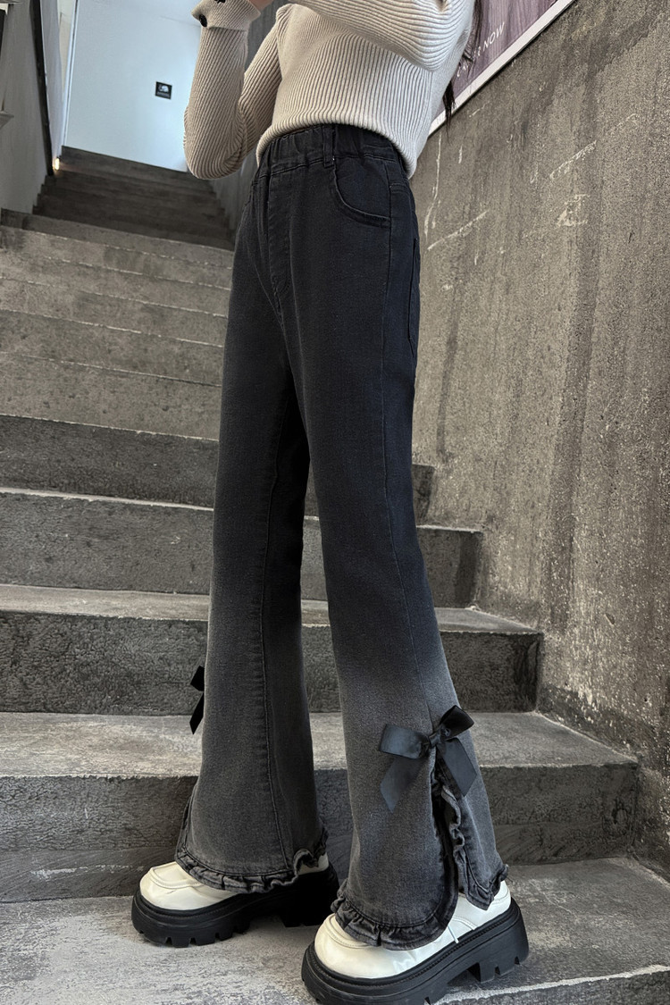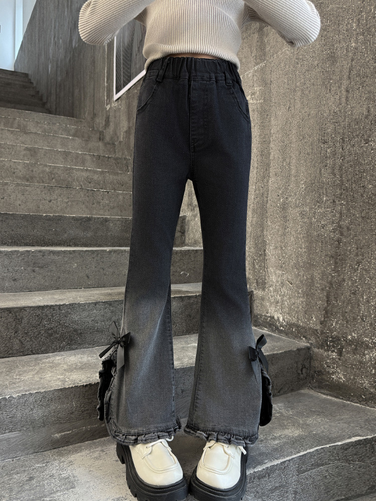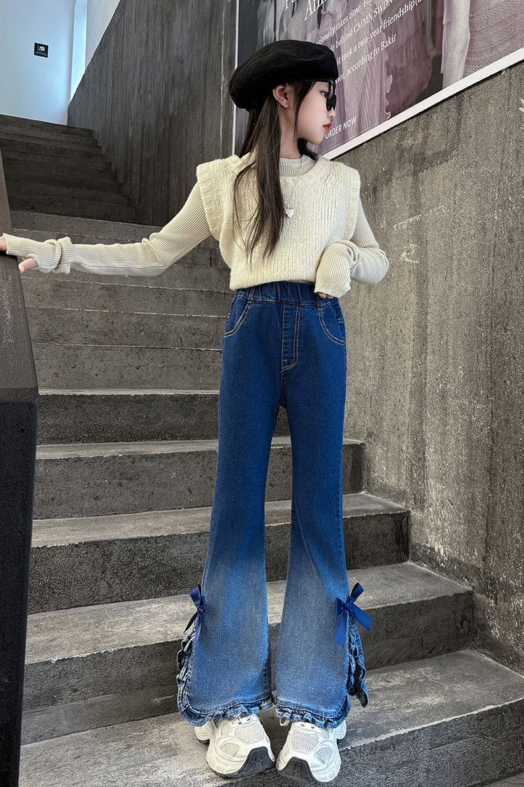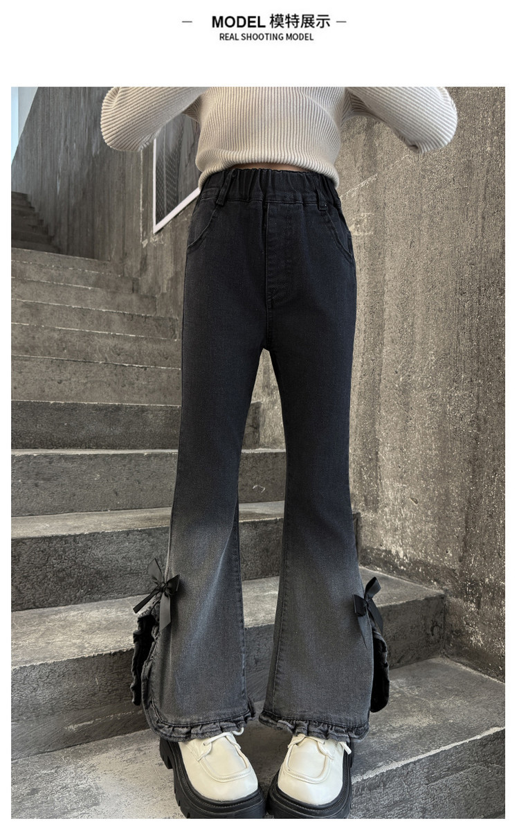 소녀의 그라디언트 컬러 청바지 세련된 봄과 가을 소녀의 달콤한 쿨 활 꽃 바지 슬림 핏 스트레치 바지 트렌디스토어 가기
