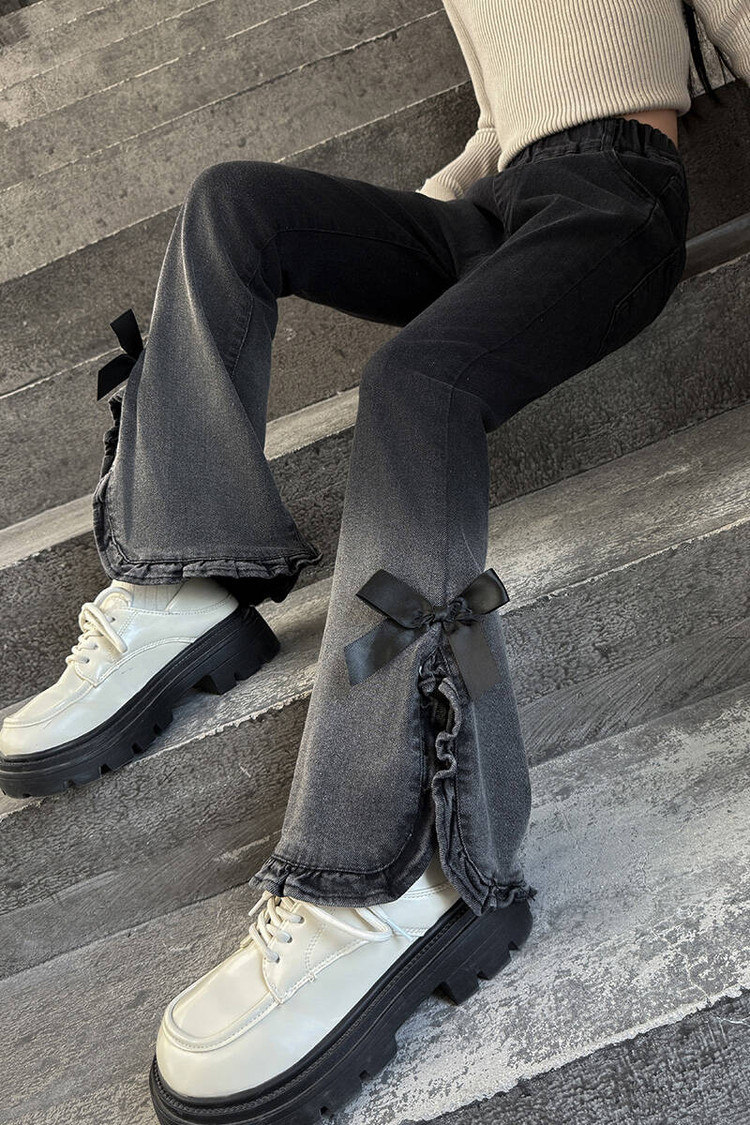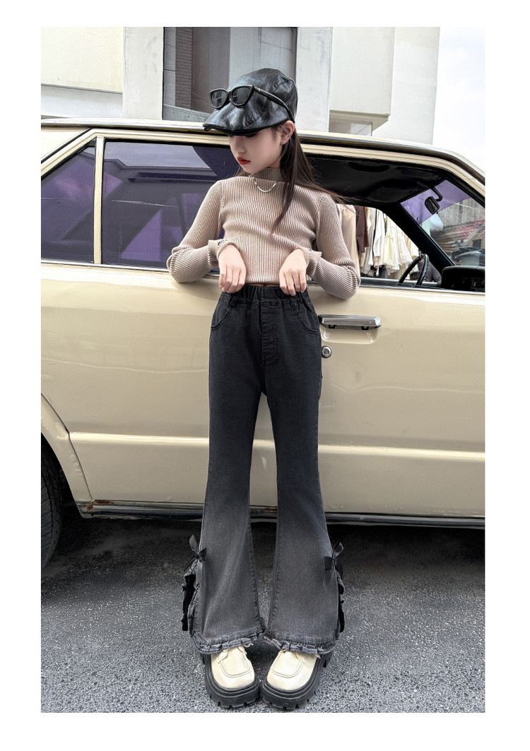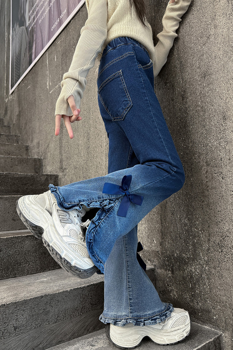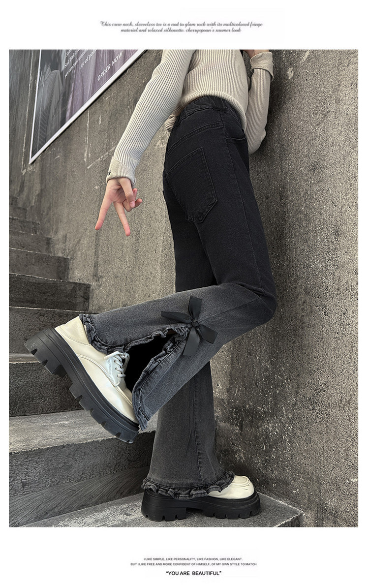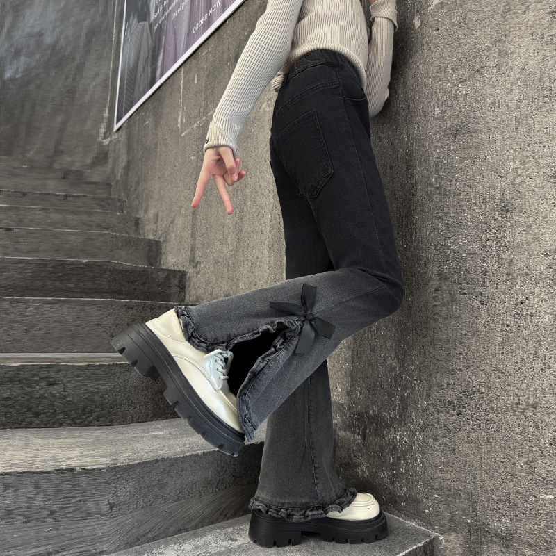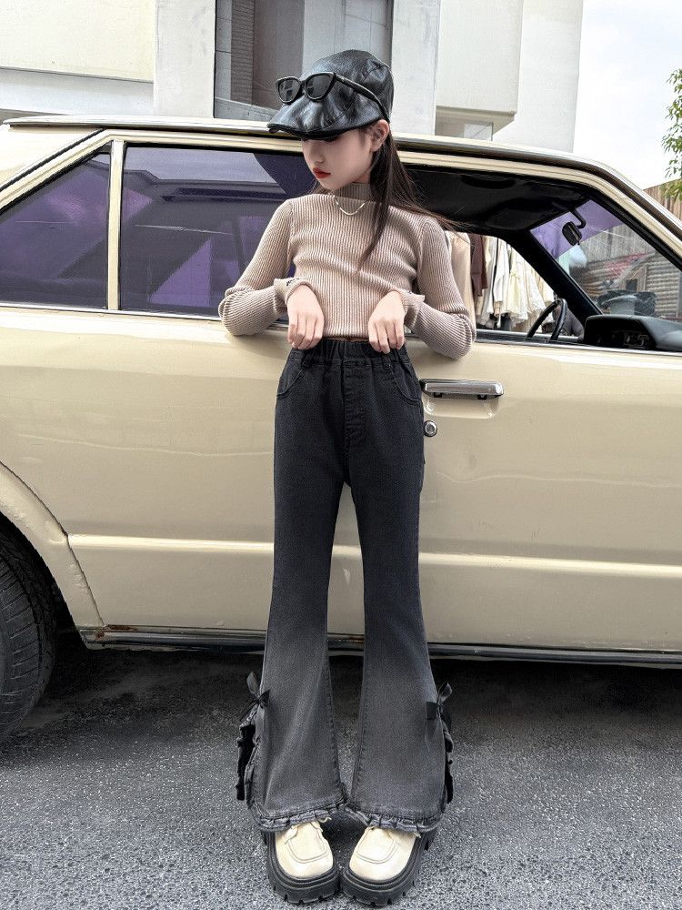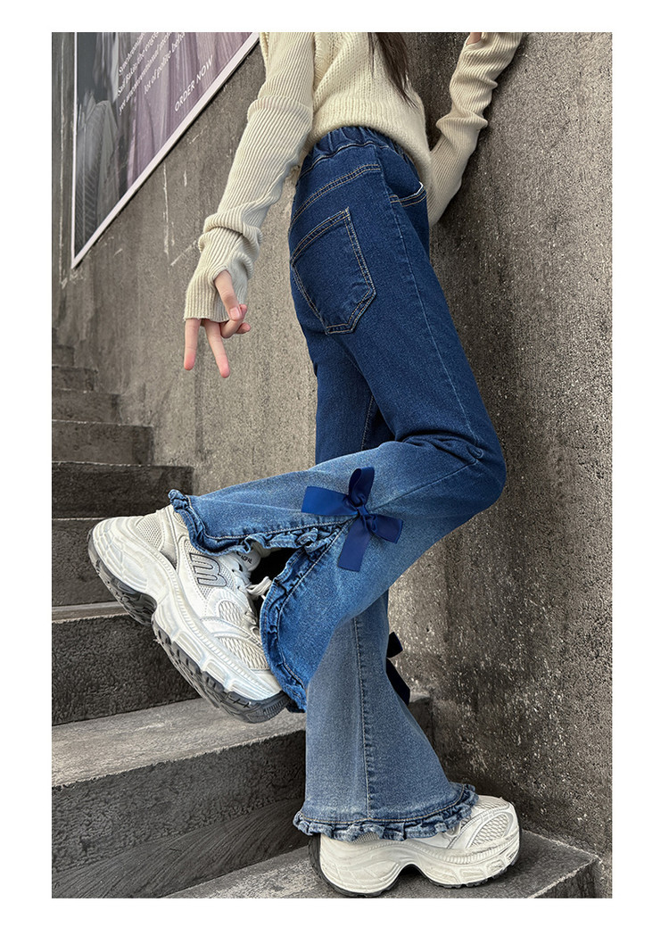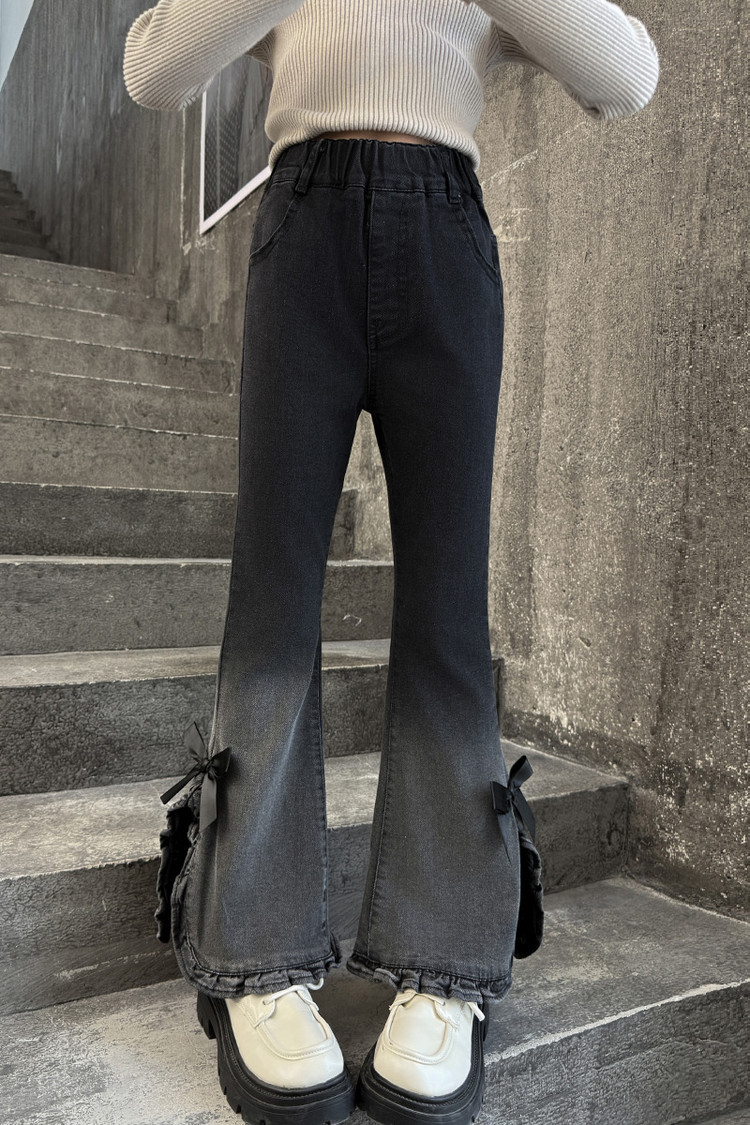 소녀의 그라디언트 컬러 청바지 세련된 봄과 가을 소녀의 달콤한 쿨 활 꽃 바지 슬림 핏 스트레치 바지 트렌디스토어 가기