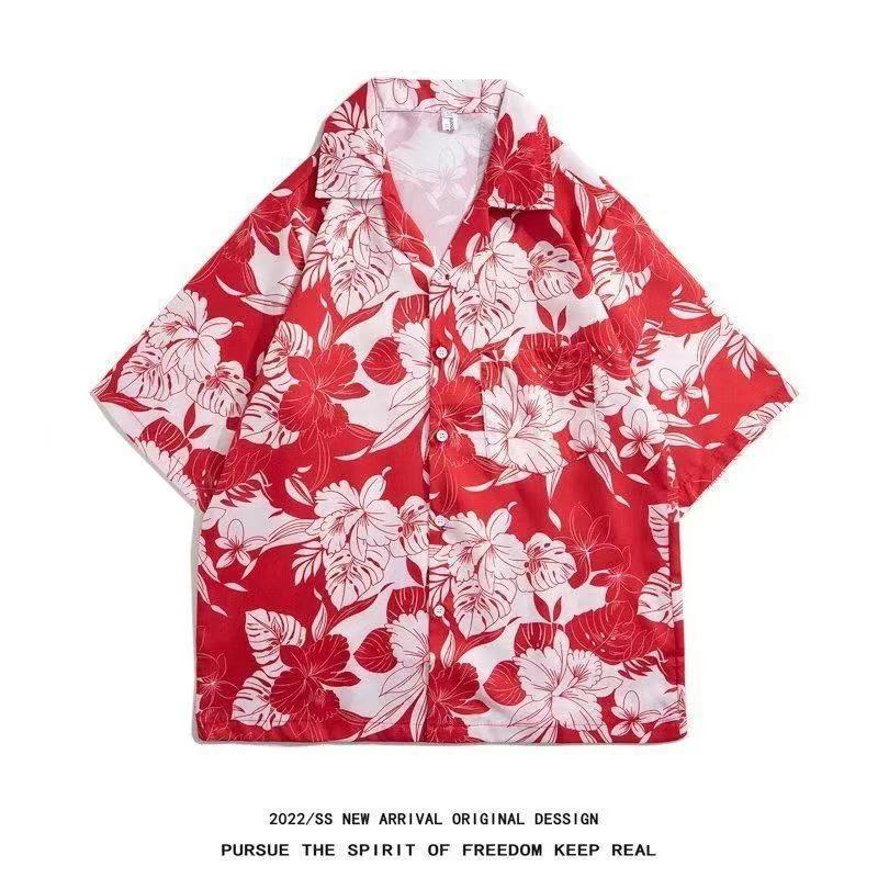 여름 반소매 셔츠 일본 스타일 Ins 하와이 비치 슈퍼 파이어 CEC 홀리데이 포트 스타일 느슨한 반소매 셔츠 트렌디