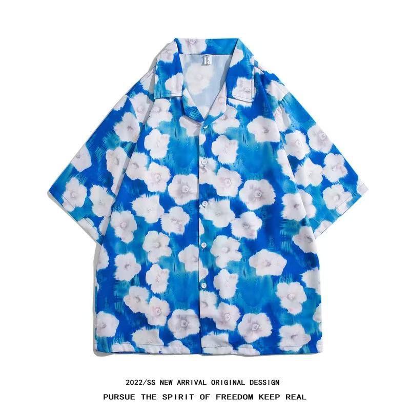 여름 반소매 셔츠 일본 스타일 Ins 하와이 비치 슈퍼 파이어 CEC 홀리데이 포트 스타일 느슨한 반소매 셔츠 트렌디스토어 가기