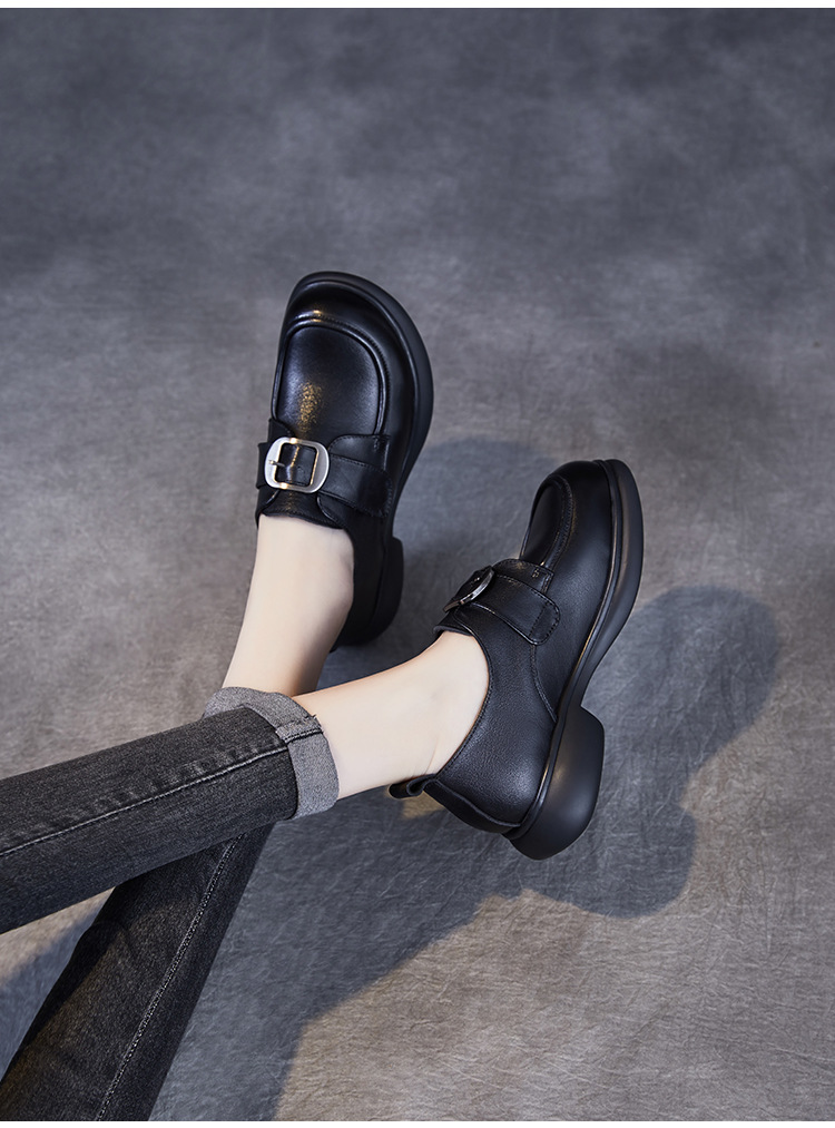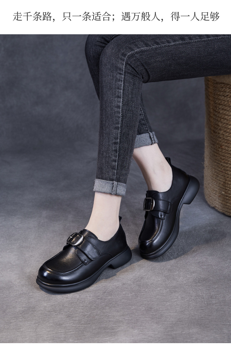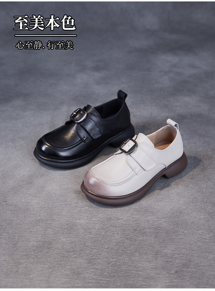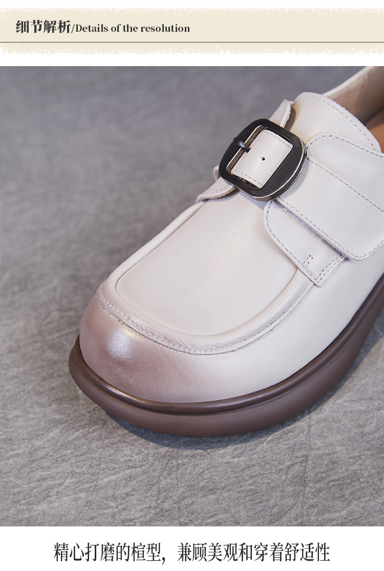미국 천연 색상 2025 봄 새로운 두꺼운 뒤꿈치 신발 여성 영국 스타일의 작은 가죽 신발 낮은 힐 로퍼 가죽 여성 신발스토어 가기