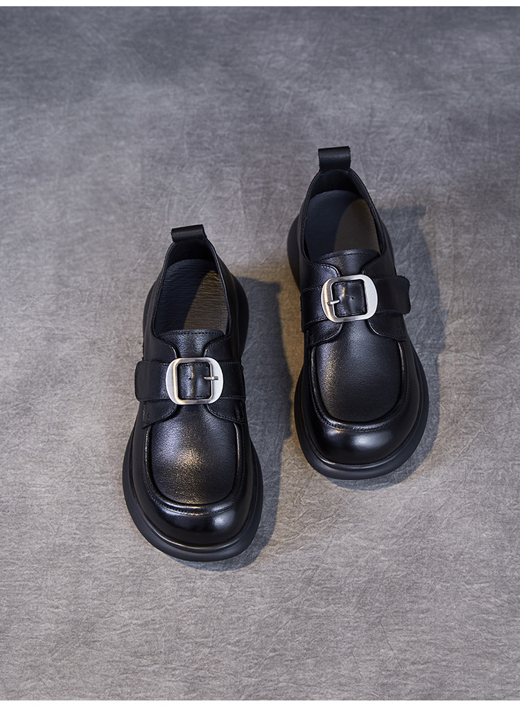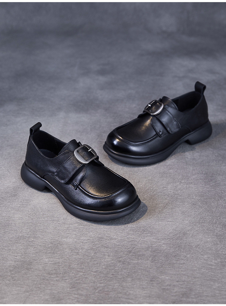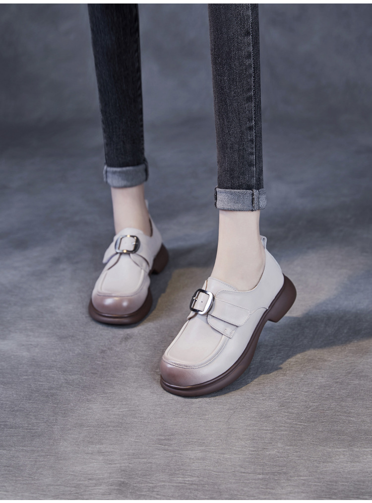미국 천연 색상 2025 봄 새로운 두꺼운 뒤꿈치 신발 여성 영국 스타일의 작은 가죽 신발 낮은 힐 로퍼 가죽 여성 신발
