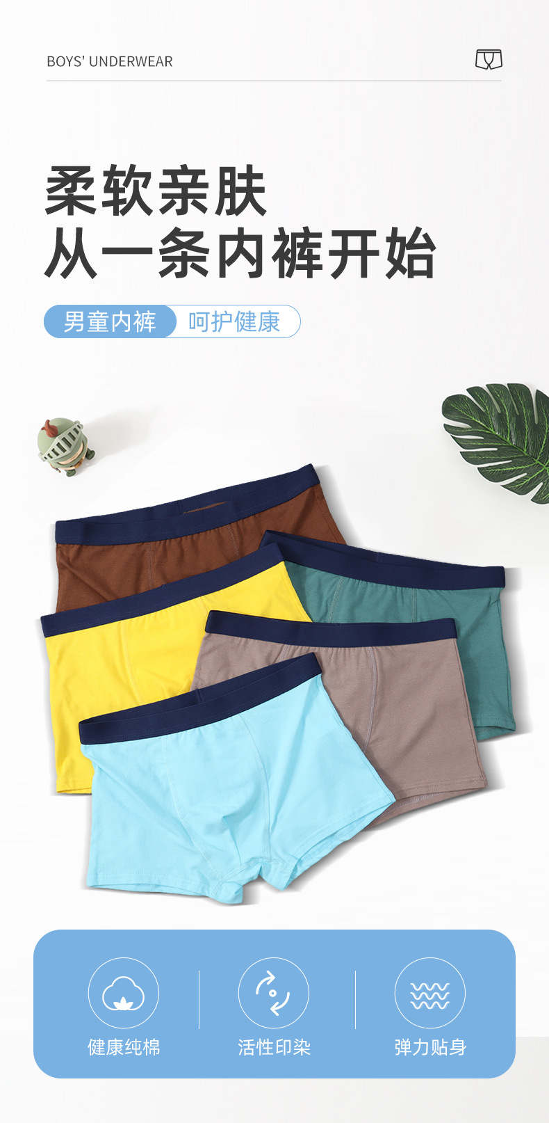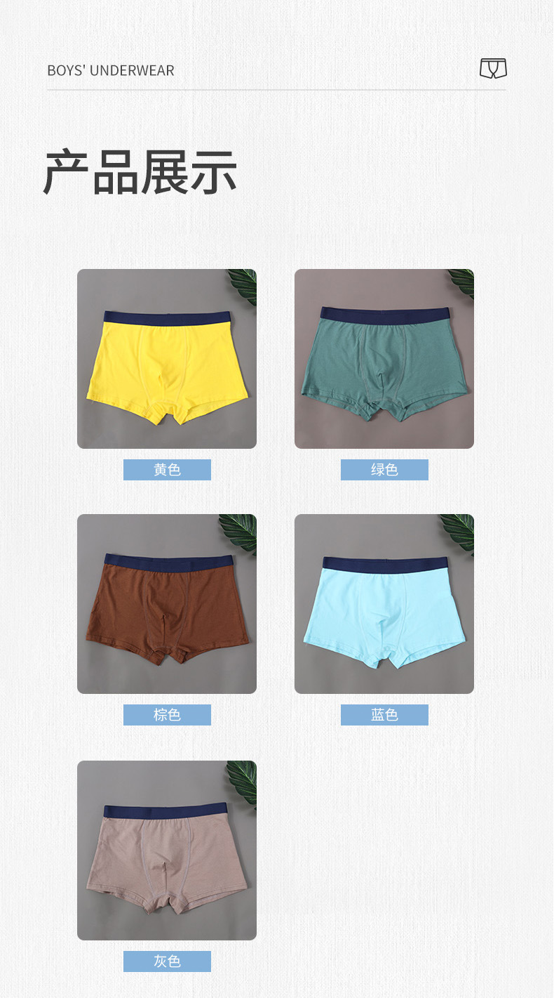 남성 사각팬티 배색 편안한 청소년 중고등학생 속옷 단색 사각팬티 중대형 아동 도매 순면 가랑이