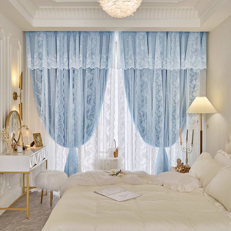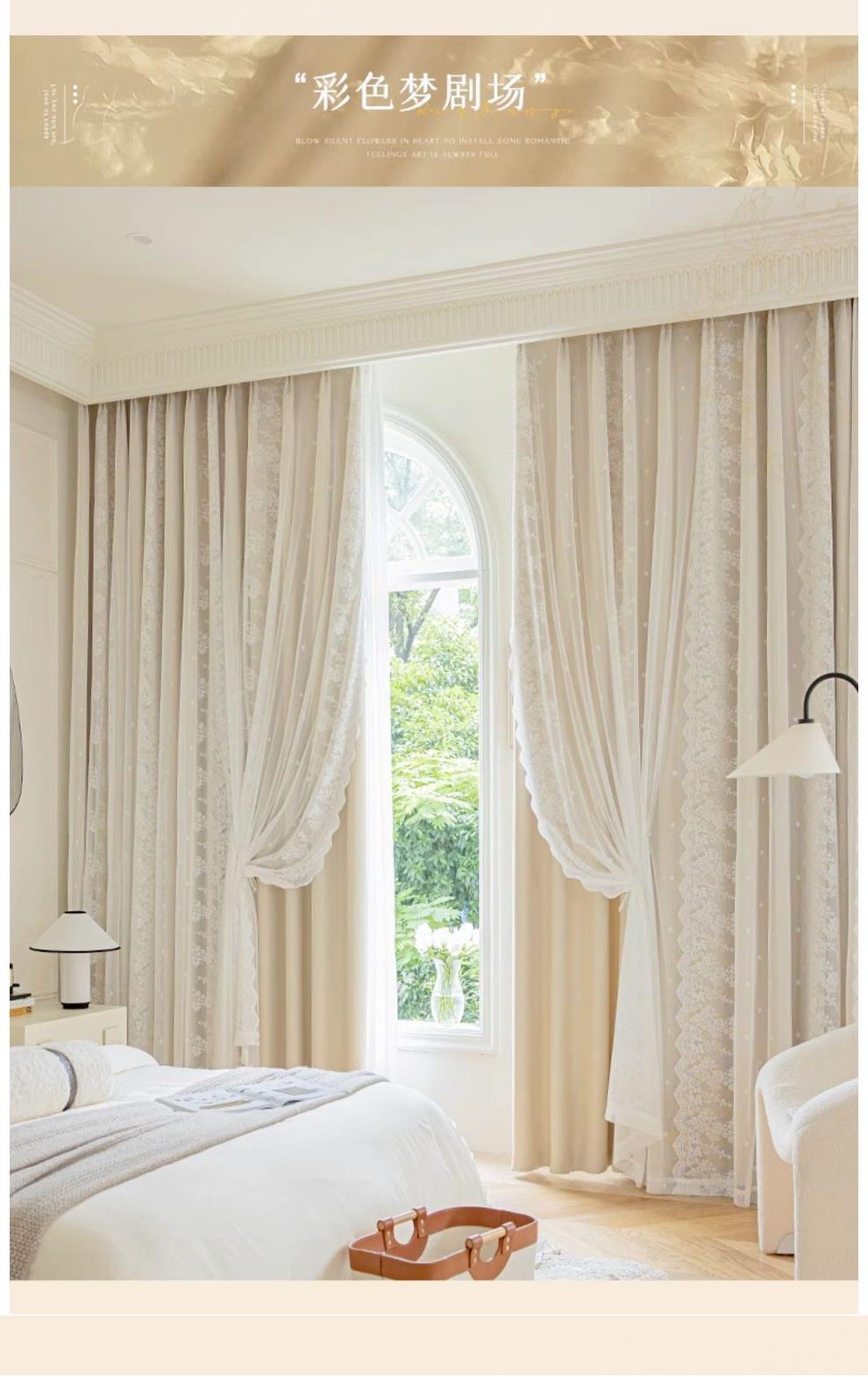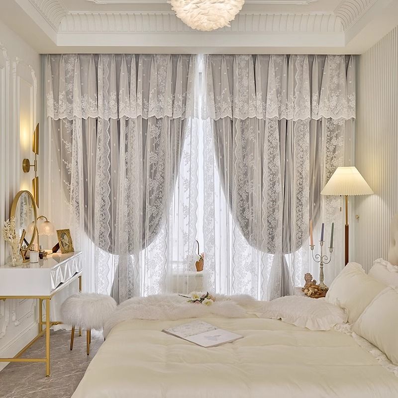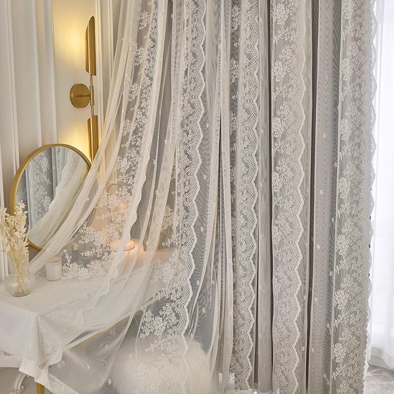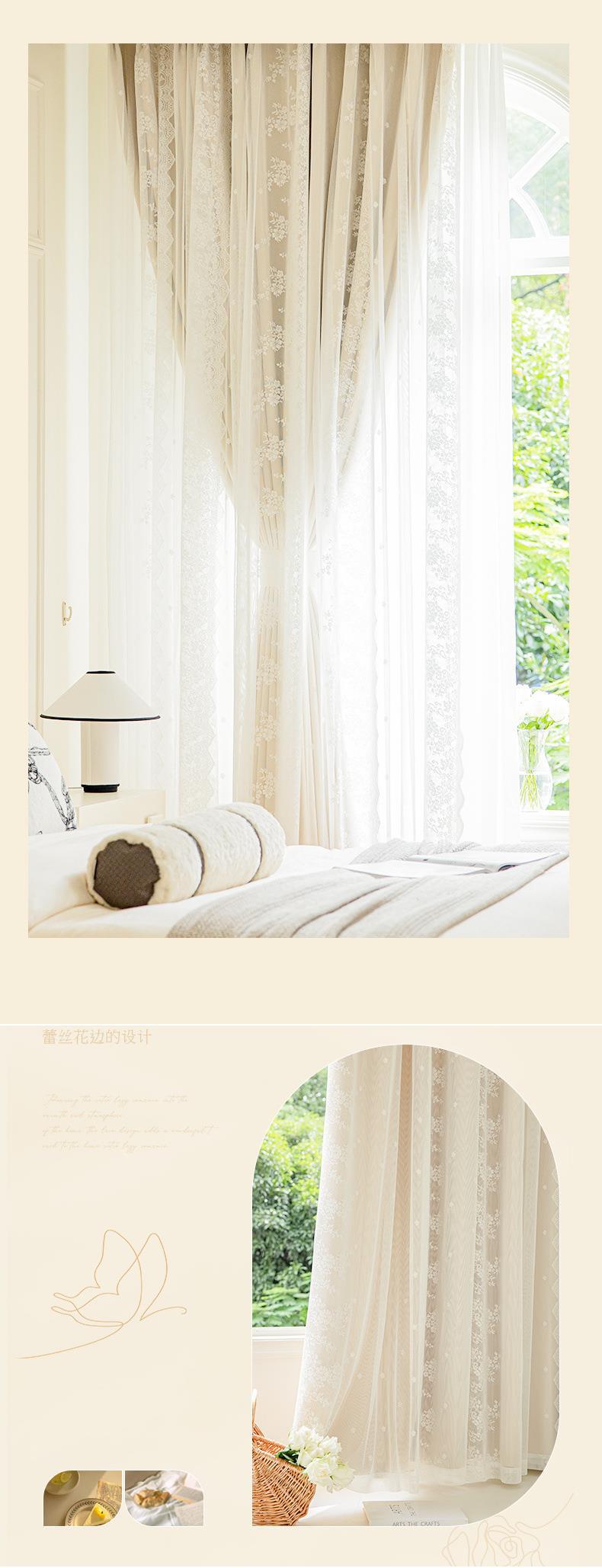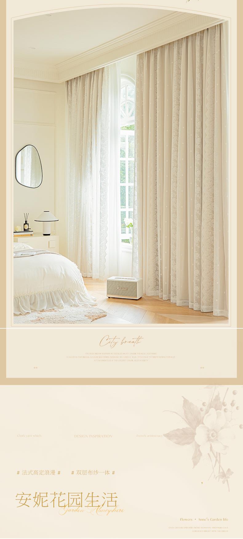 프랑스 크림 스타일 커튼 침실 음영 통합 더블 거즈 커튼 인 공주 거실 레이스 새로운 후크 스타일