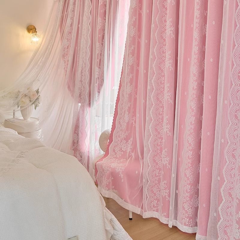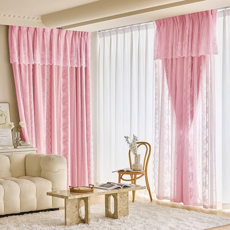 • 시크릿 가든 [사쿠라 핑크] [커튼 헤드 포함]——프렌치 더블 레이어