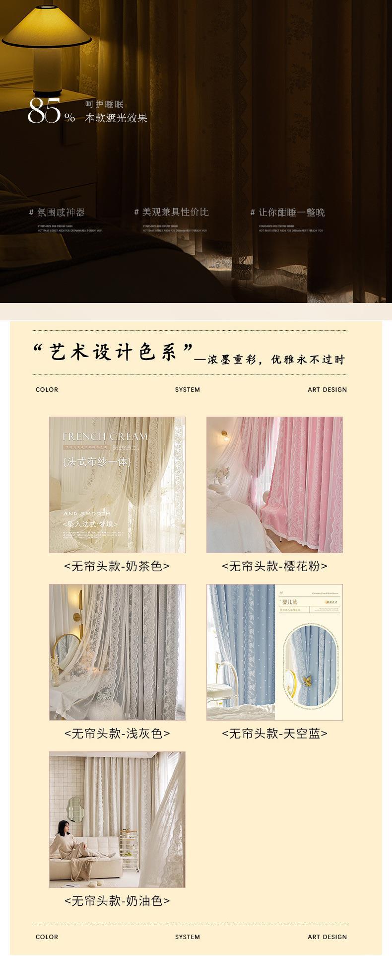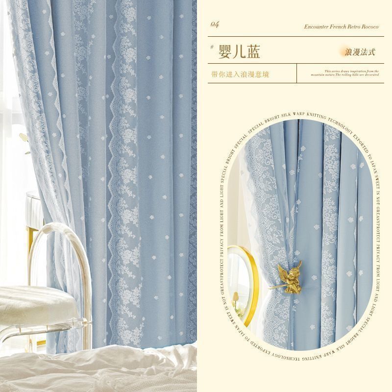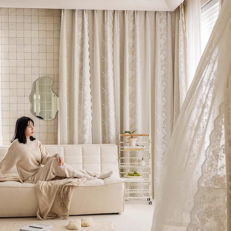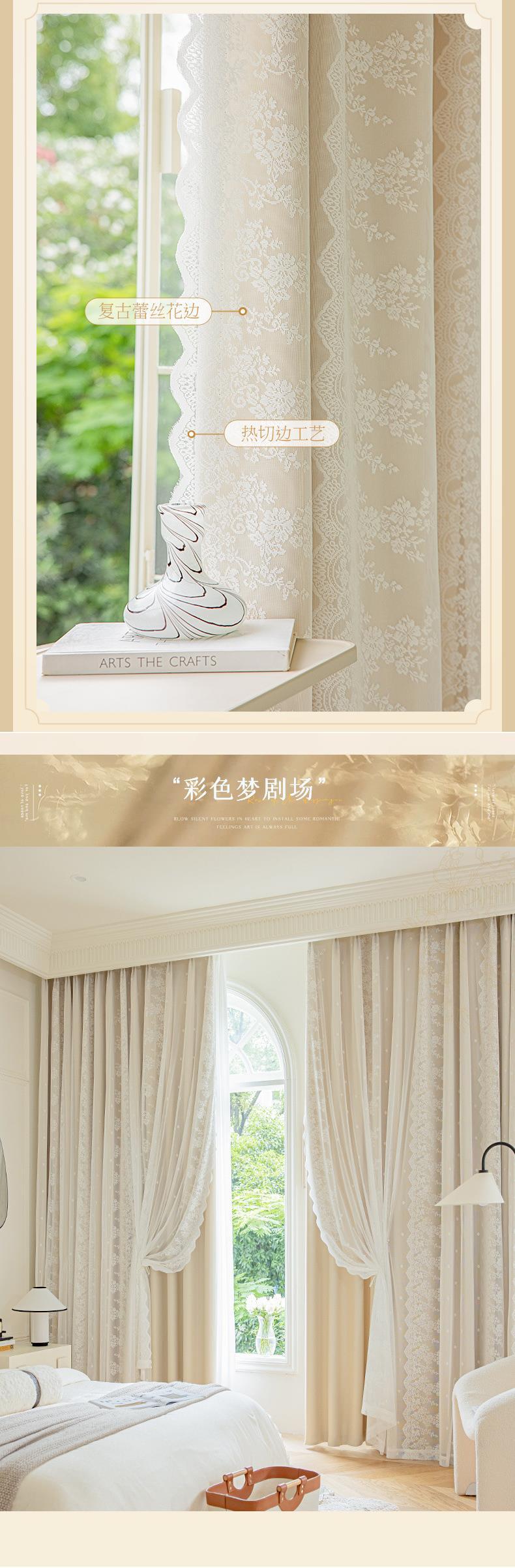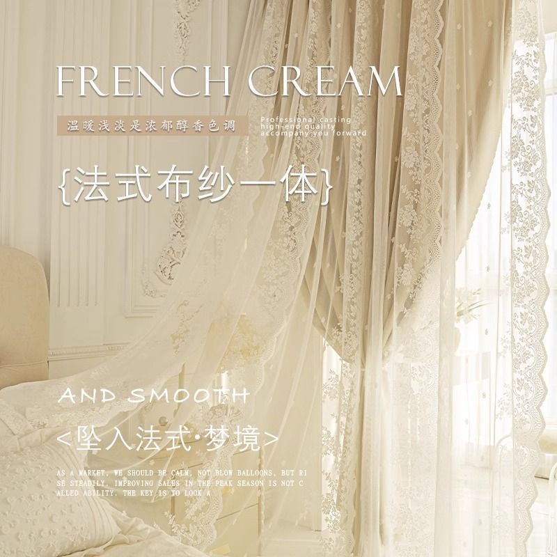 프랑스 크림 스타일 커튼 침실 음영 통합 더블 거즈 커튼 인 공주 거실 레이스 새로운 후크 스타일스토어 가기