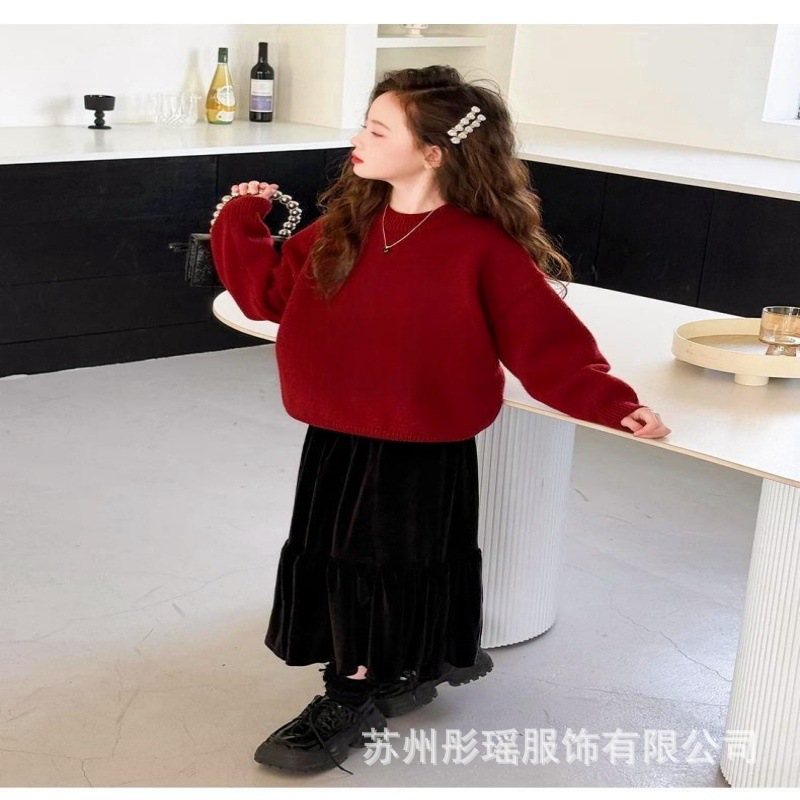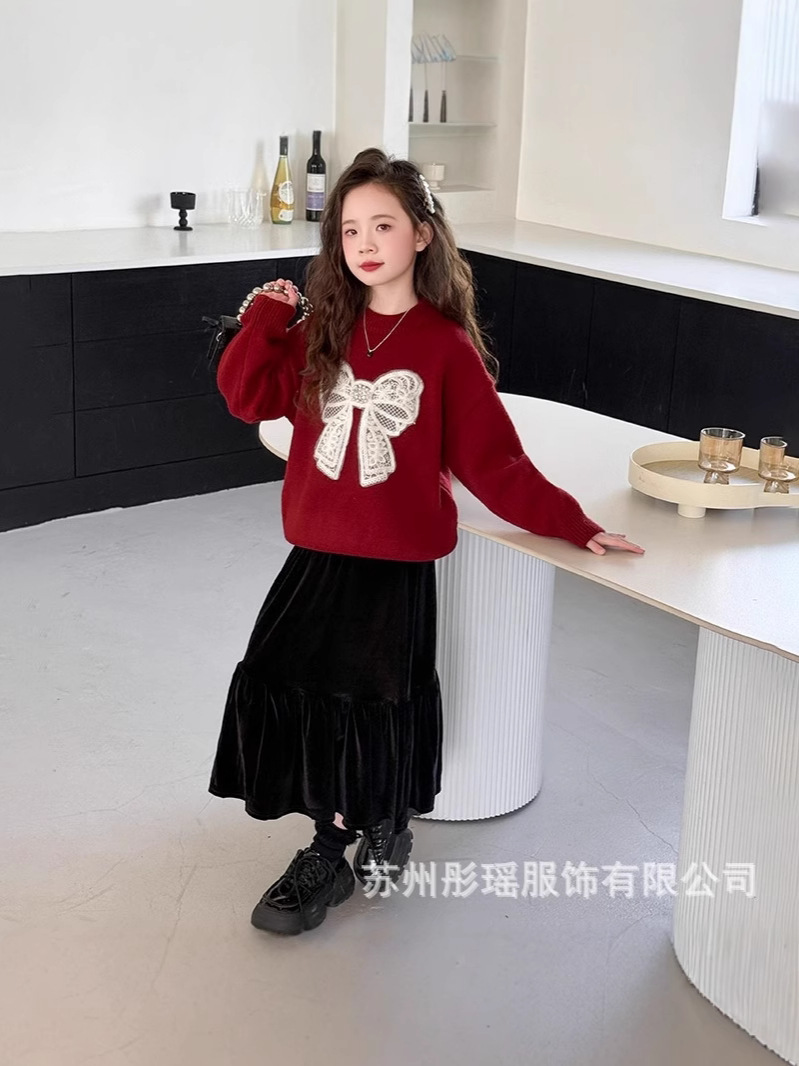 여아 스웨터 가을, 겨울 2025 새로운 나비 스웨터 어린이 새해 옷 여아 두꺼운 스웨터상의