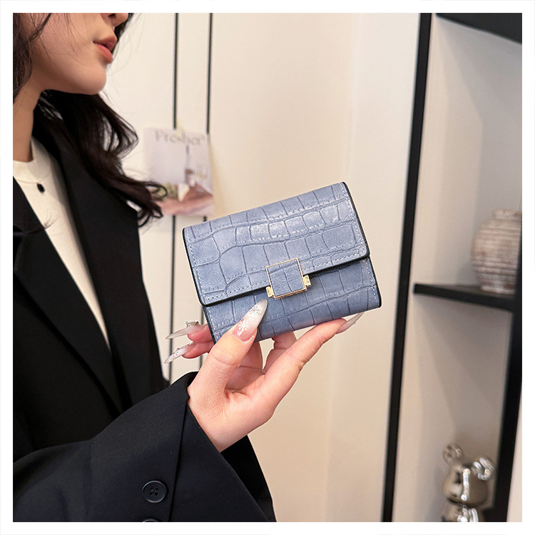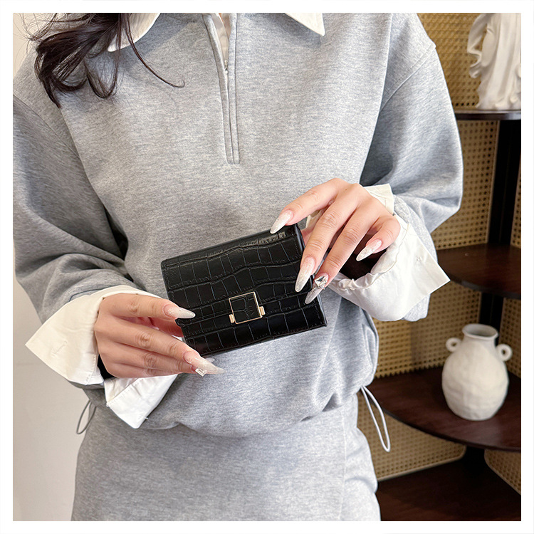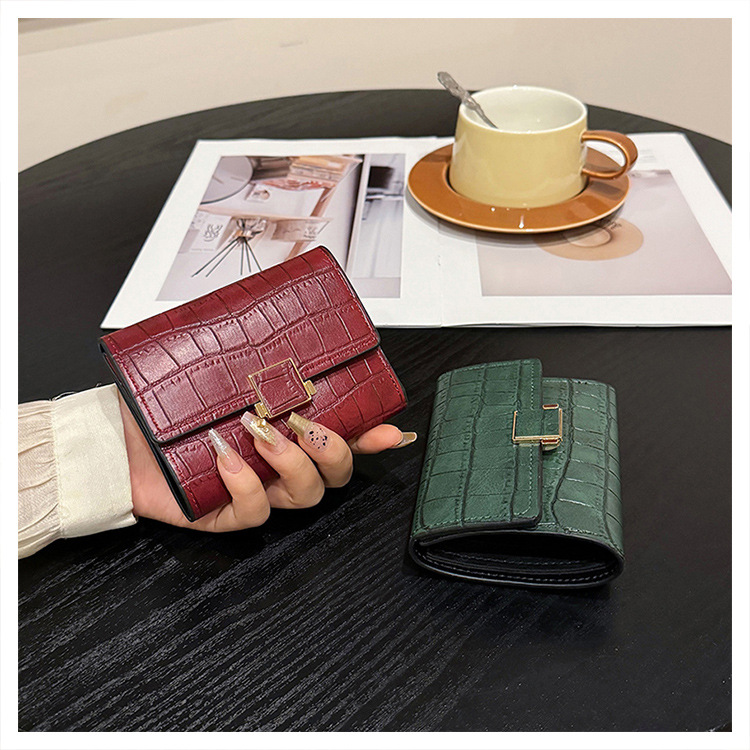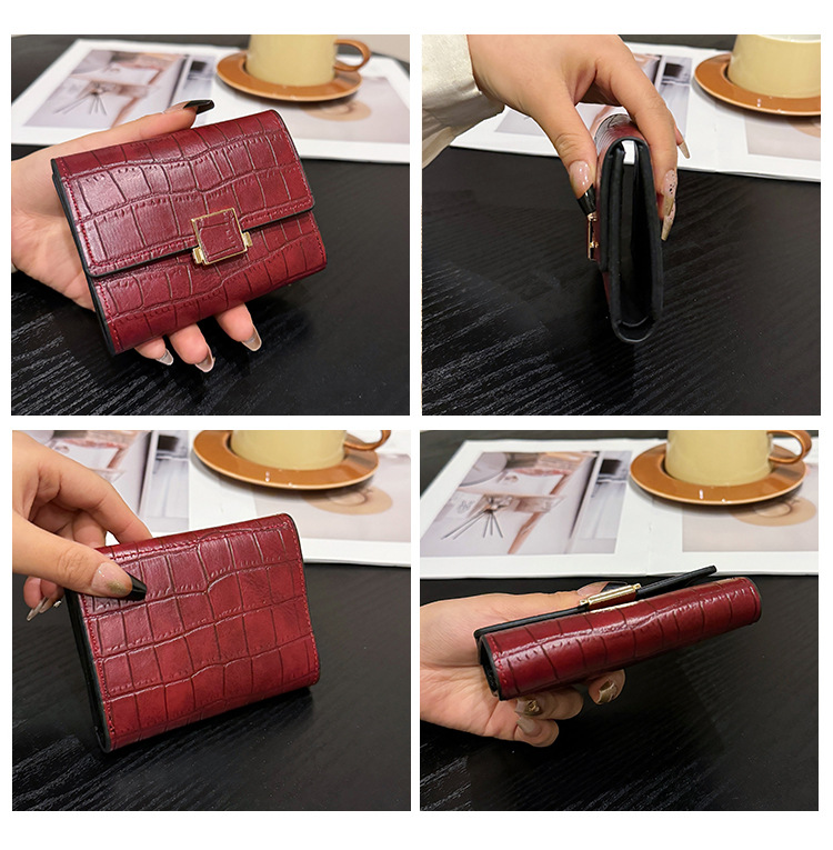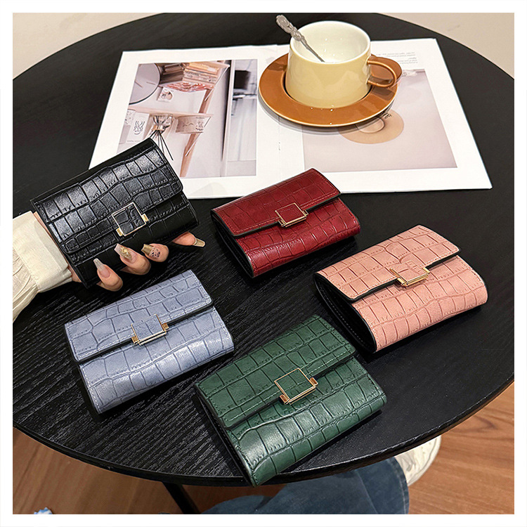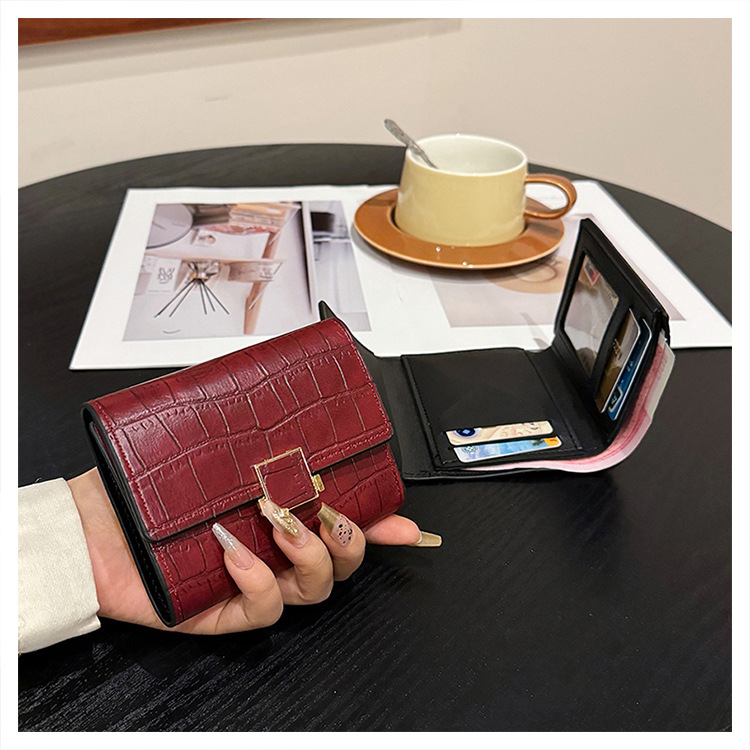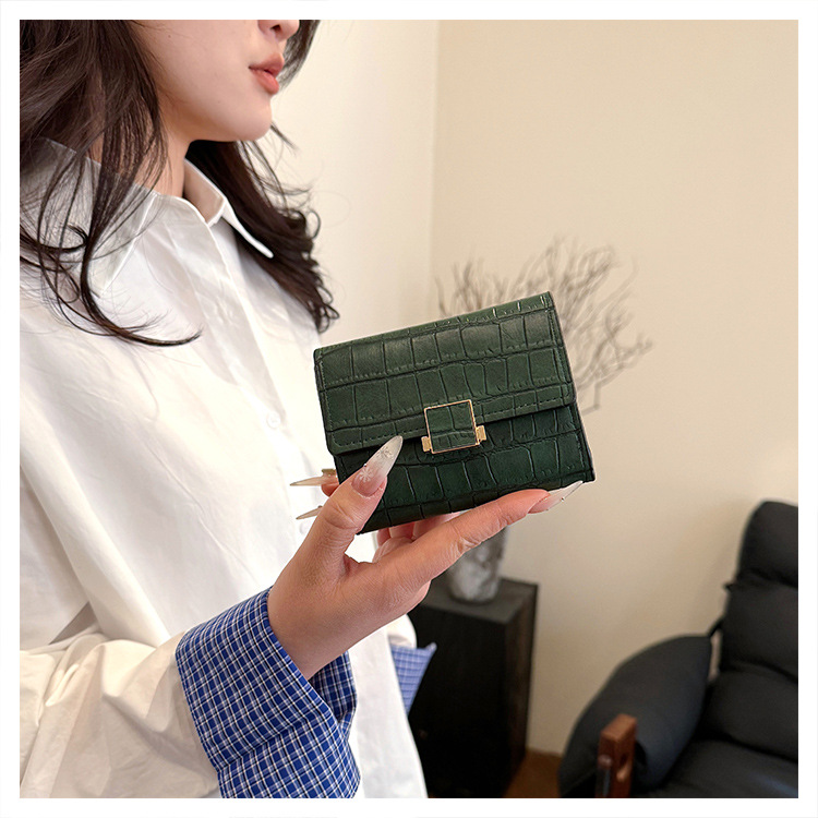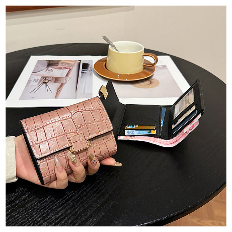 지갑 여성의 짧은 2025 새로운 유럽과 미국의 악어 패턴 패션 학생 멀티 카드 접는 카드 가방 동전 클립스토어 가기