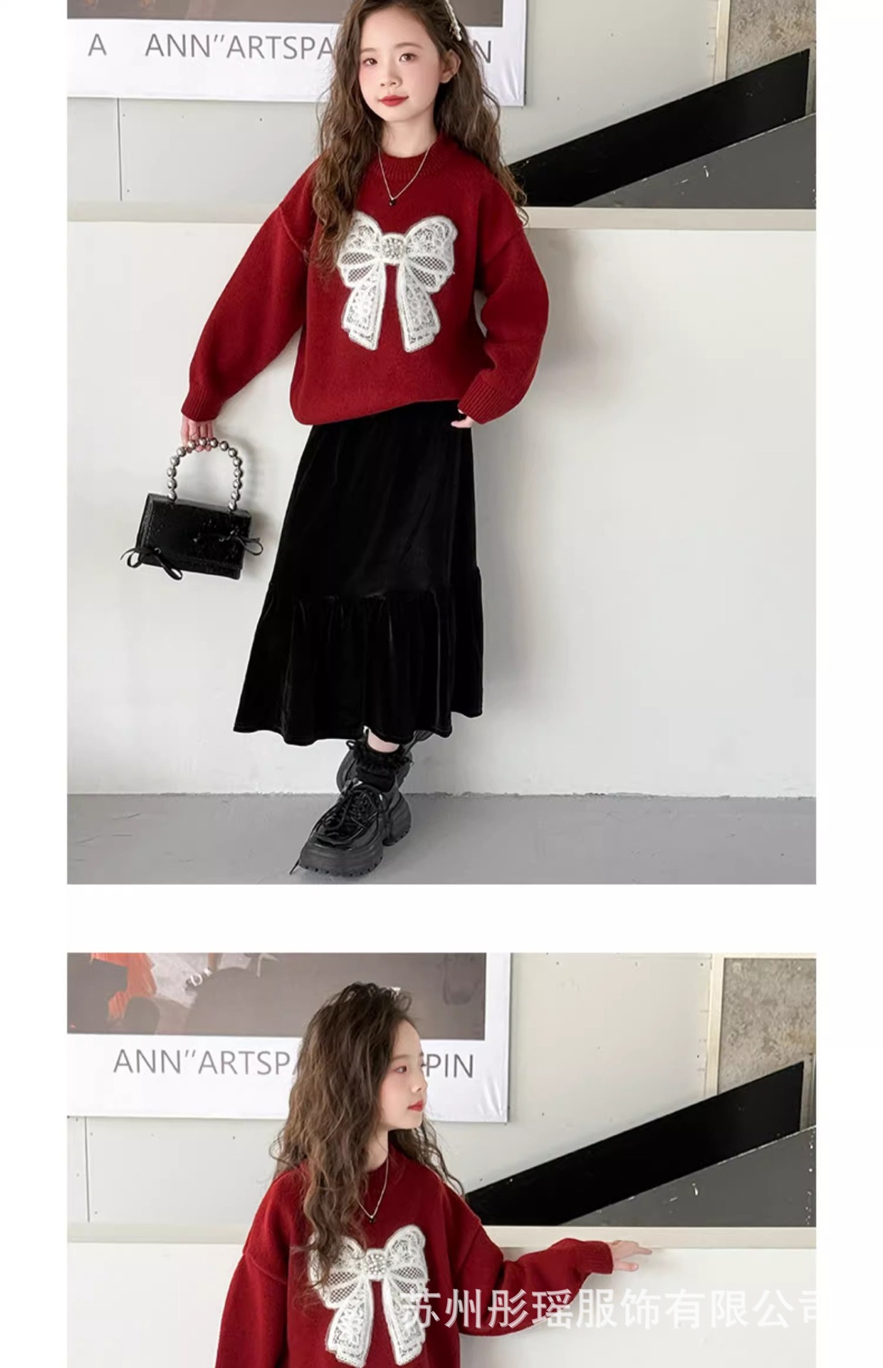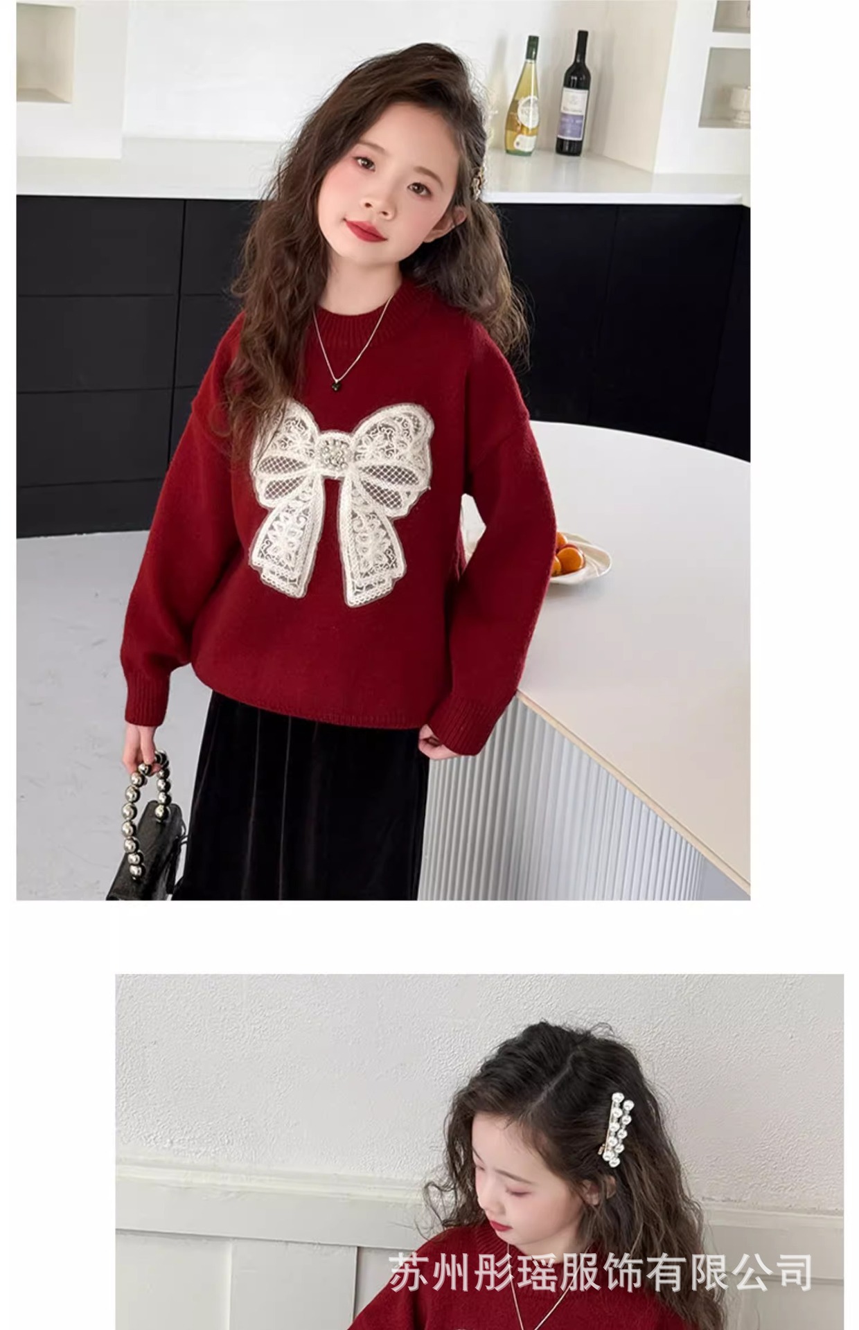 여자 모조 밍크 벨벳 스웨터 겨울 의류 2025 새로운 어린이 크리스마스 레드 탑 여자 느슨한 라운드 넥 스웨터스토어 가기