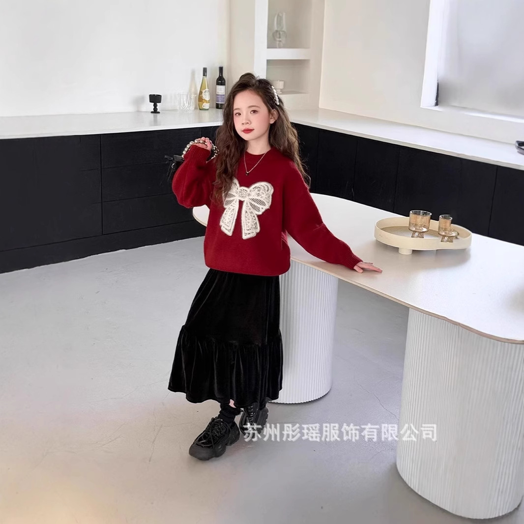 여자 모조 밍크 벨벳 스웨터 겨울 의류 2025 새로운 어린이 크리스마스 레드 탑 여자 느슨한 라운드 넥 스웨터