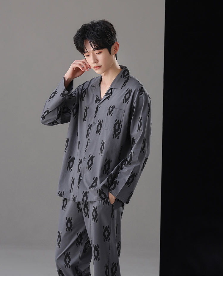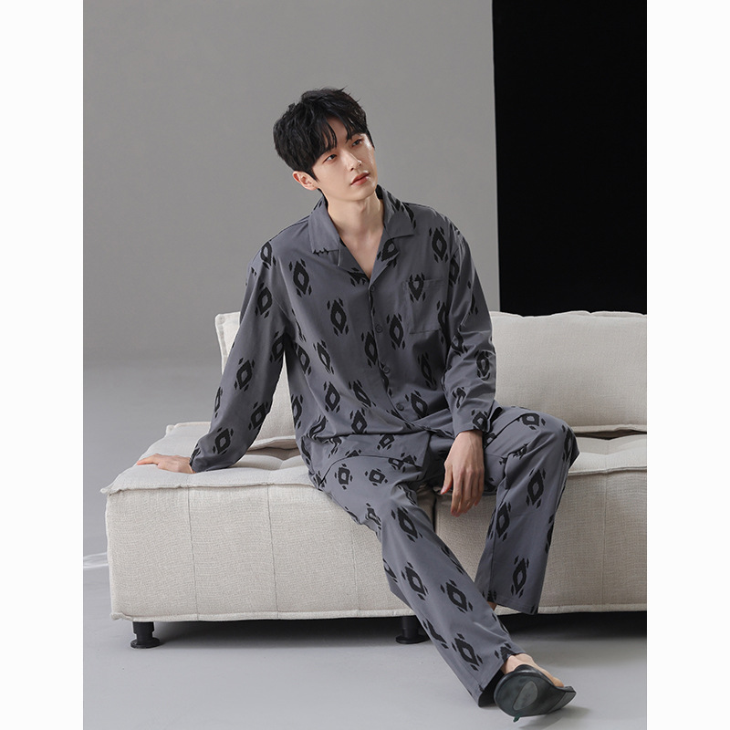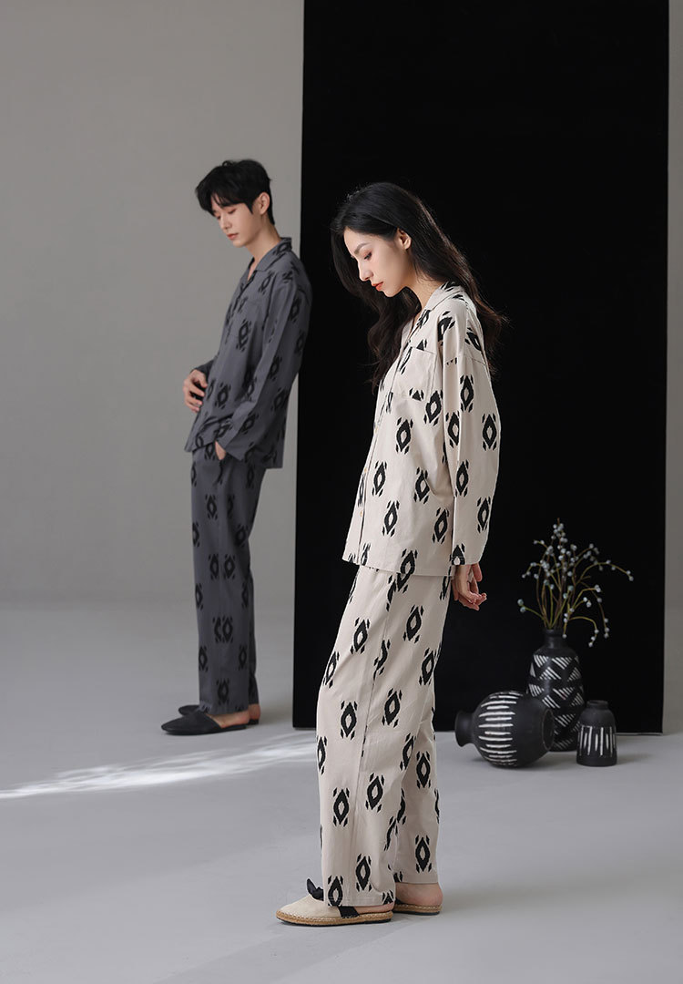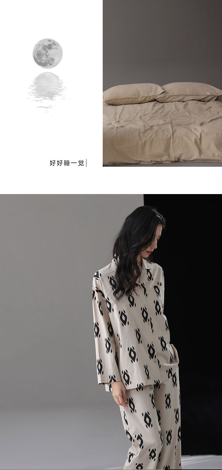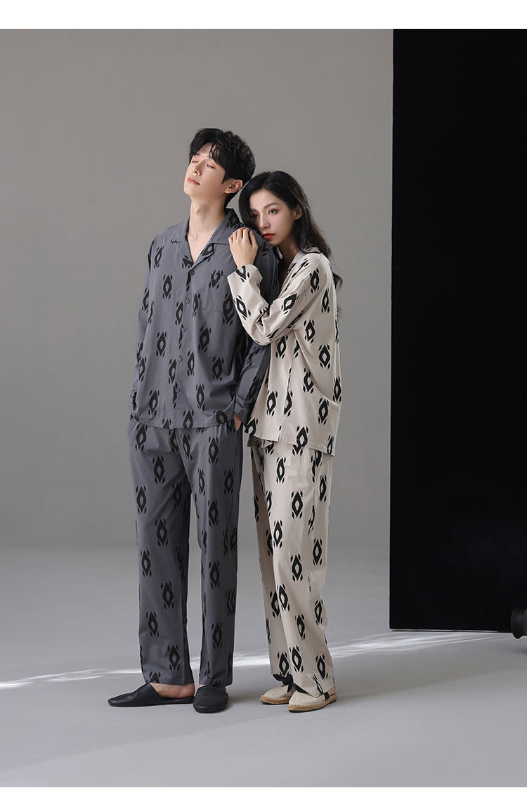 【부드러운 라운지웨어】가을 신상 커플 잠옷 순면 긴팔 외출복 남녀공용 홈웨어 세트
