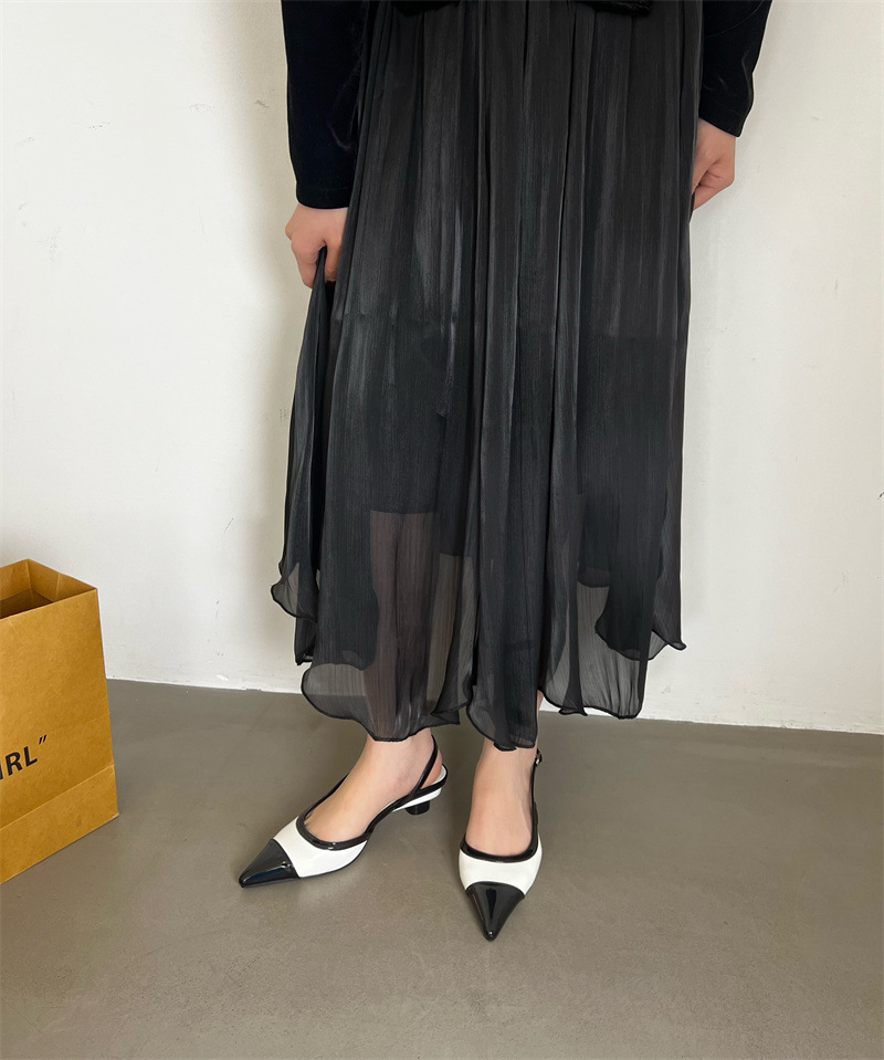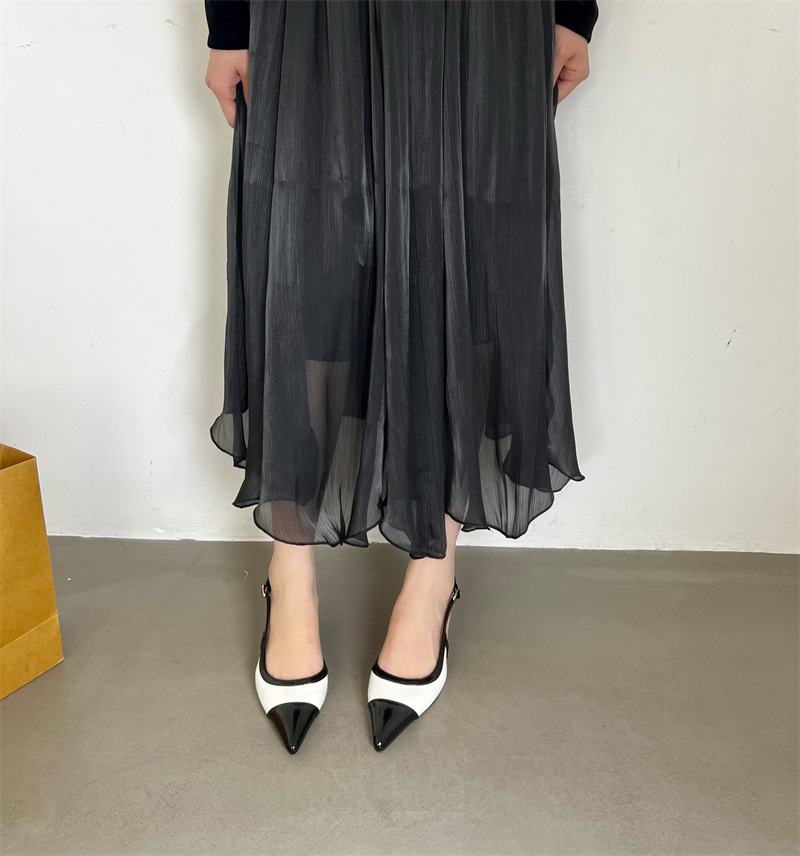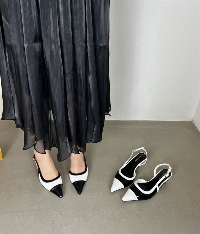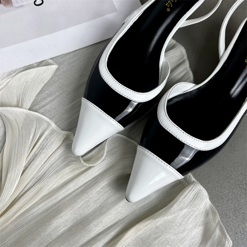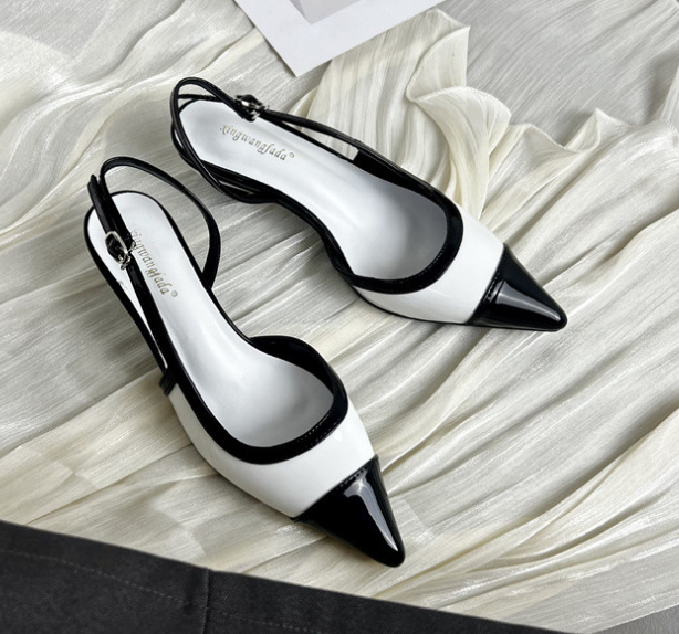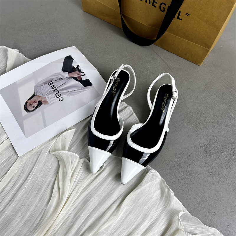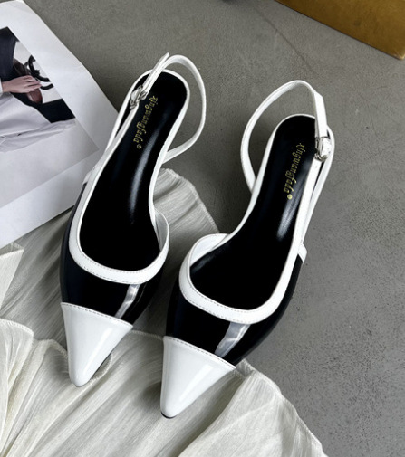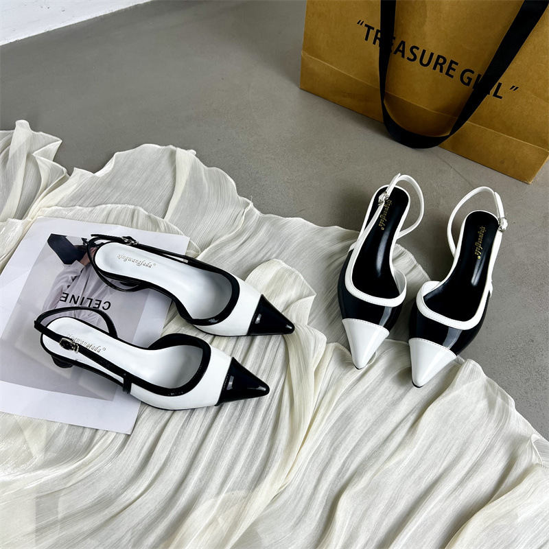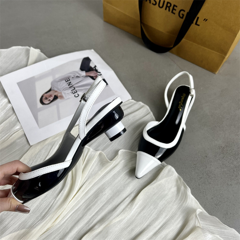 샤넬 스타일 프렌치 스타일 올 매치 두꺼운 하이힐 슈즈 여성의 2025 뾰족한 발가락 백 뒤꿈치 빈 트립 스트랩 컬러 매칭 얕은 입 신발스토어 가기