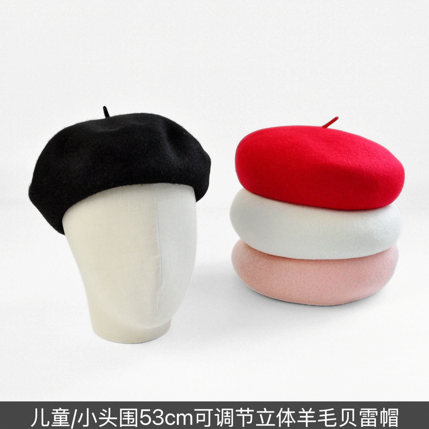 가을과 겨울 하이 퀄리티 모직 화가의 모자 작은 머리 둘레 어린이 53cm 조절 3 차원 울 베레모스토어 가기