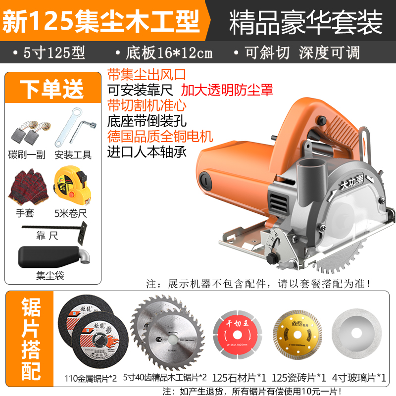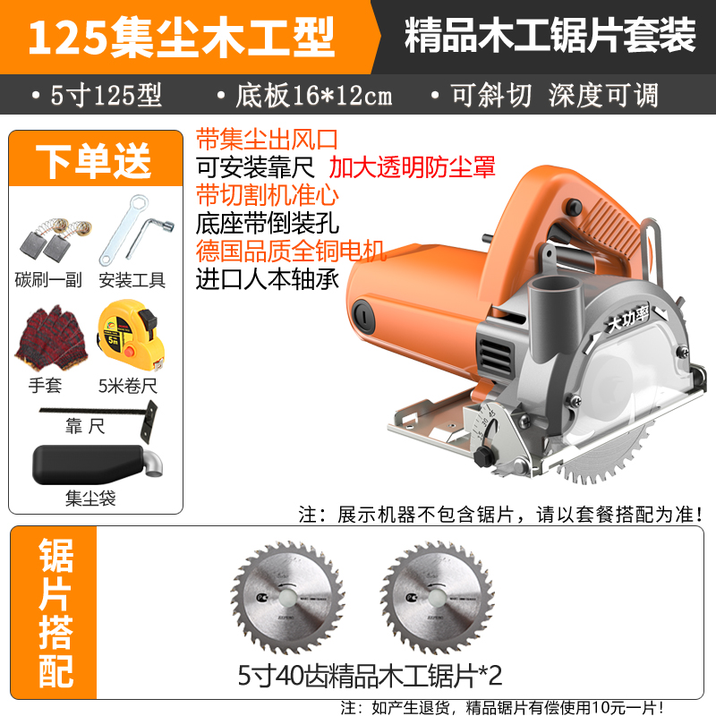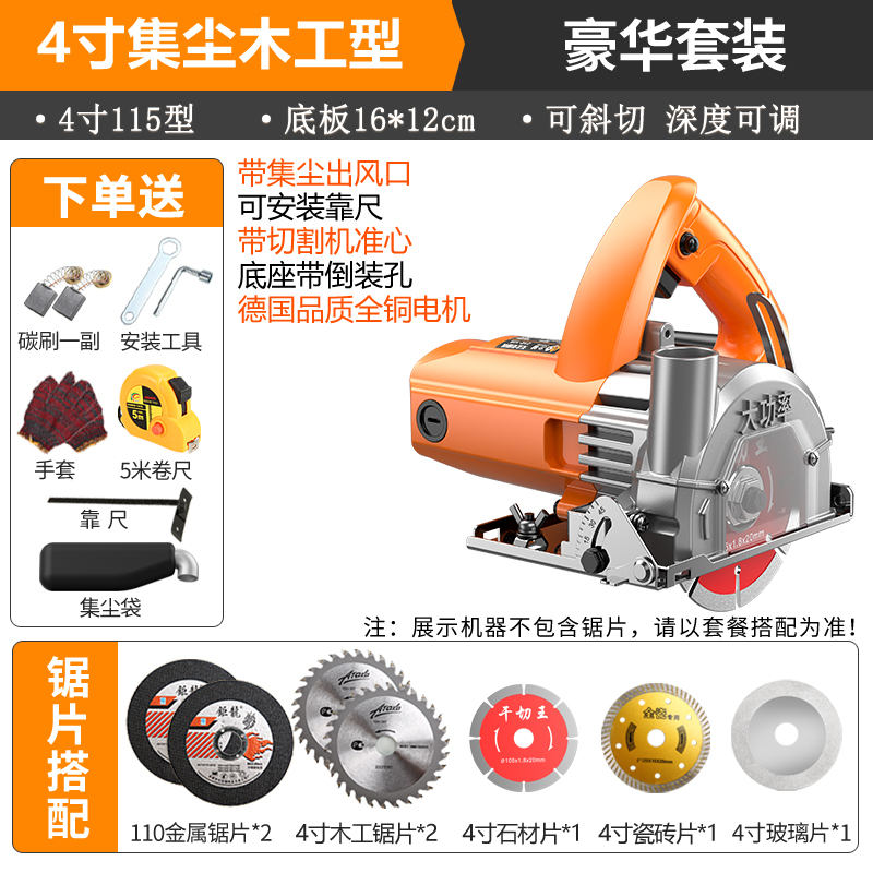 • 5inch 목공 집진 모델에는 공장 표준 구성 + 진공 청소기가 제공됩니다.