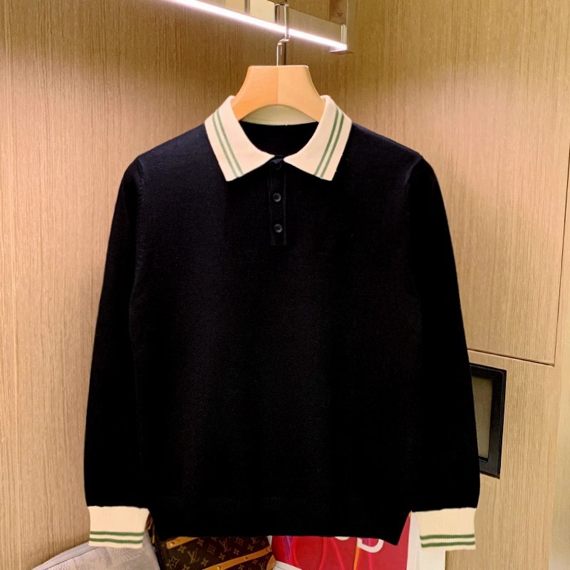 슬림 핏 2024 남자 최고의 스웨터 영국 패션 하이 레벨 센스 컬러 블록 폴로 셔츠 긴팔 트렌디스토어 가기