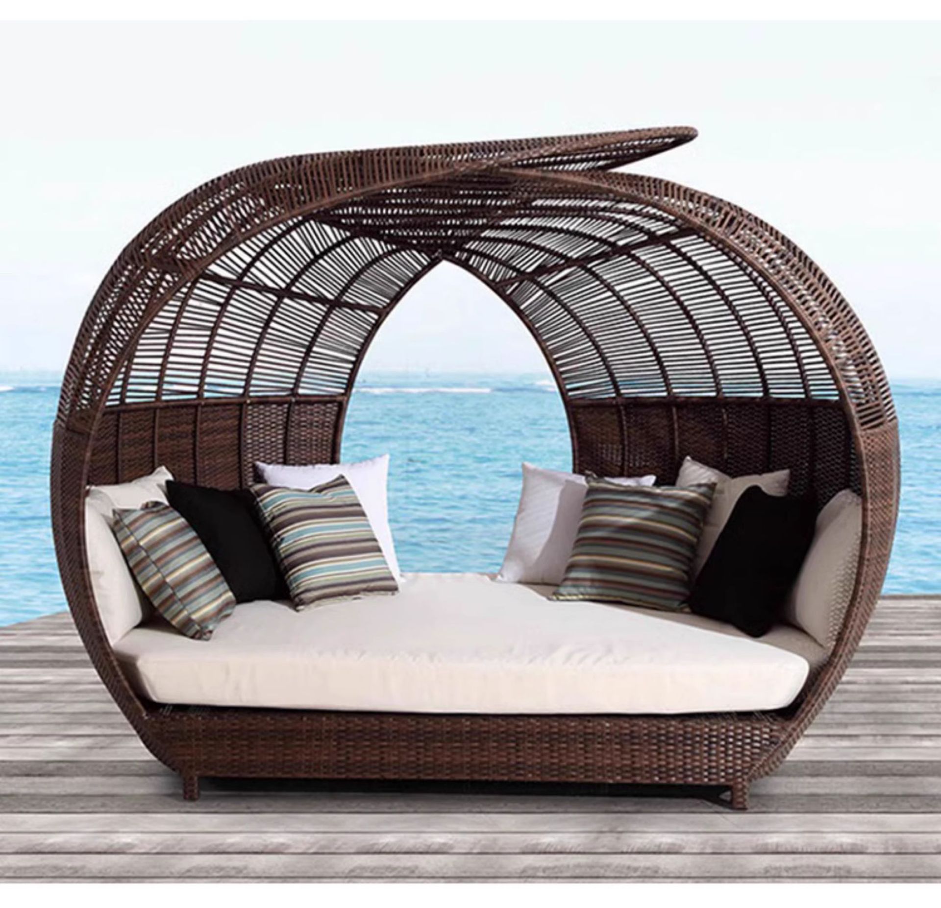 넷 레드 리조트 새 둥지 소파 야외 거짓말 침대 코트야드 가든 판매 부서 야외 창조적 인 대형 등나무 라운드 침대스토어 가기