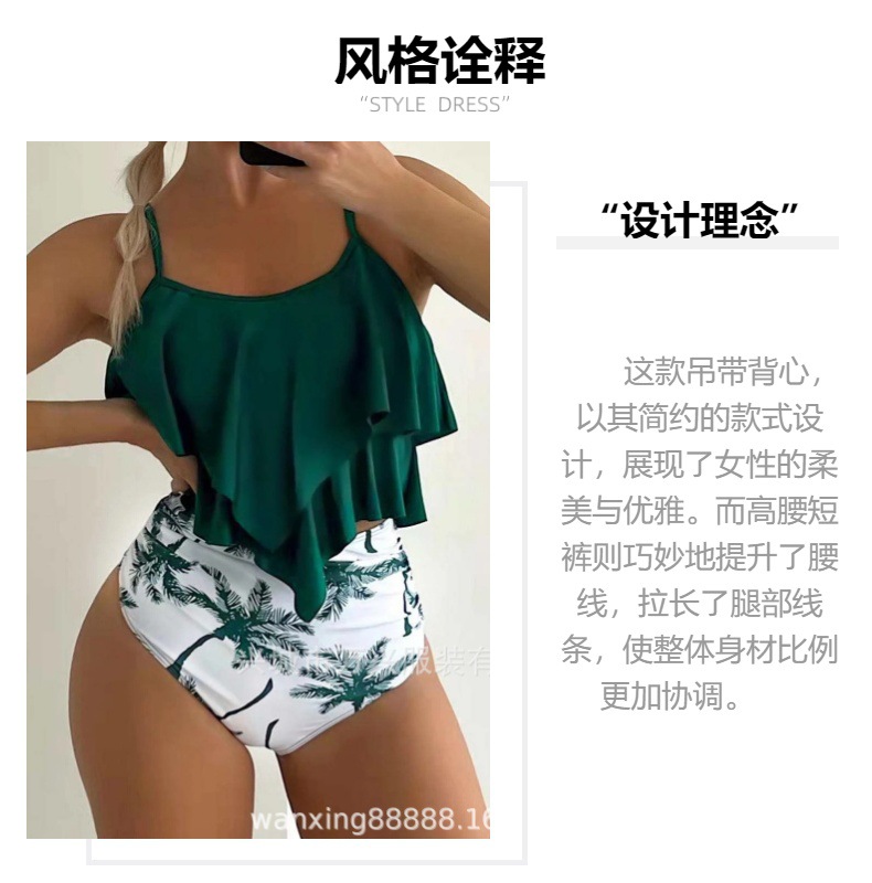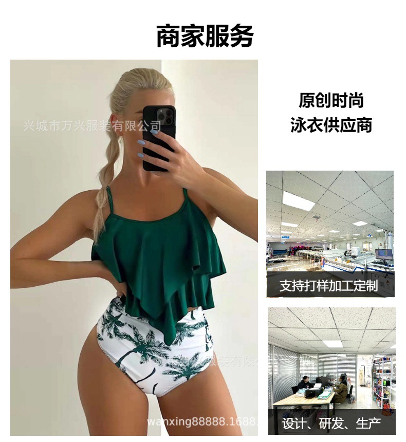 크로스보더 비키니 2025 유럽과 미국의 새로운 스타일의 꽃무늬 스플릿 백리스 하이웨이스트 배를 덮는 온천 비키니 수영복스토어 가기