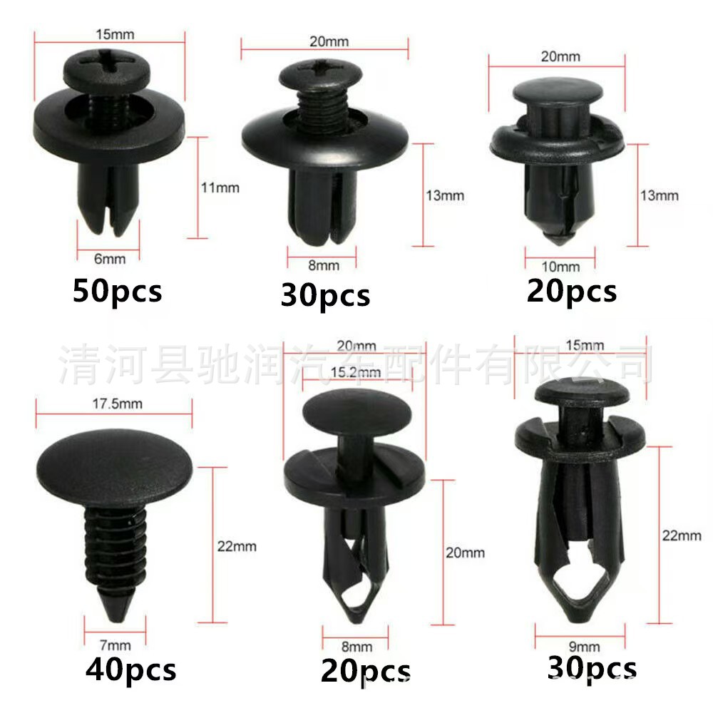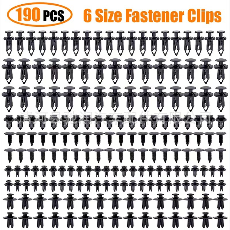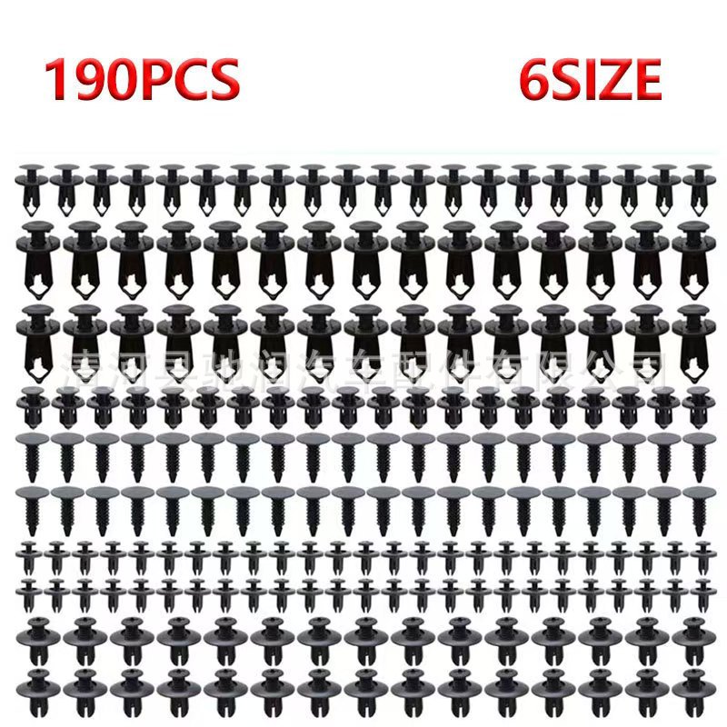 190pcs 가방 자동차 버클 6 크기 세트 패스너 리벳 범퍼 펜더 고정 클립