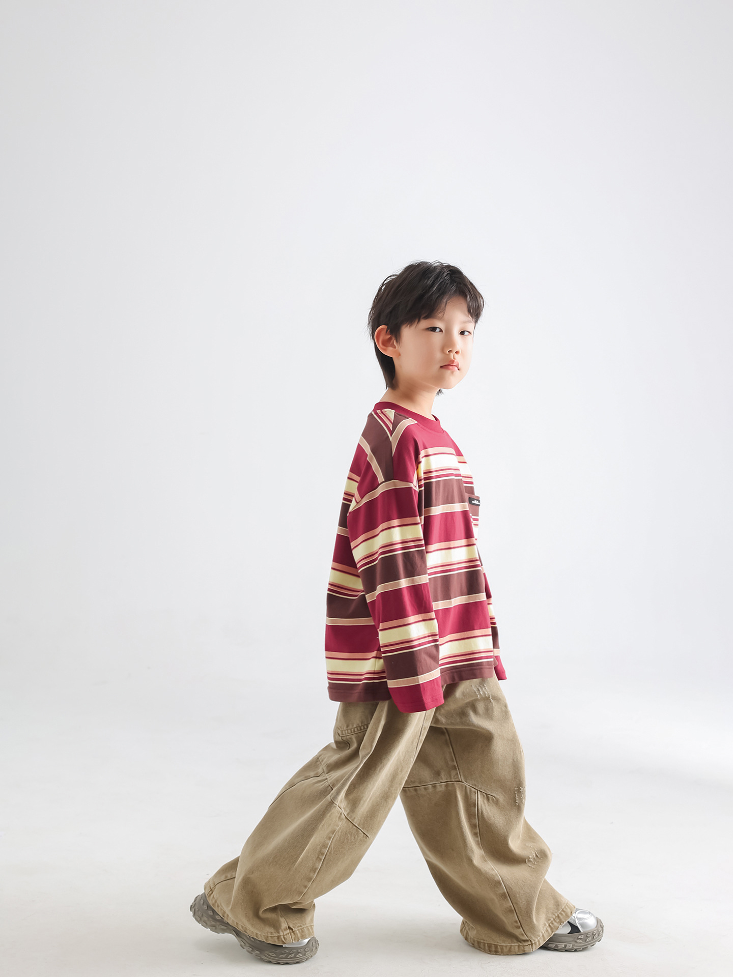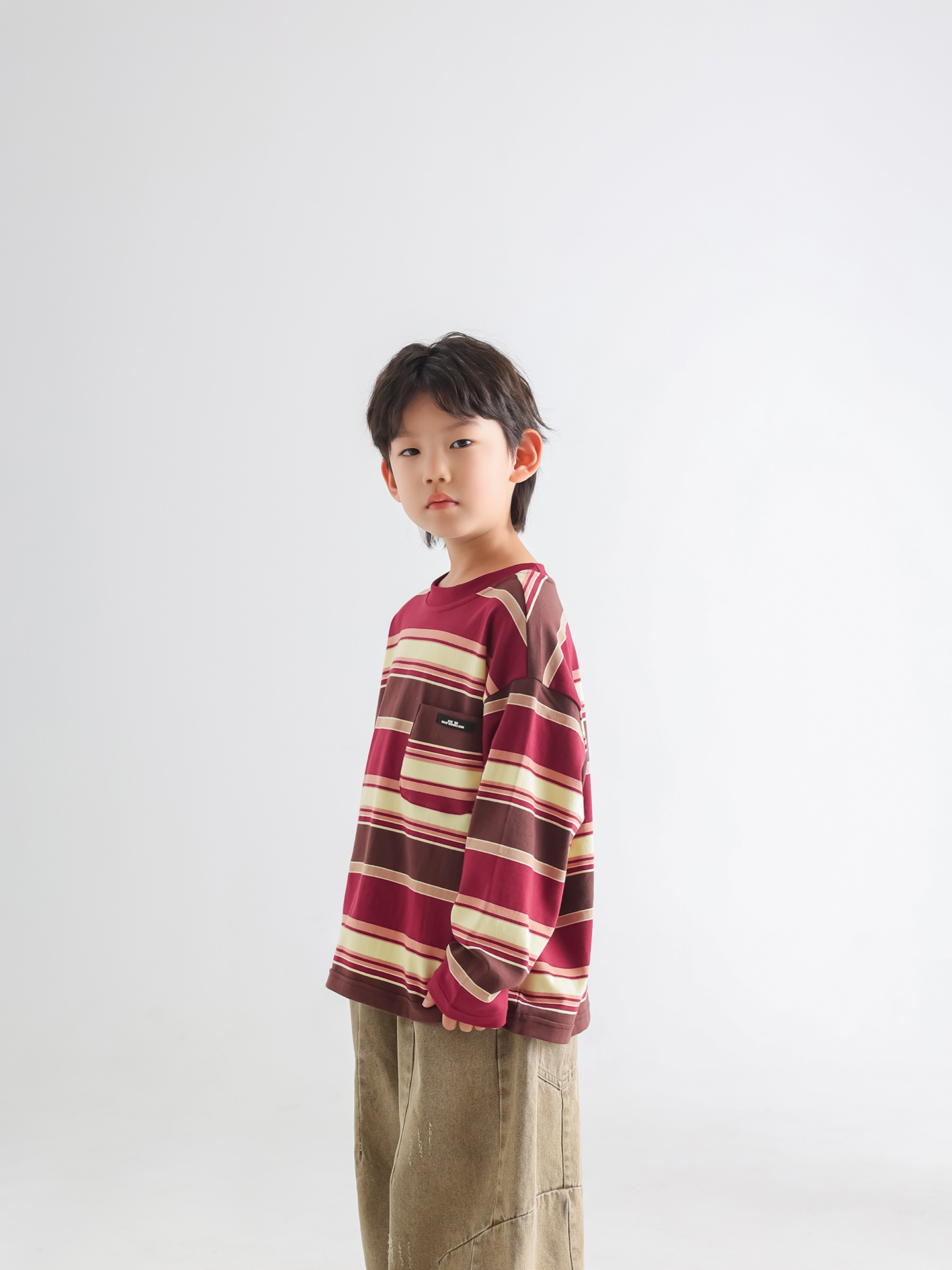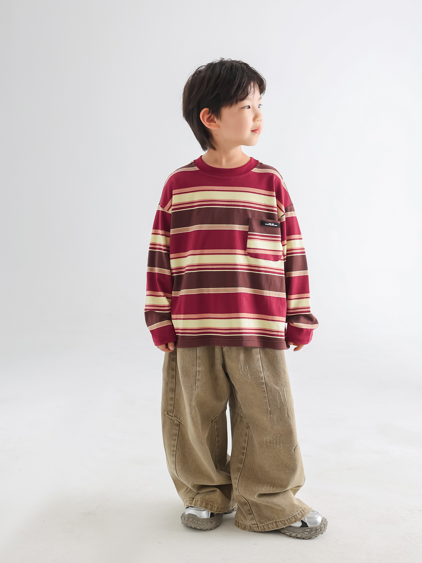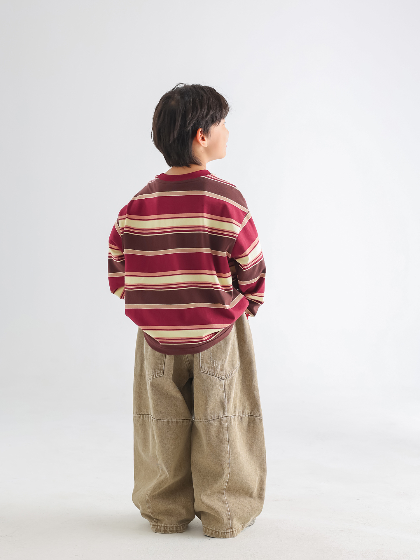 소년 티셔츠 가을 한국 스타일 아동복 2025 아동용 새 줄무늬 가을 긴팔 루즈 풀오버 땀 흡수 탑스토어 가기