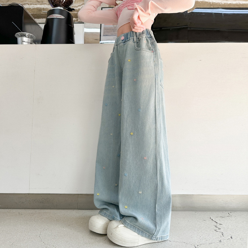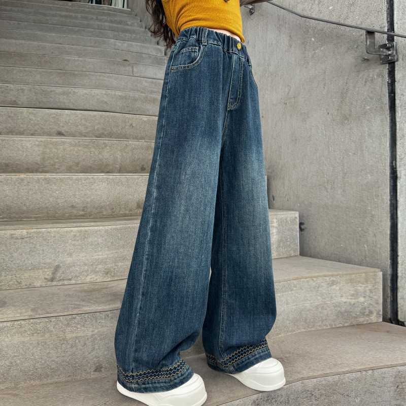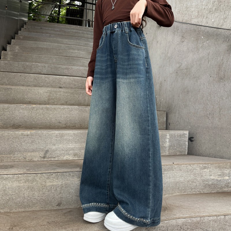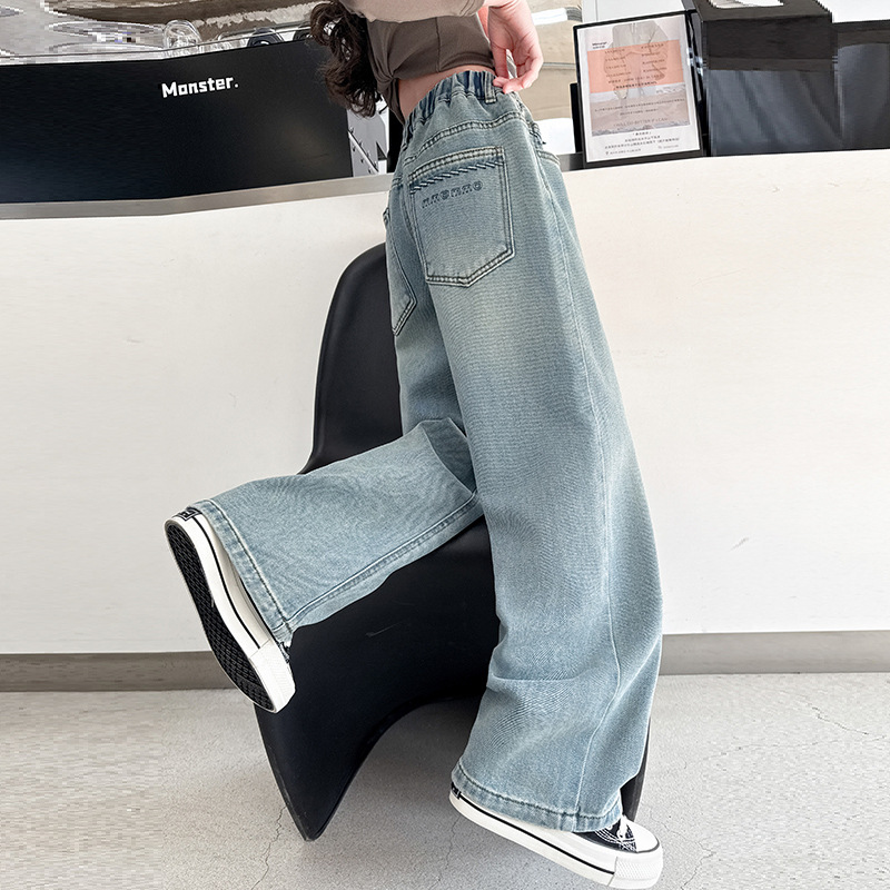 여자 바지 여름 얇은 스타일 2025 새로운 큰 어린이 인터넷 연예인 청바지 어린이 가을 스타일 스트레이트 다리 넓은 다리 바지스토어 가기