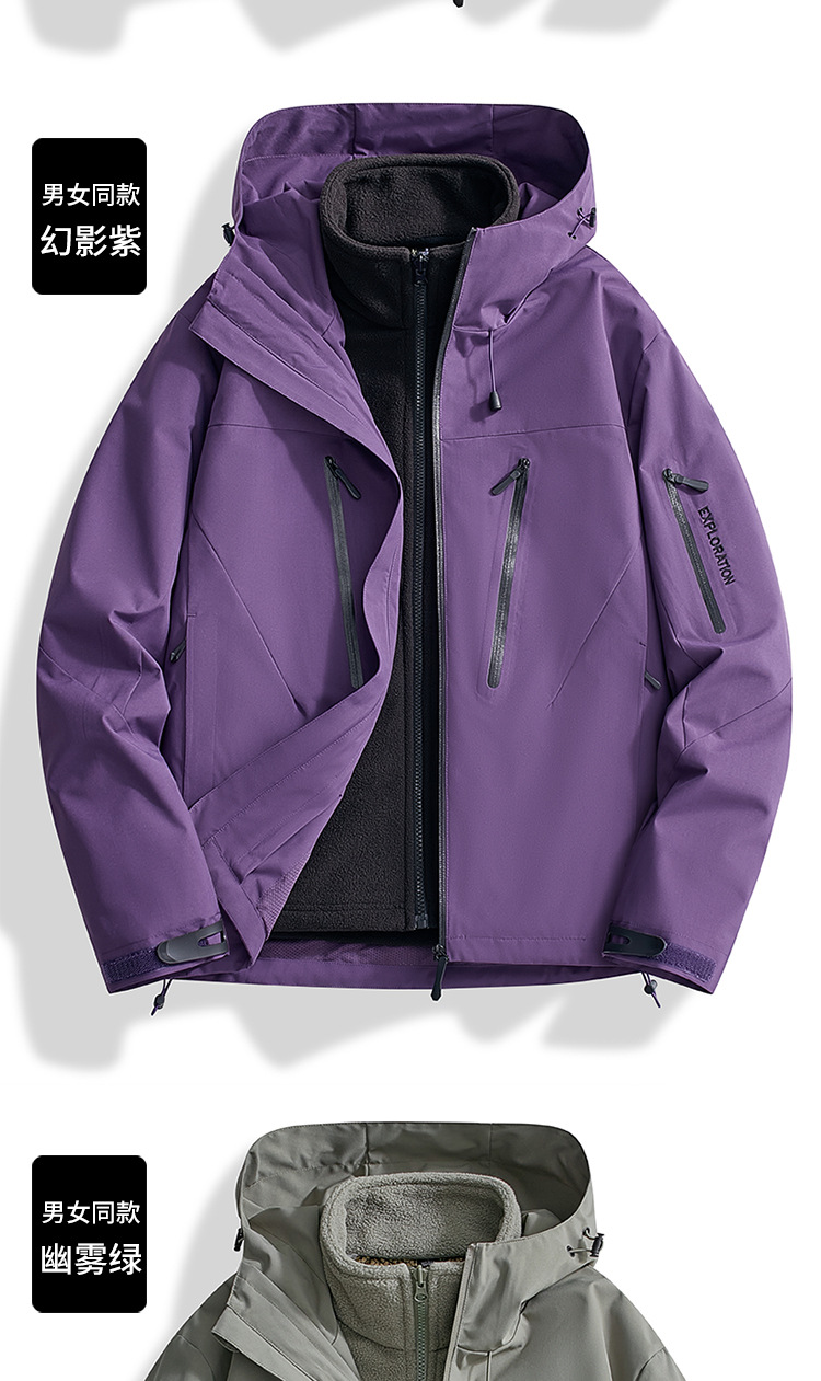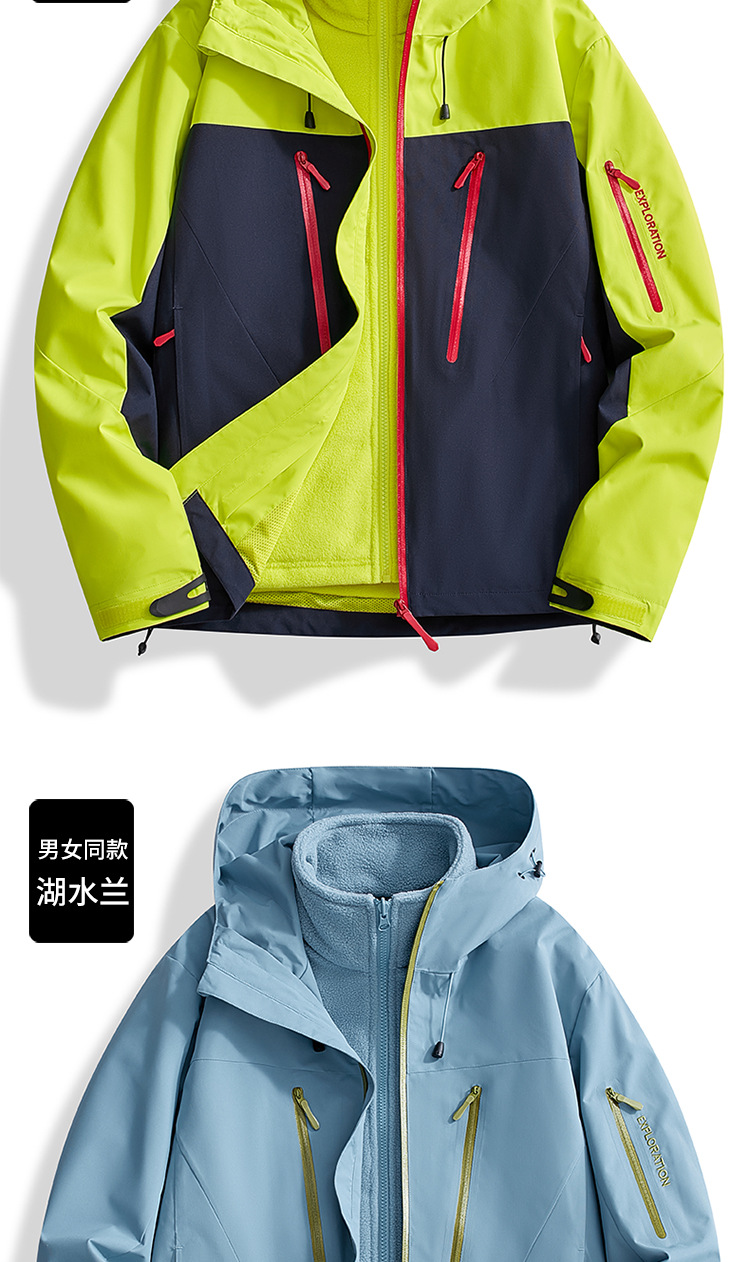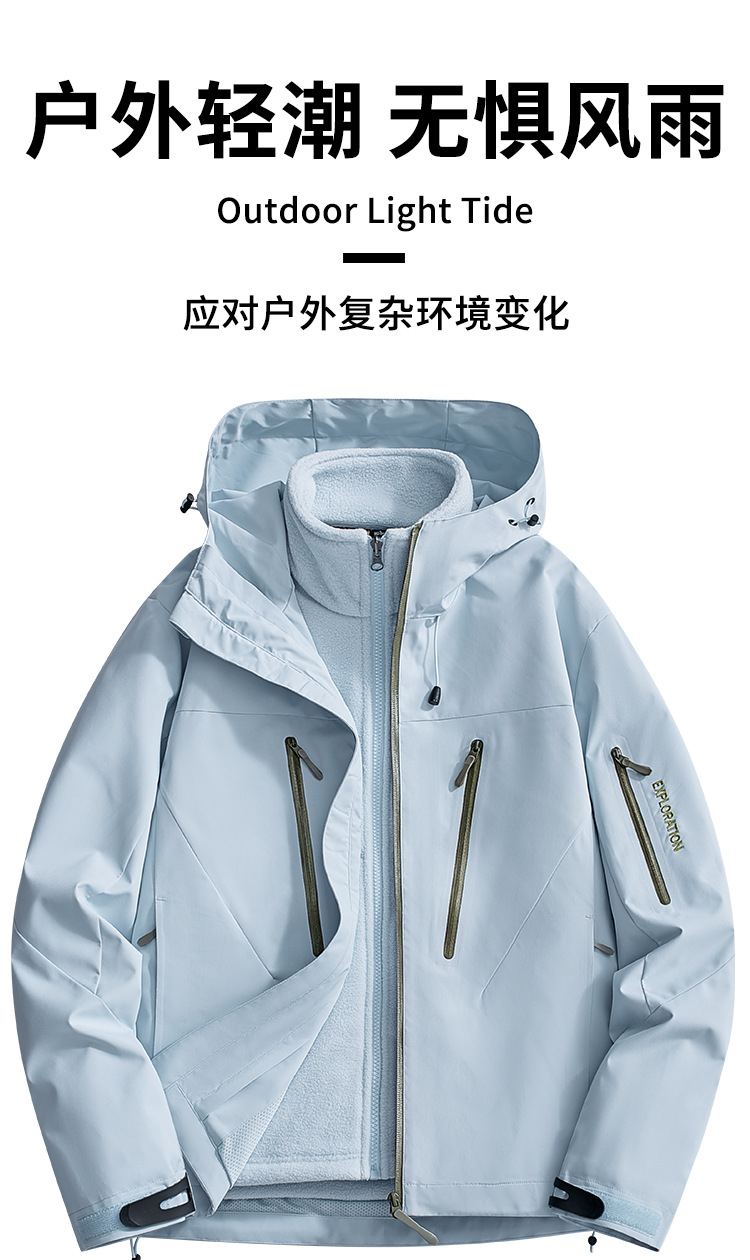 딱따구리 야외 후드 충전 의류 여성의 가을 및 겨울 새로운 패션 브랜드 물 튀는 저항성 느슨한 캐주얼 3 대 1 등산 세트