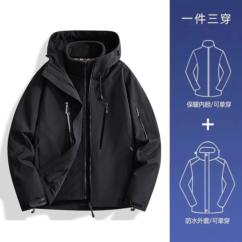 딱따구리 야외 후드 충전 의류 여성의 가을 및 겨울 새로운 패션 브랜드 물 튀는 저항성 느슨한 캐주얼 3 대 1 등산 세트스토어 가기