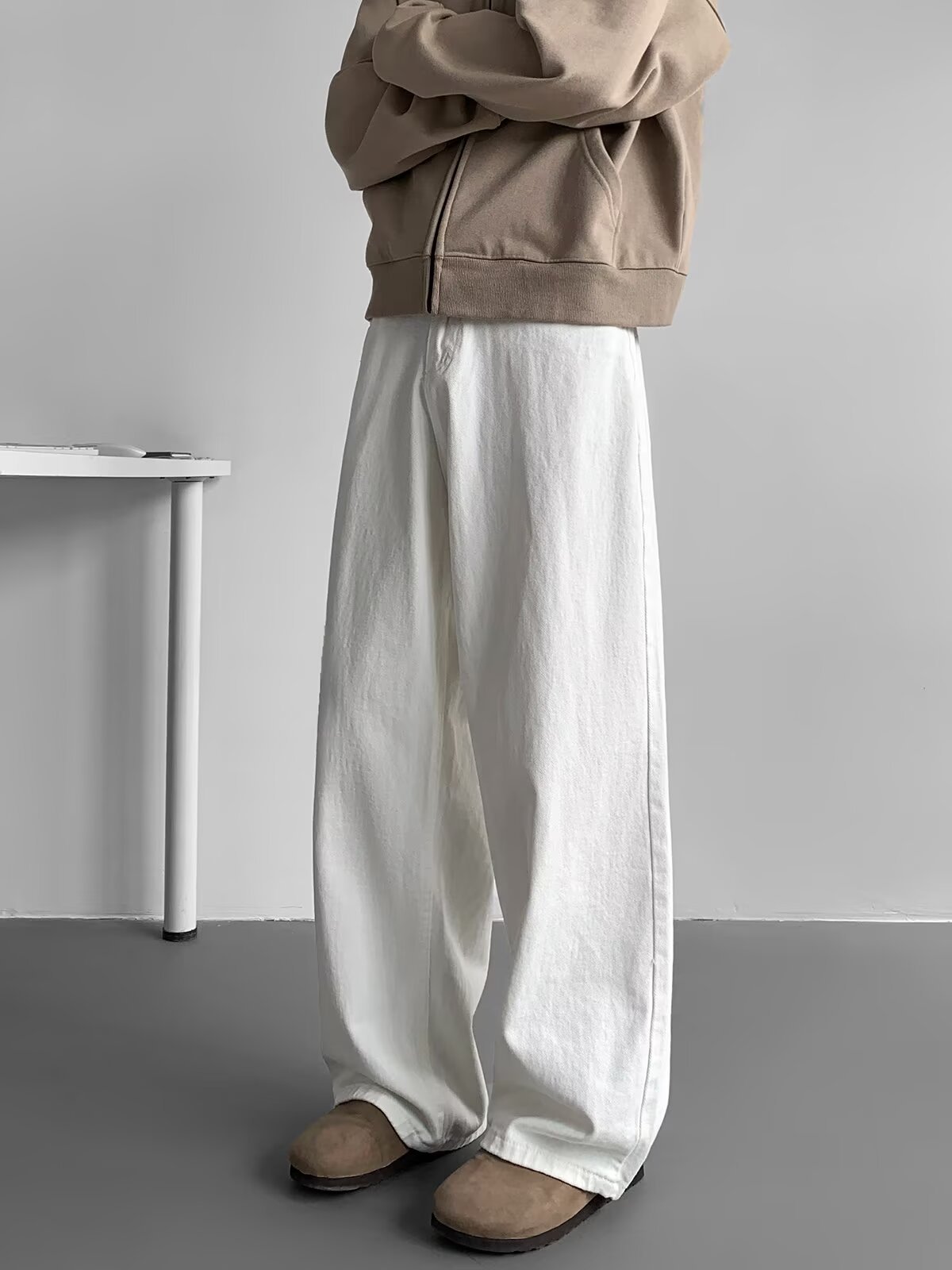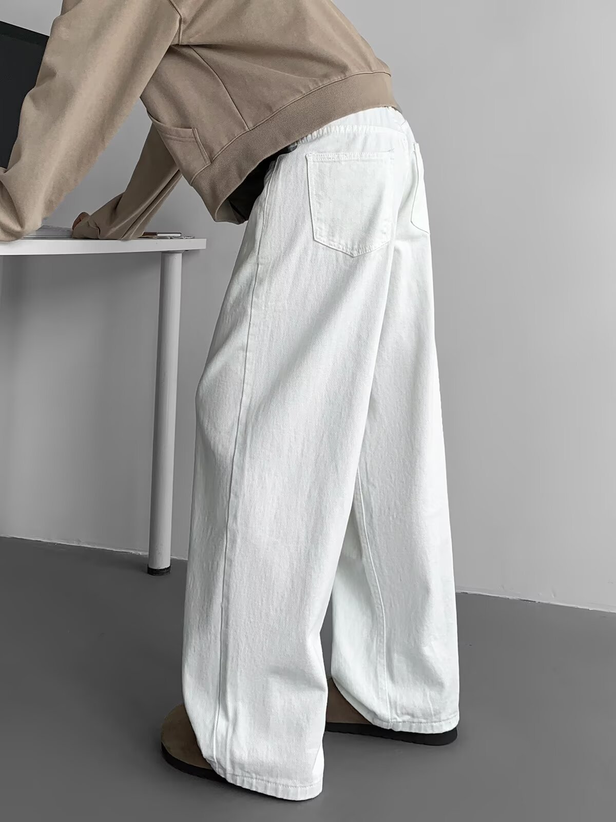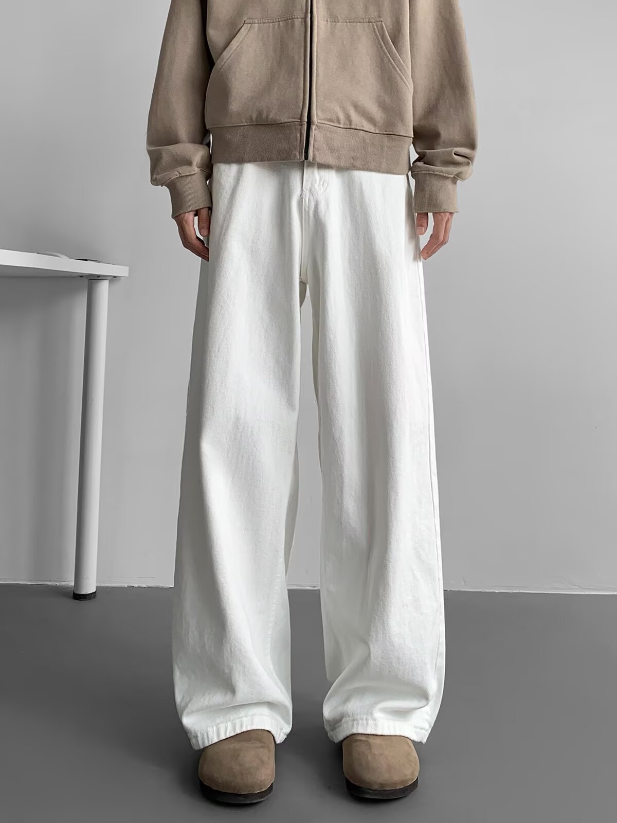 미국식 플러스 사이즈 화이트 청바지 남자 트렌디 브랜드 올 매치 슬림 룩 와이드 레그 팬츠 앤티크 십대 모양의 교수형 바지