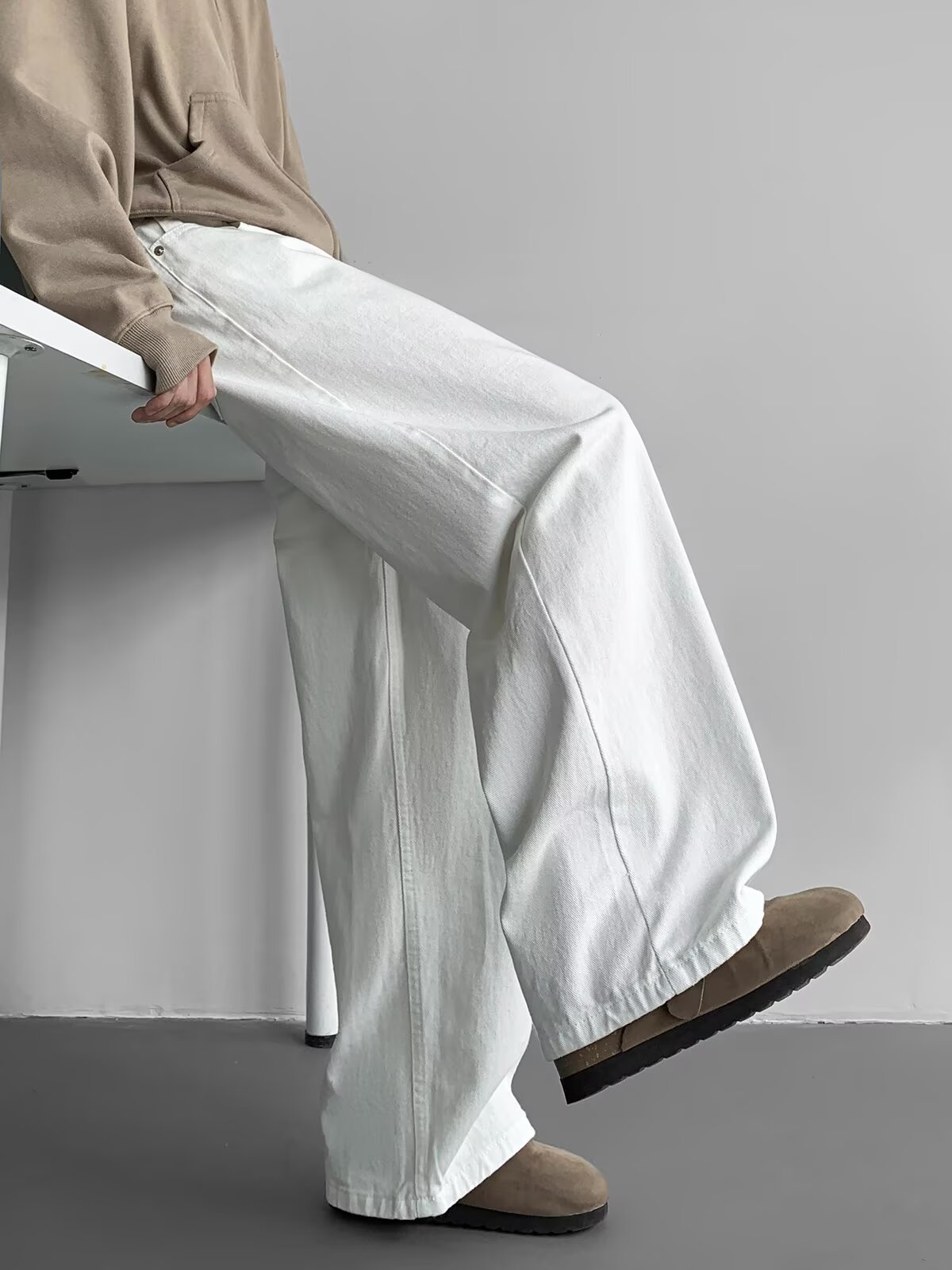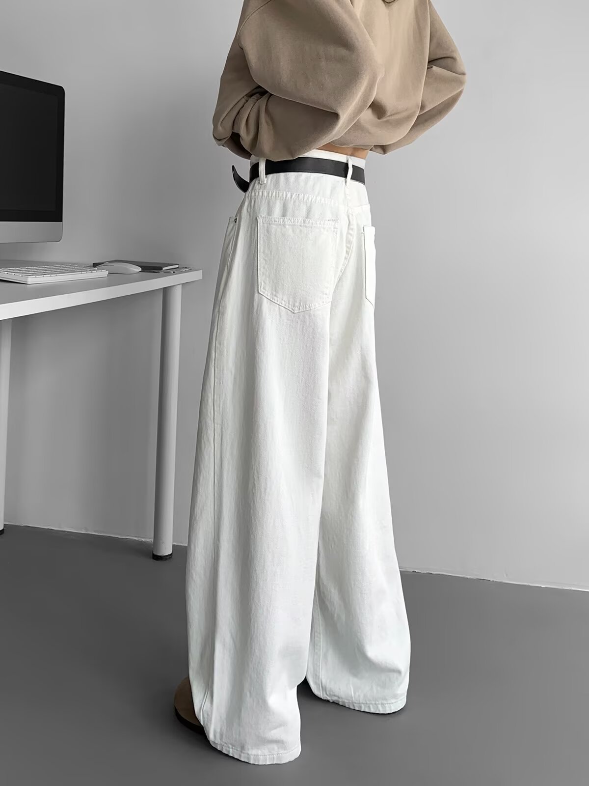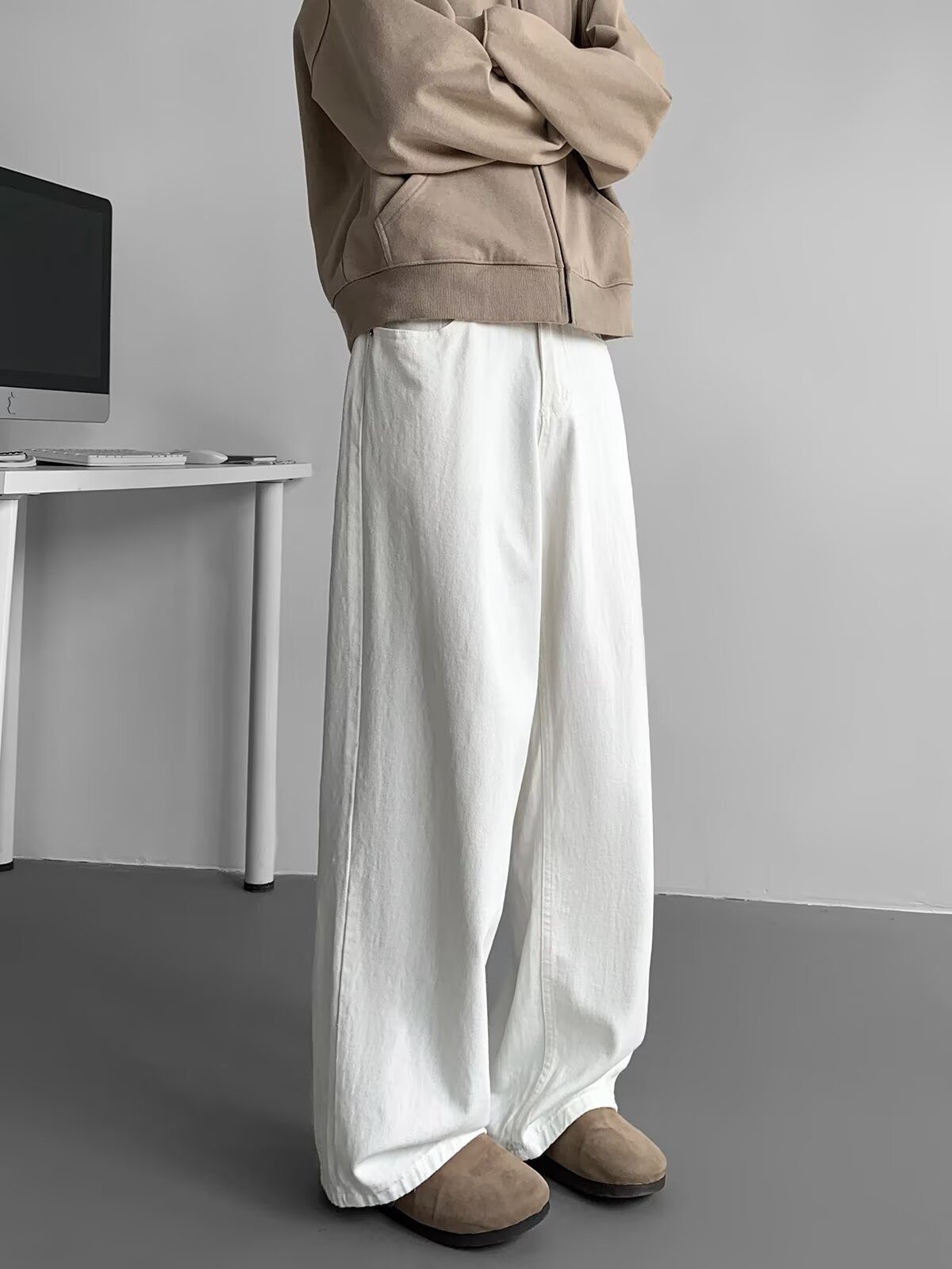 미국식 플러스 사이즈 화이트 청바지 남자 트렌디 브랜드 올 매치 슬림 룩 와이드 레그 팬츠 앤티크 십대 모양의 교수형 바지