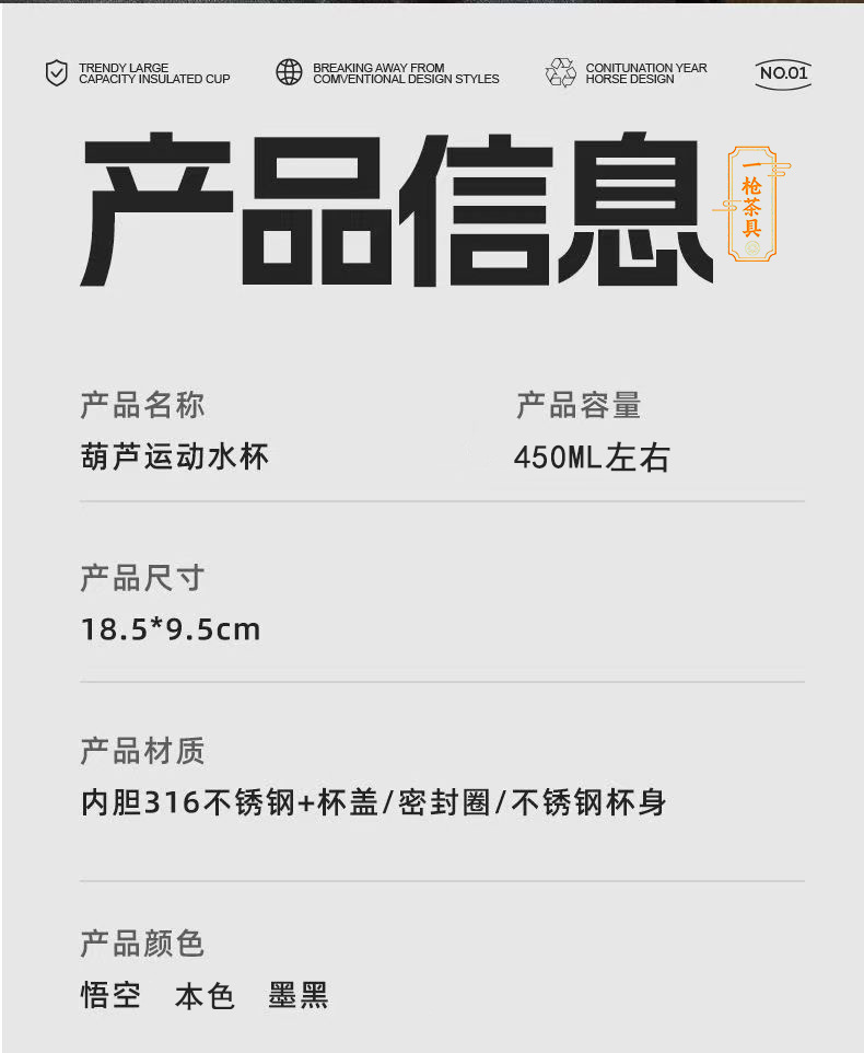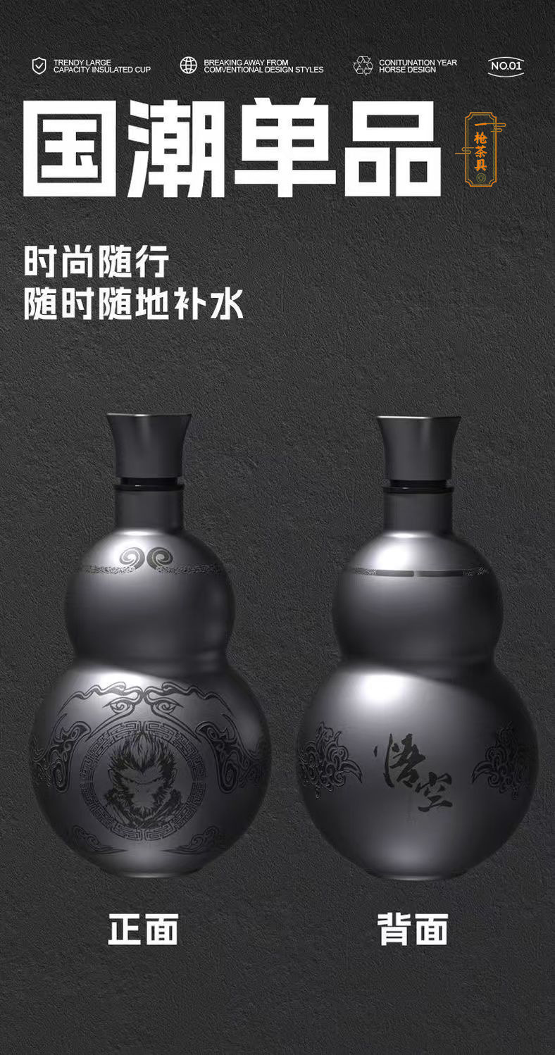 신화 Wukong Gourd Thermos 스테인레스 스틸 어린이 남녀 스포츠 주전자 네트, 골동품 국가 조수 모양 워터 컵 기념스토어 가기