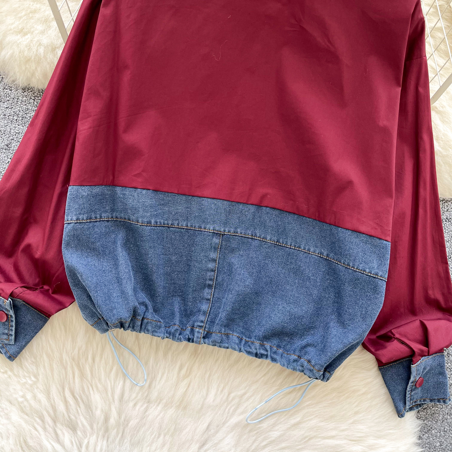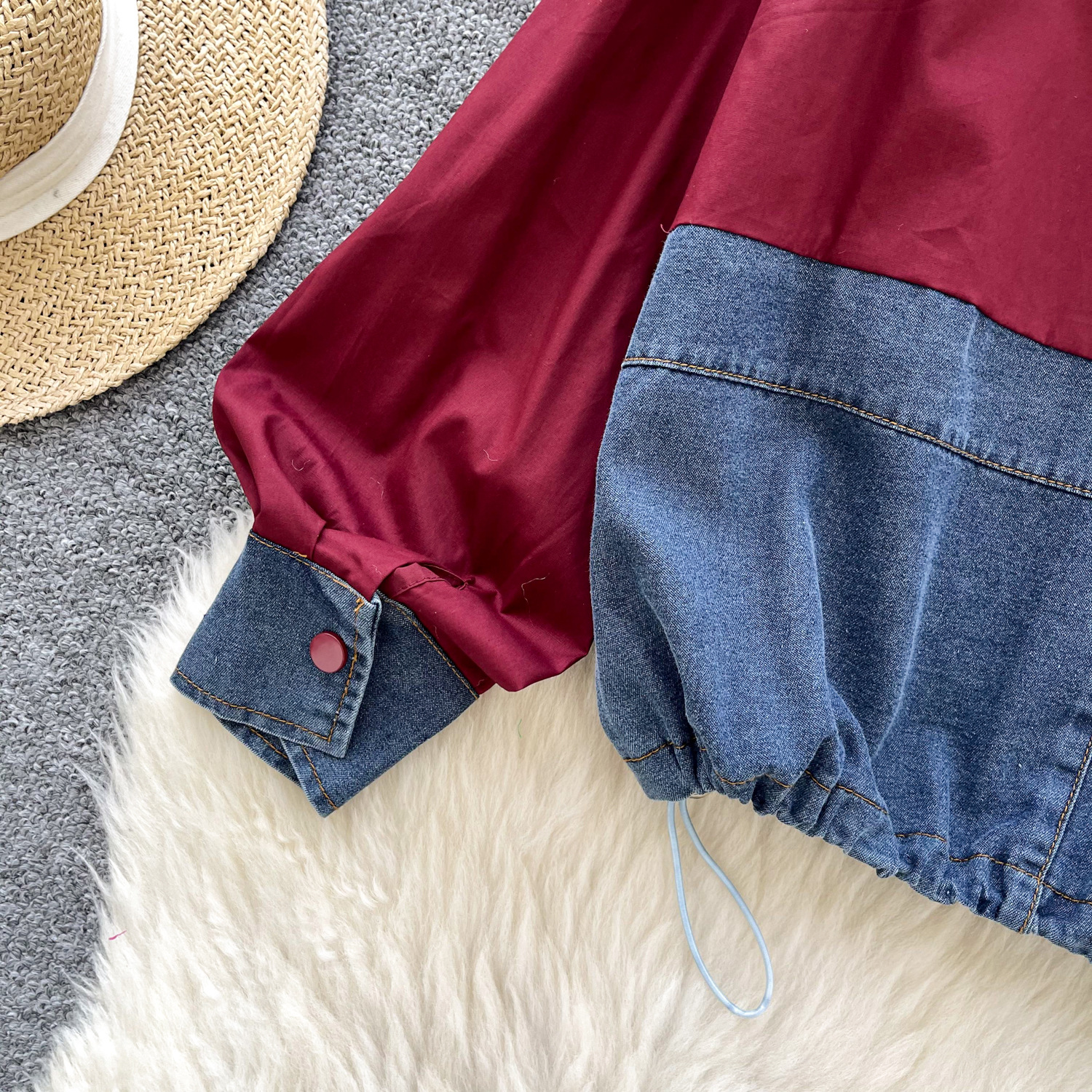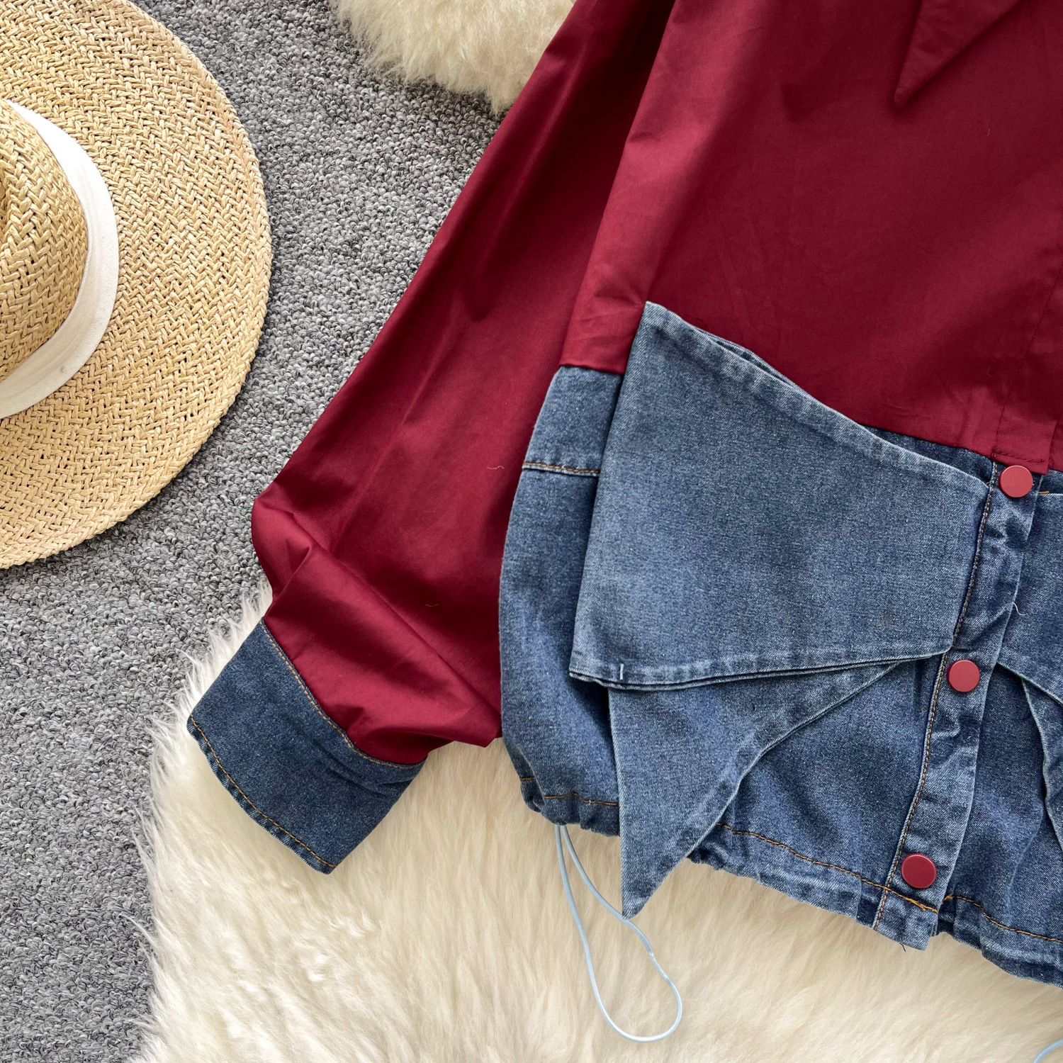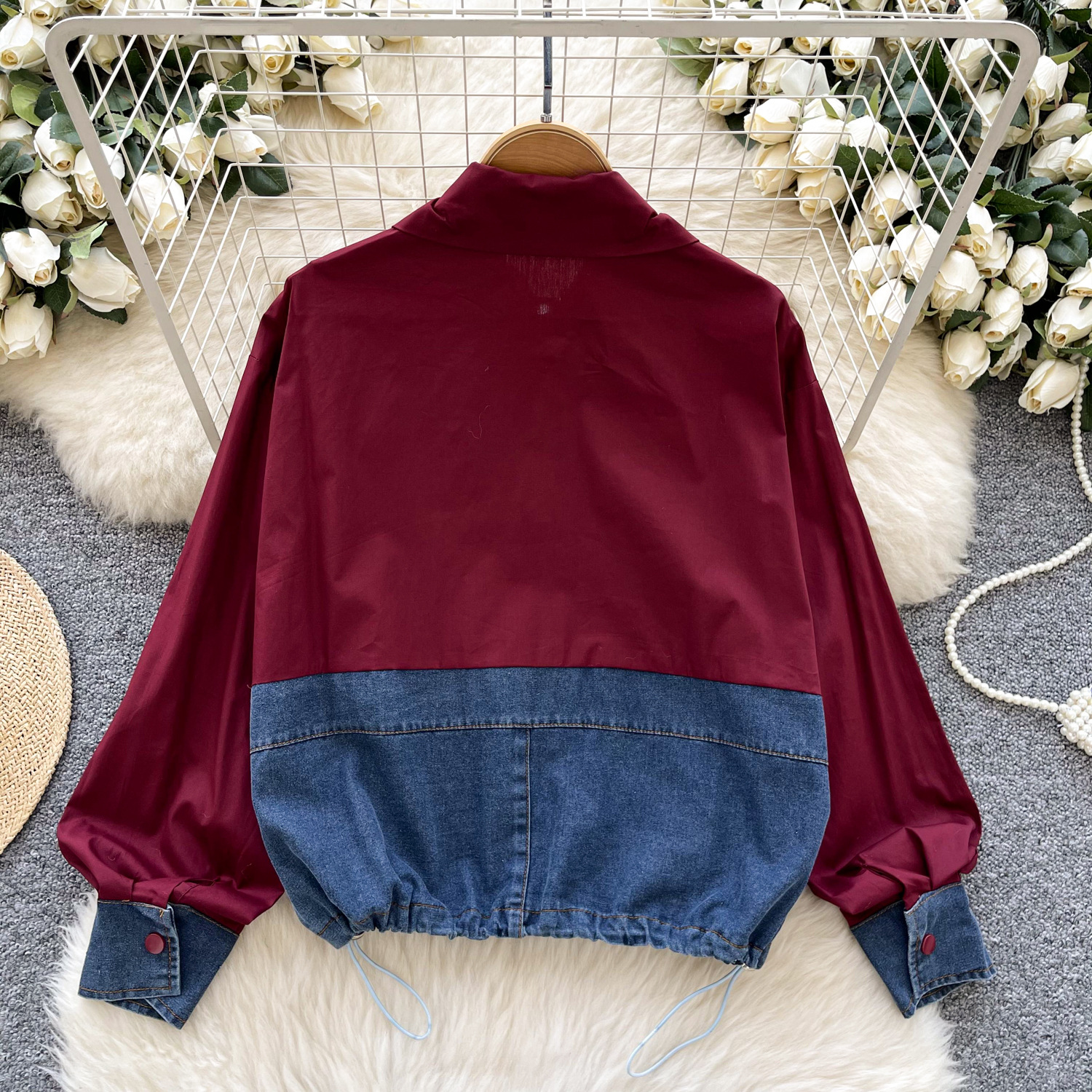 봄 의류 한국 스타일 패션 디자인 센스 활 데님 긴 소매 셔츠 바느질 여성용 루즈 셔츠 탑스토어 가기