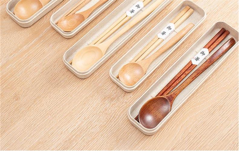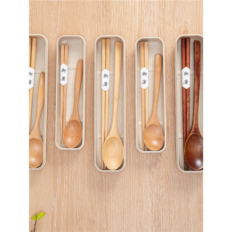 너도밤 나무 Phoebe 휴대용 야외 여행 나무 식기 도매 일본 젓가락 초등 학생을위한 나무 숟가락 보관 세트스토어 가기