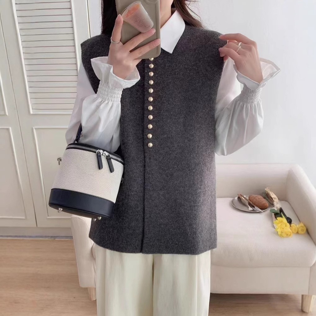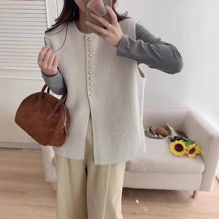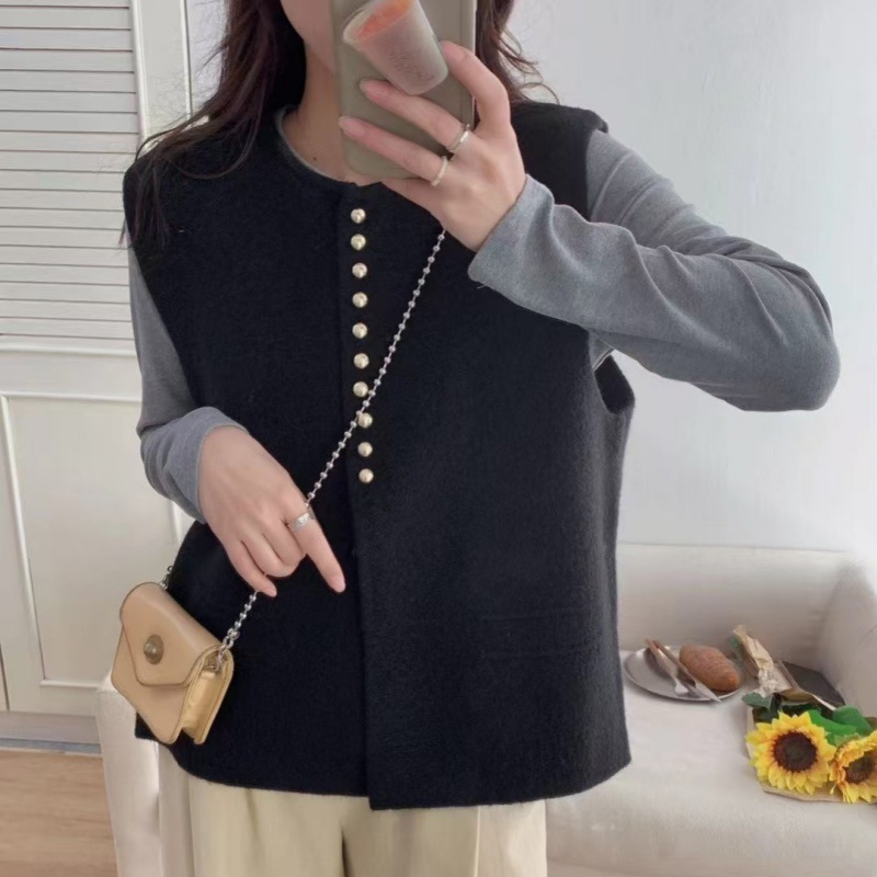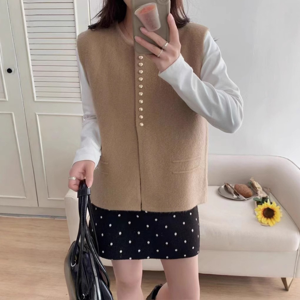 프랑스 스타일의 우아한 니트 조끼 조끼 샤넬 스타일 세련된 올 매치 스웨터 캐주얼 자켓 여성용스토어 가기