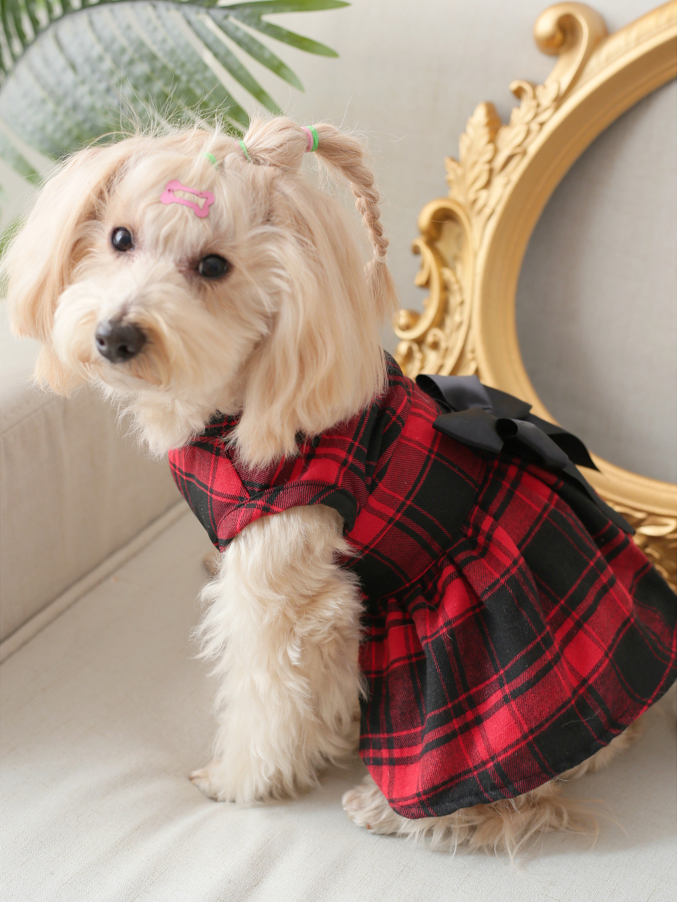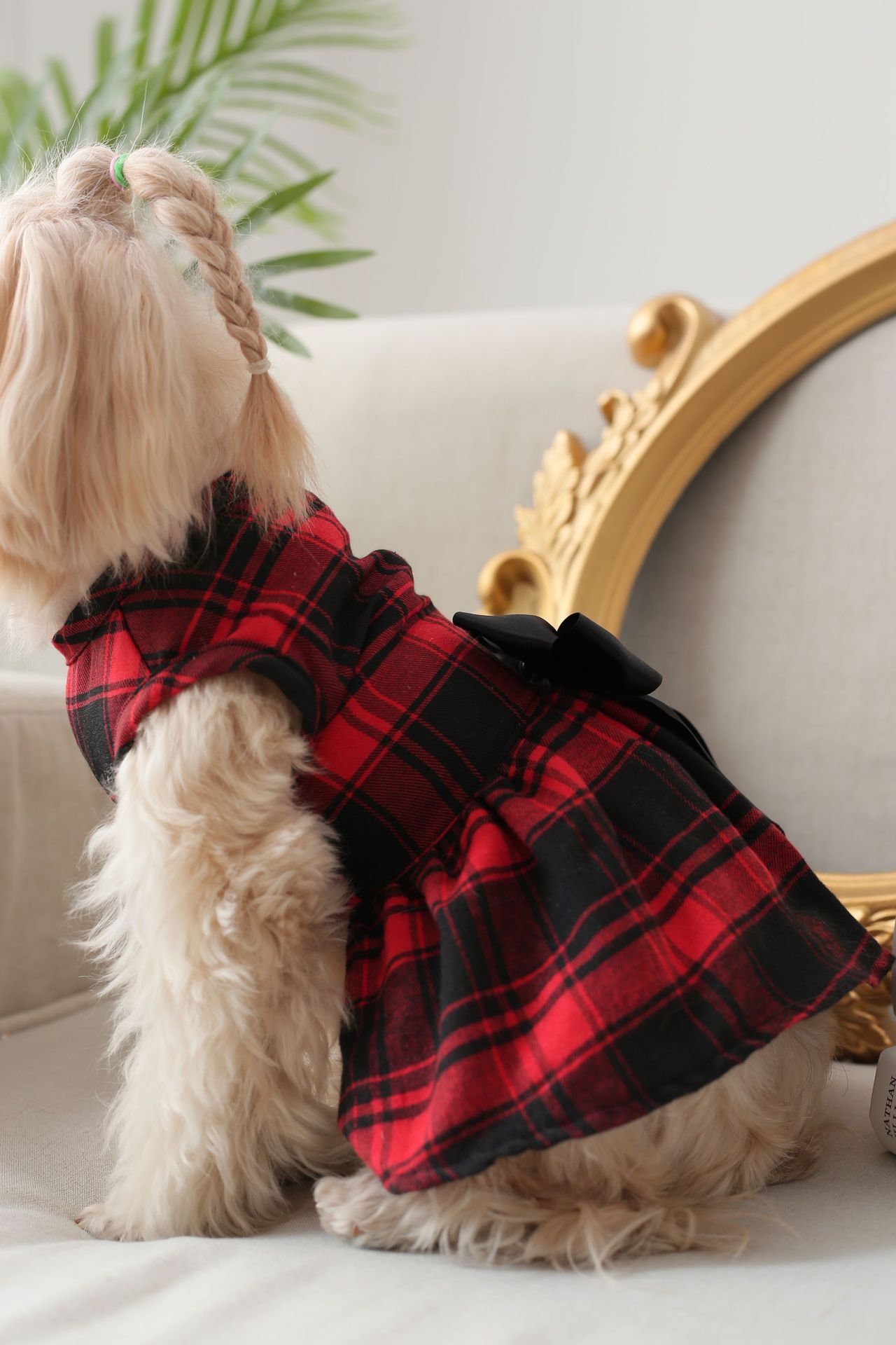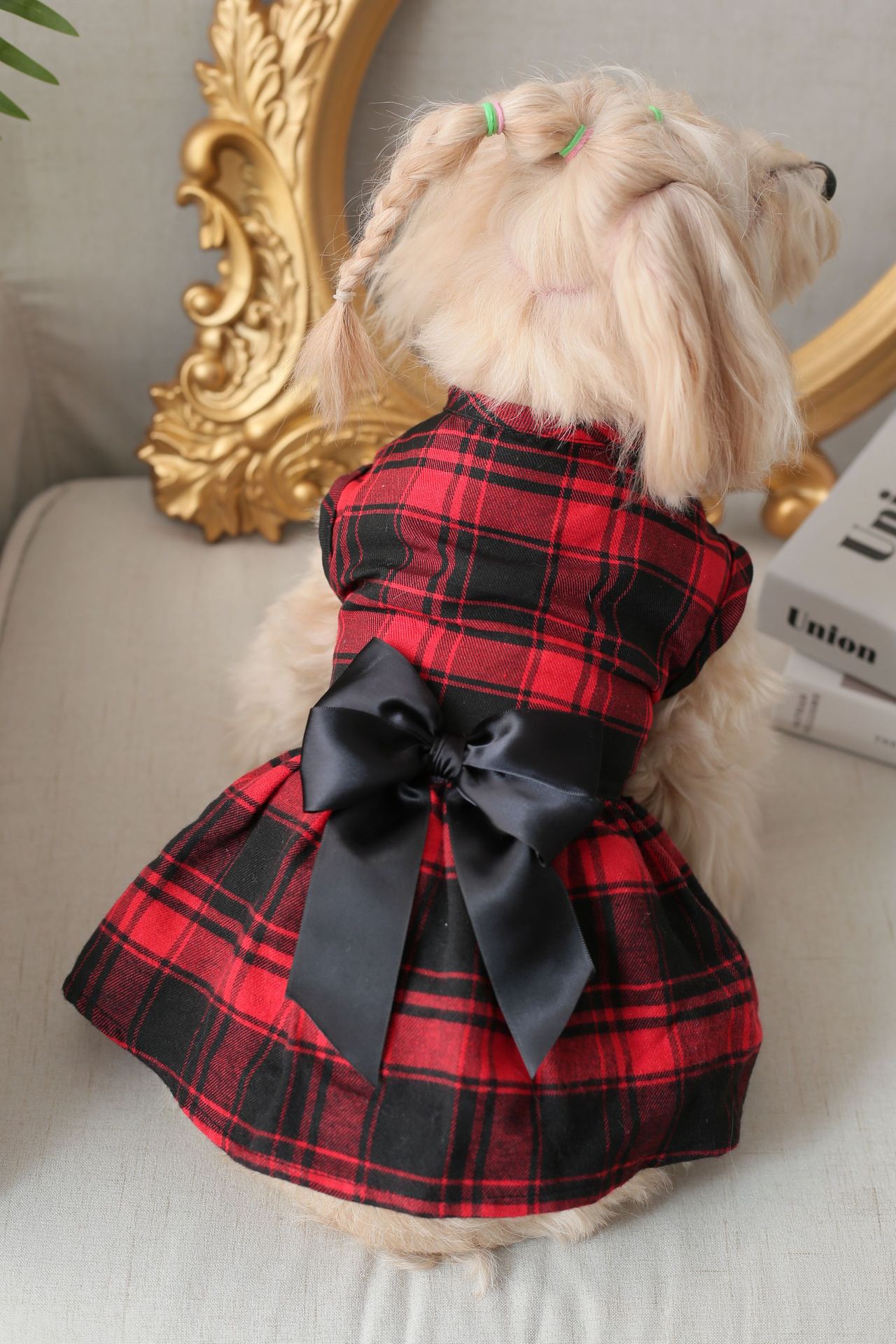 고양이와 강아지 의류, 큰 격자무늬 영국풍 이중 리본 원피스, 사계절 착용 가능, 강아지 옷, 애완견스토어 가기