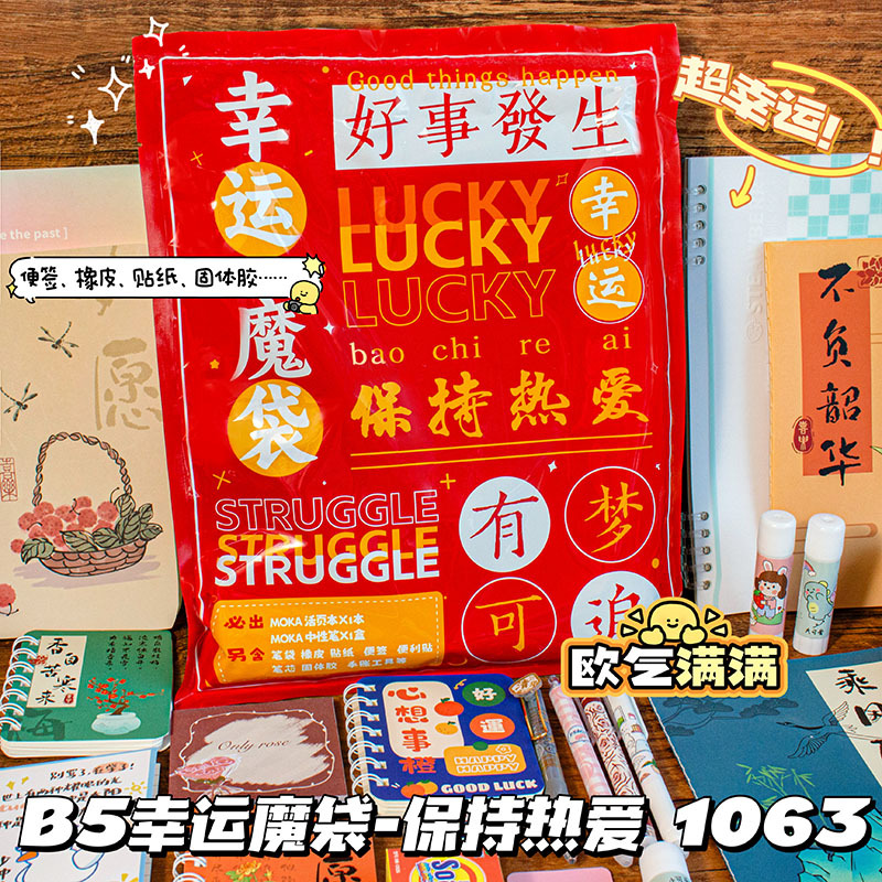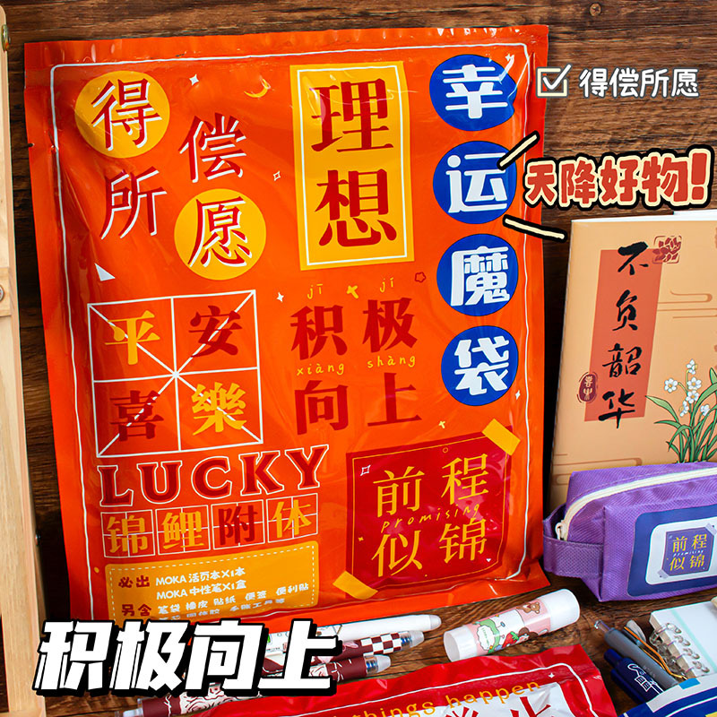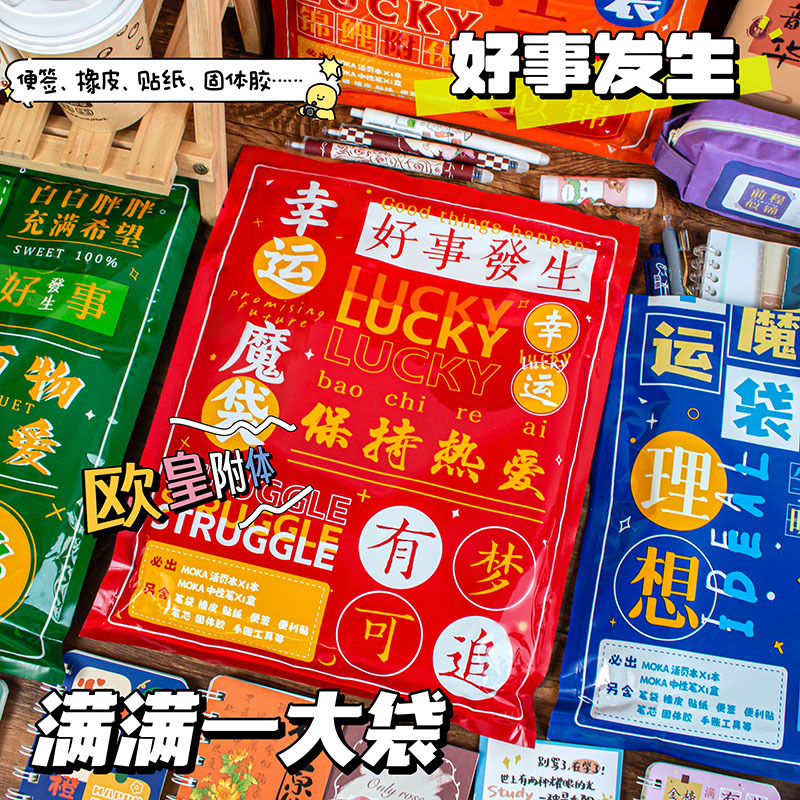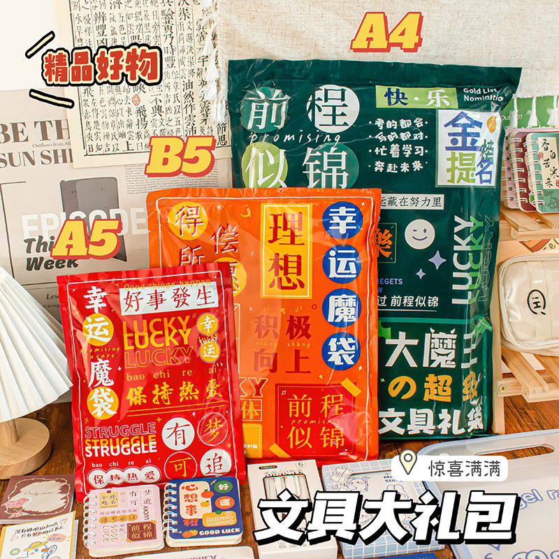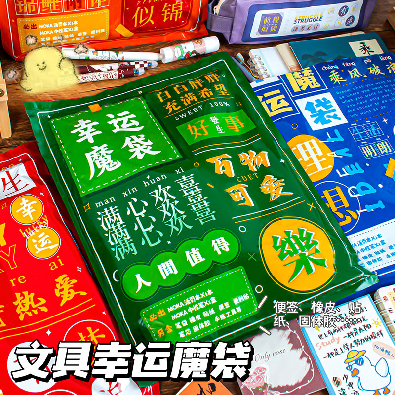 B5 행운의 문구 매직 가방 학생 창조적 인 영감을주는 텍스트 문구 세트 어린이 보상 서프라이즈 블라인드 가방 큰 선물 가방스토어 가기