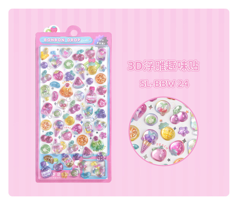 정품 승인 새로운 3D 입체 구호 스티커 작은 신선한 과일 도파민 goo 카드 패턴 만화 귀여운 스티커스토어 가기