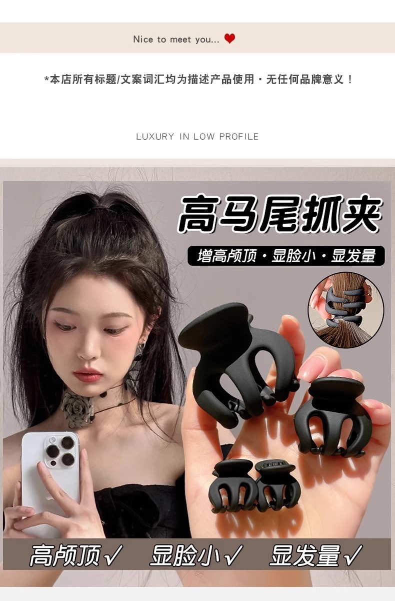 헤어 클립 블랙 스몰 사이즈 높은 포니 테일 고정 아티팩트가 붕괴되지 않습니다 2024 새로운 볼 헤드 클립 머리 장식 호박 클립스토어 가기
